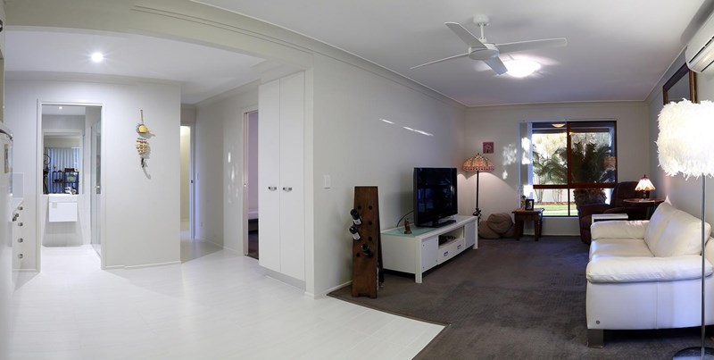 Designed for lifestyle living the low maintenance grounds offer easy care lush garden beds. The double electric gate slides back to reveal room for all the toys, with covered carport parking for 2 cars, plus a drive through single garage to the separate 2 car garage beyond.