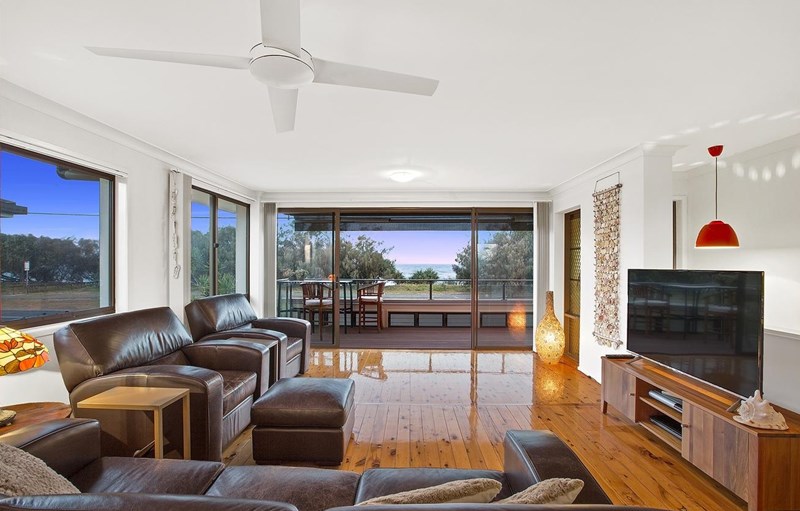 The home has been designed to embrace the outdoors, marvel at your ocean view from the full length front deck, or relax on your very private rear balcony, screened by a magnificent mango tree while you listen to the waves roll in. Upstairs lovely open plan living zones, flow onto the entertaining decks along with 2 bedrooms and a study (optional 4th bedroom). The modern entertainer's kitchen is centrally located, a wall of glass ensures the magnificent vista is always on show, picture perfect. Downstairs is an extremely versatile space with a generous bedroom, second lounge, bathroom and kitchenette. This space could easily be utilized as separate living or the ultimate master suite. The lower level also enjoys direct access to a third private all weather rear patio, the perfect spot for a quiet reflective cup of tea.