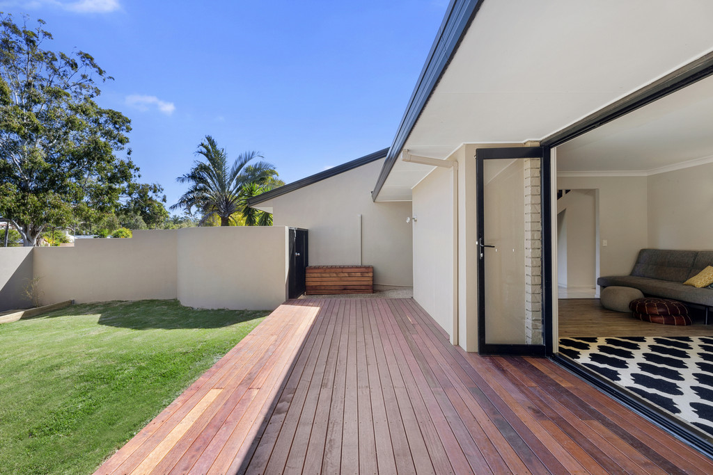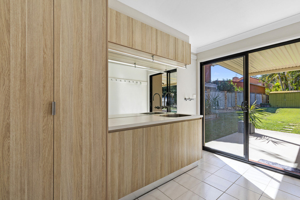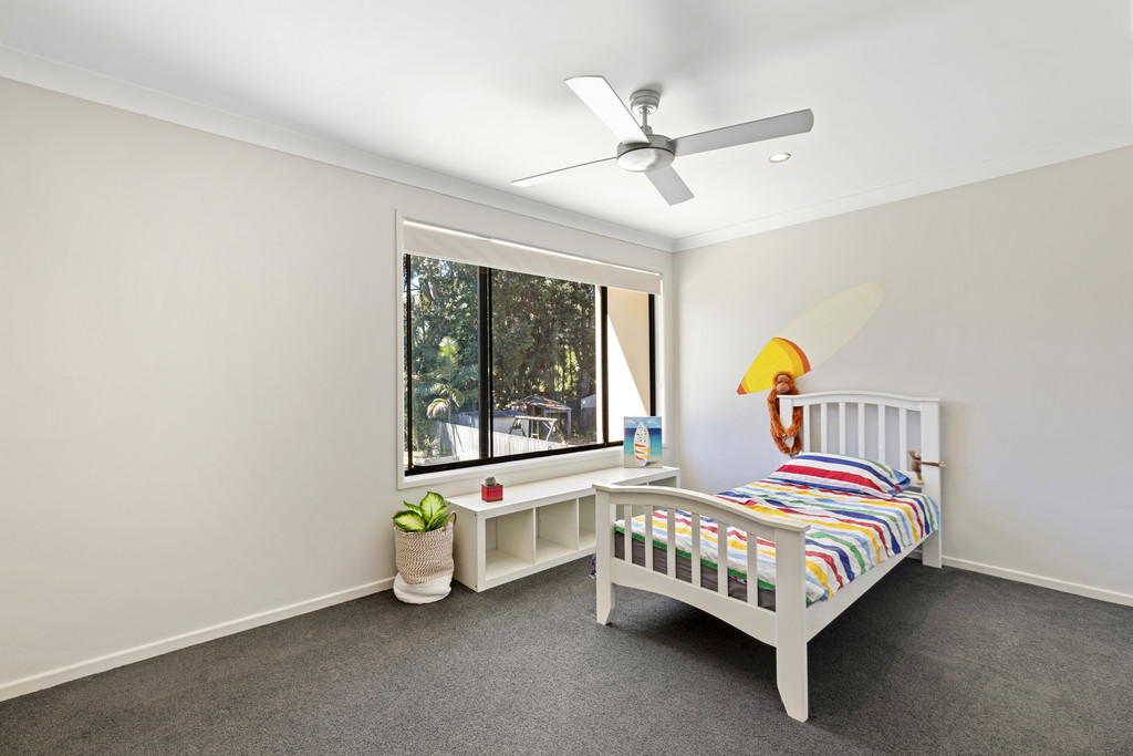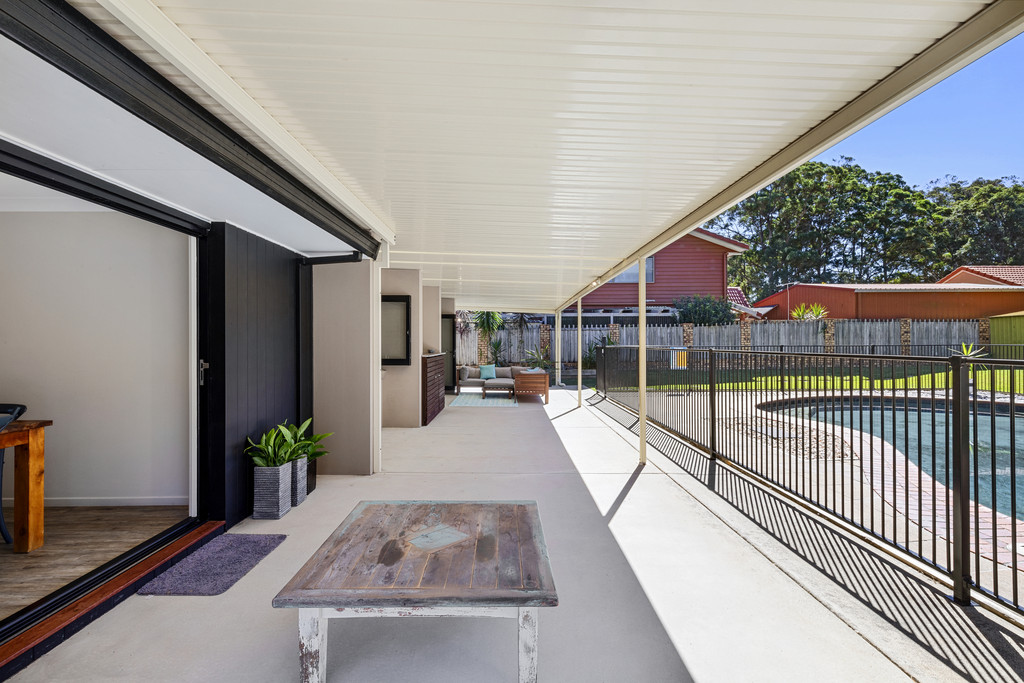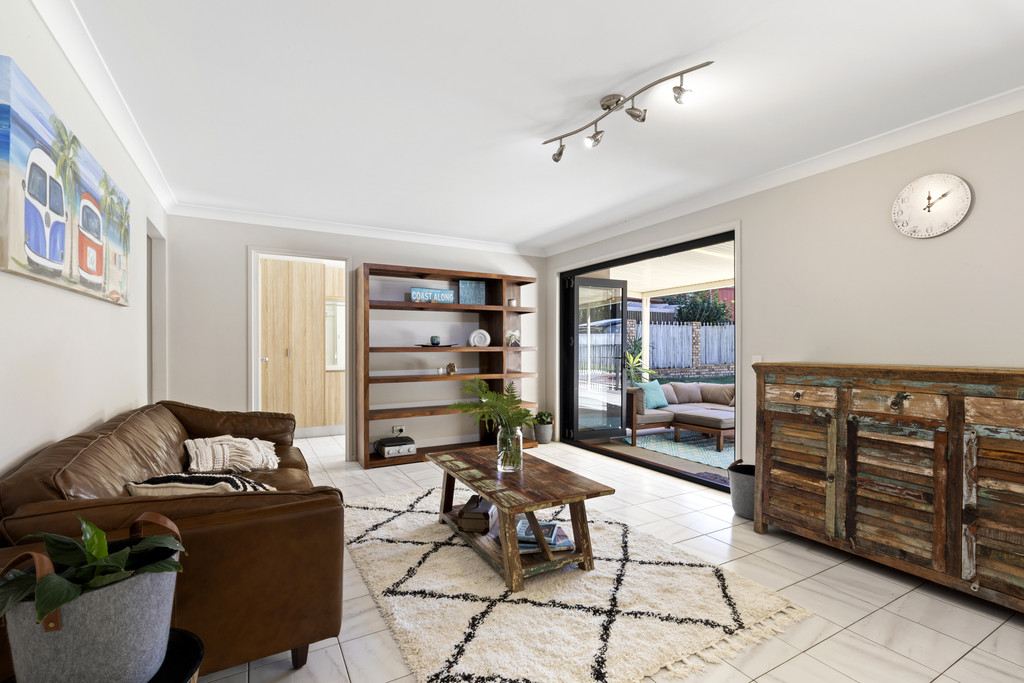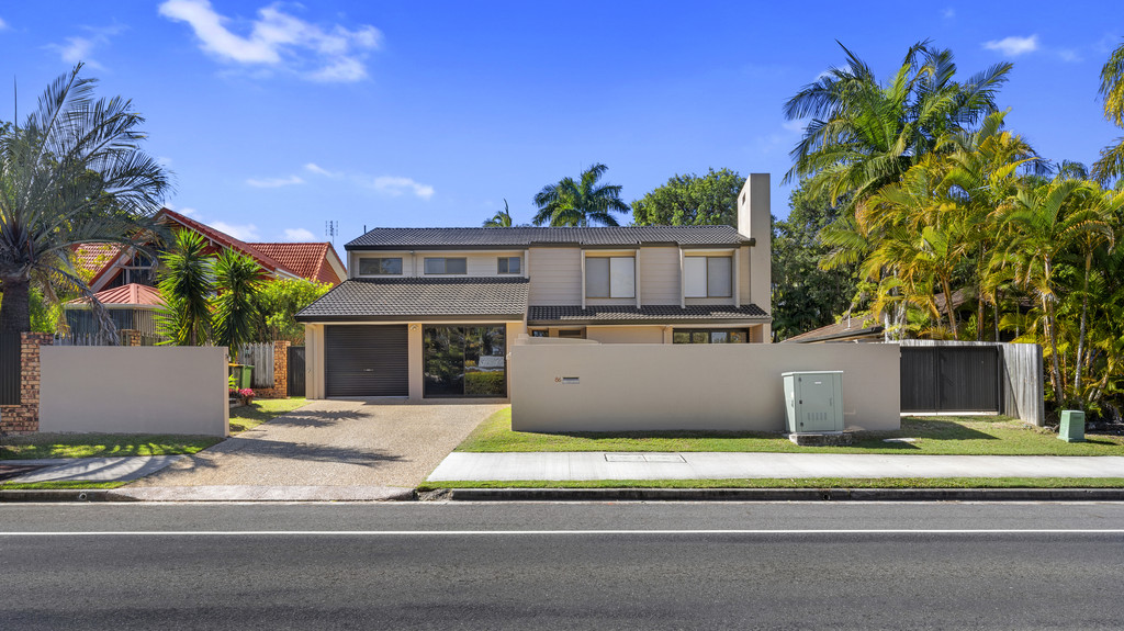 Over two levels, the home is complete with front timber deck, four bedrooms, two modern bathrooms plus powder room on ground level, office with built-in study nook, light-filled kitchen with servery to rear covered patio, separate living areas, generous sized laundry, double lock up garage plus gated side access to bring in a trailer/boat.