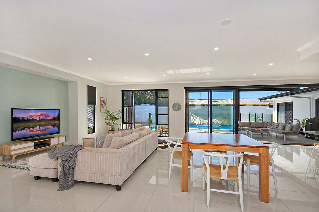 - Large open plan living areas that overlook the outdoor entertaining area