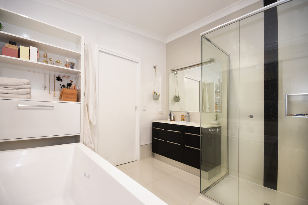 The living areas are open plan, with high ceilings and filled with loads of natural light. Gorgeous stacker doors lead you to the outdoor entertaining area overlooking a generous in-ground pool with a spa. A raised timber deck within the pool area gives you a further area to relax and unwind and keeps you close if you have little ones splashing in the pool.