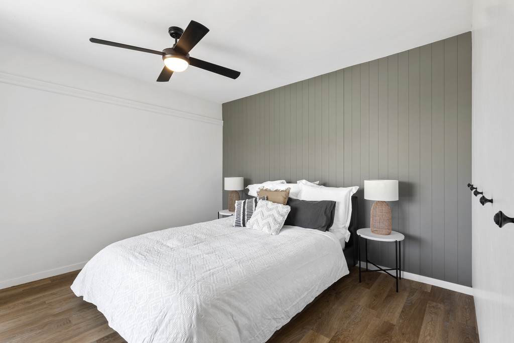 The renovation has been impeccably finished, with tasteful dcor and quality fixtures and fittings; features include timber look vinyl planking throughout, ceiling fans, stone benches in kitchen, floor to ceiling tiles in bathroom, new cabinetry, stainless steel appliances, attractive tiled splashback, and chic wall/TV unit.