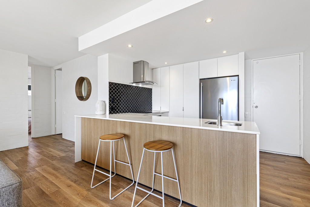 With a prized norther aspect, the apartment is light, and breeze filled; and complete with two bedrooms, sleek modern kitchen and bathroom, open plan living flowing out to front balcony to admire vista, private rear balcony off the bedrooms, separate laundry, and single lock up garage.