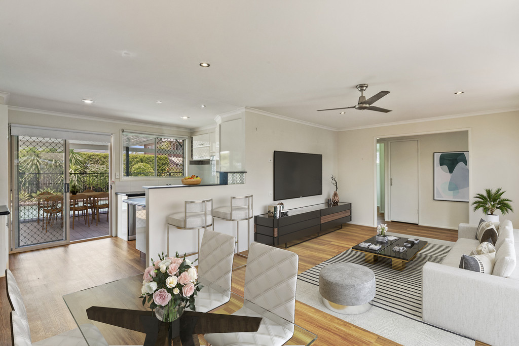 Single level, the living is easy and accessible for all ages and stages of life; and the home is complete with four bedrooms, two bathrooms, open plan living, modern kitchen, front and rear alfresco entertaining, huge concrete inground pool, separate laundry, and double lock up garage plus onsite parking.