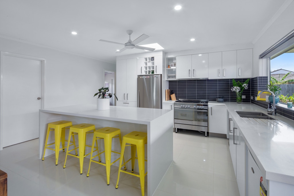 On a fully fenced 546m2 block; the home is complete with four bedrooms plus study/5th bedroom, two bathrooms, modern kitchen, open plan living, expansive north-east facing covered patio overlooking salt-chlorinated inground pool, European style laundry, double lock up garage, and shed.