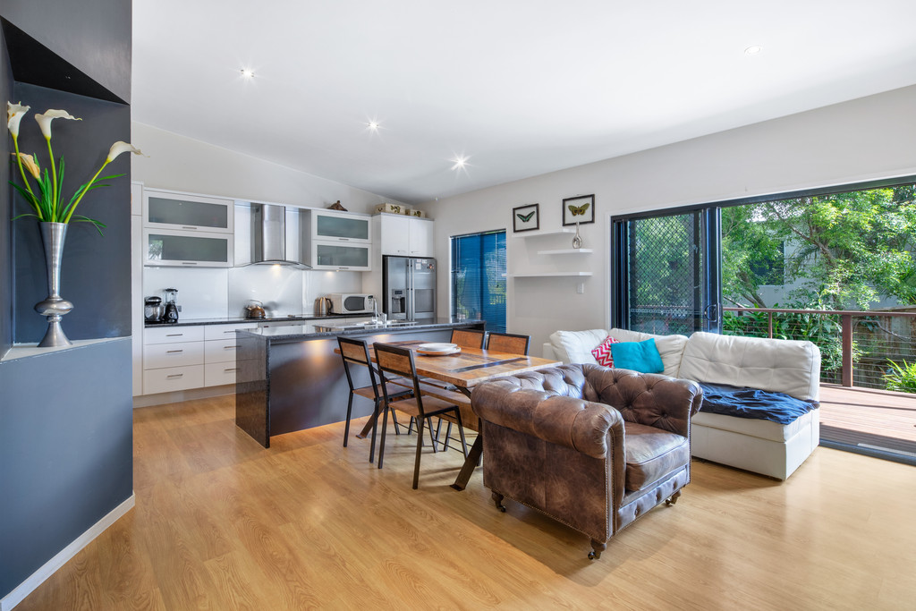 Three bedrooms, two bathrooms, two separate living areas, contemporary central kitchen, split-level decking, sparkling plunge pool, laundry with external access, and double lock up garage plus side access and onsite parking; complete what is a very appealing home in design, functionality, and liveability.