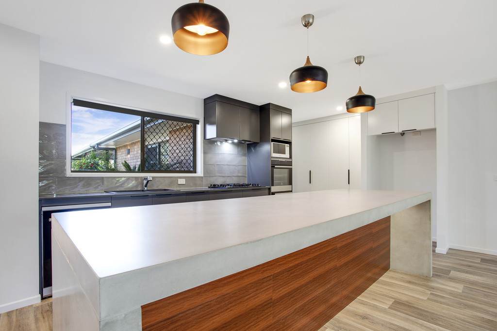 Upon entering the home you will instantly feel a sense of space and comfort. The open plan living connects easily to outdoor living through large sliding stacker doors onto a north-facing alfresco area and level garden. The kitchen overlooks the living / dining space with a huge polished concrete island bench as its centrepiece. This amazing kitchen features electrolux appliances: double ovens, gas cooktop, rangehood and dishwasher together with plenty of storage drawers and pantry space.