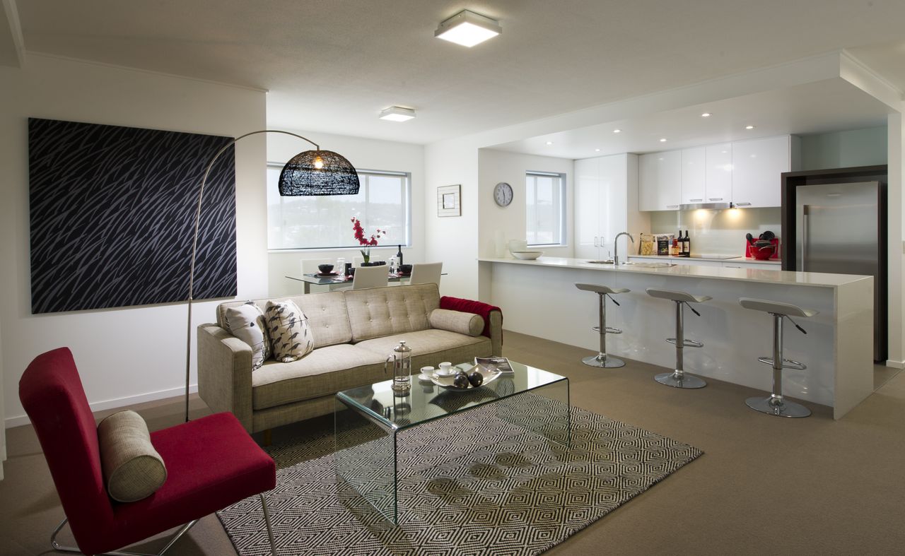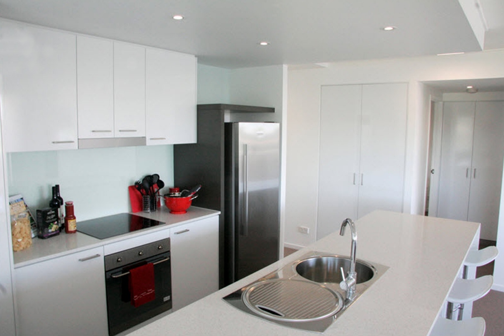 - Stylish kitchen with stone bench tops and Smeg appliances