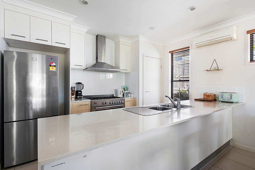 The gardens are pristine, and very child and pet friendly, and there is room for a pool, if desired. You can sit out on the patio with a cuppa and something delicious and keep an eye on the kids whilst they play outside and soak up some sunshine and fresh air. At wine o'clock, the patio is the perfect spot for a sundowner (or two); and of course, the good old Aussie weekend BBQ will be alive and well here.