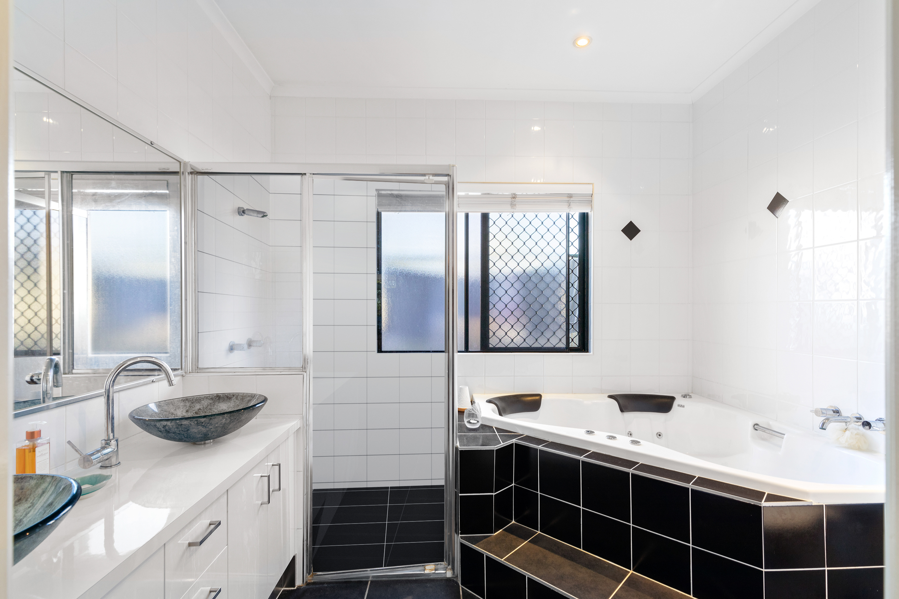 Well-presented and looked after by quality tenants with a lease until February 2021; the home's features include high ceilings, air-conditioning in master bedroom, floating timber floor in living/dining, fans and blinds throughout, gas cooktop, security screens, luxury spa bath and dual vanities in ensuite, direct patio access from master bedroom, and separate shower and bath in main bathroom.