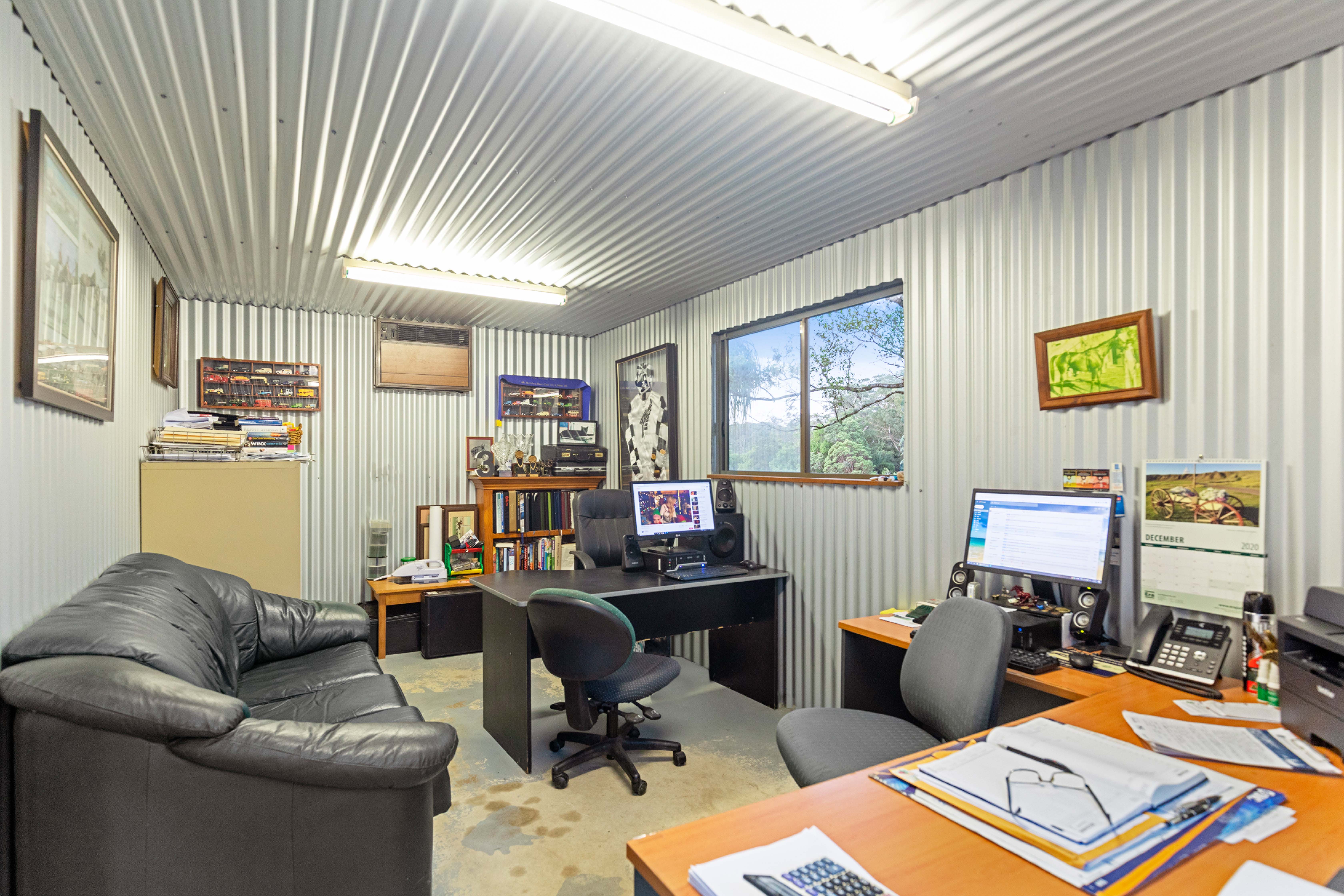 The main residence is set in an elevated position on the property, away from the road, and is complete with three bedrooms, two bathrooms, separate air-conditioned office, separate living areas, near new kitchen with stone benches and high-end appliances, separate laundry, large rear deck, and single lock up garage.