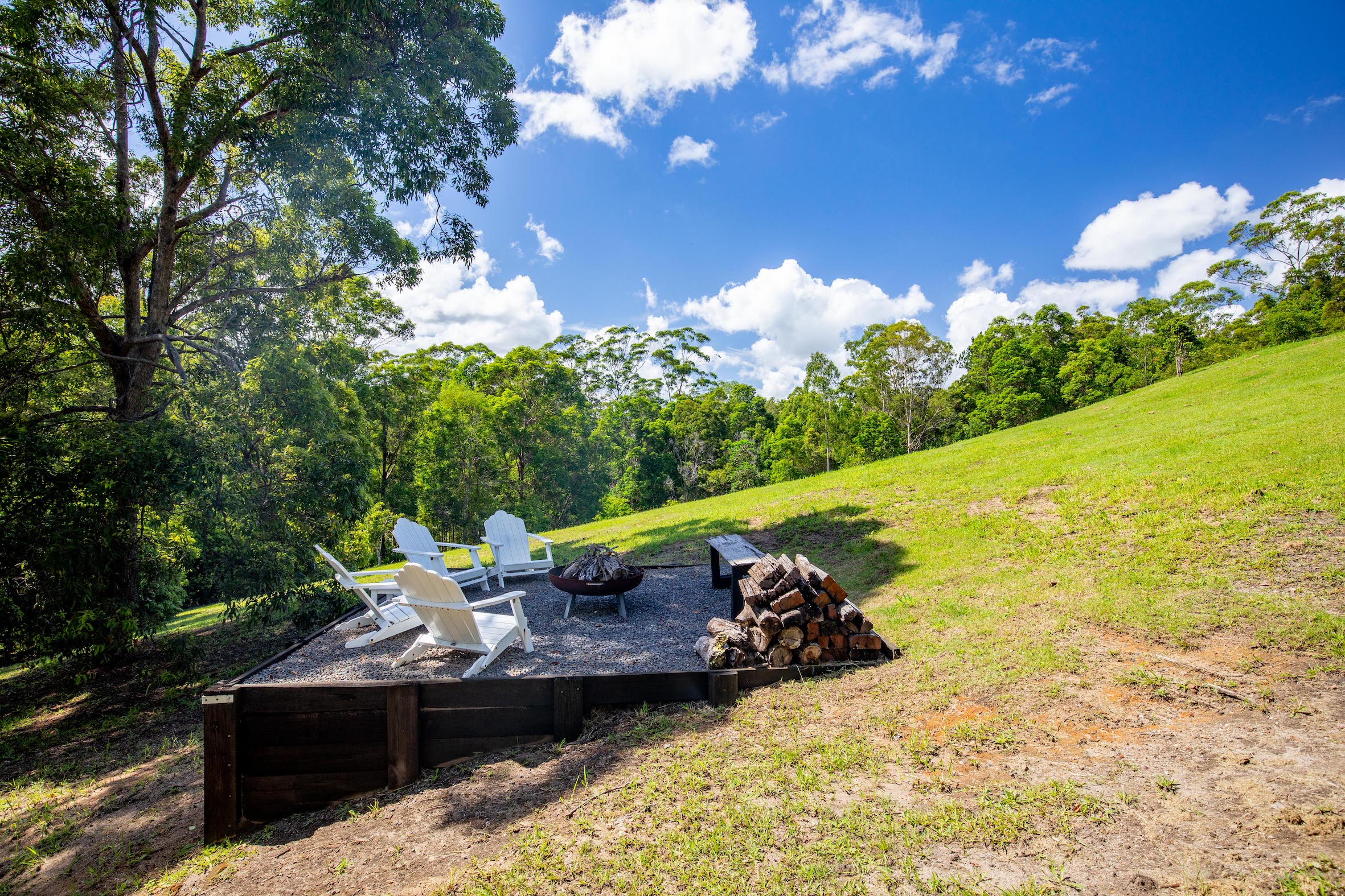 In addition to the 3-bay shed, other infrastructure on the property includes fencing, shipping container/storage, bioseptic system, and 50,000 litre water tank (supplying drinking water) plus bore and pump to irrigate garden. There is a cosy firepit area to toast marshmallows under the sparkling stars, as well as an open area terraced area providing additional alfresco entertaining space.