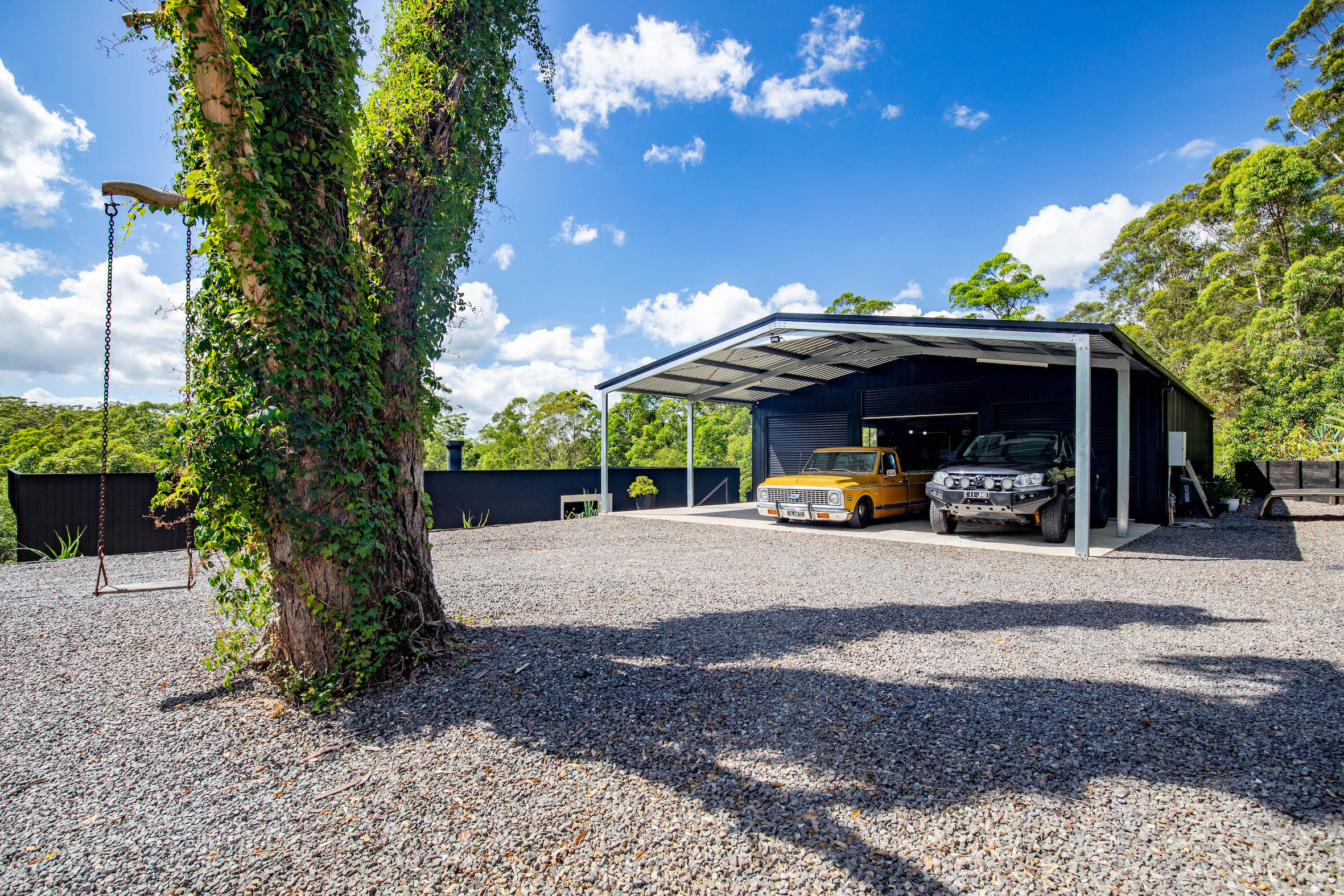 • 180m2 3-bay shed with 36m2 mezzanine (accommodates 9 vehicles)