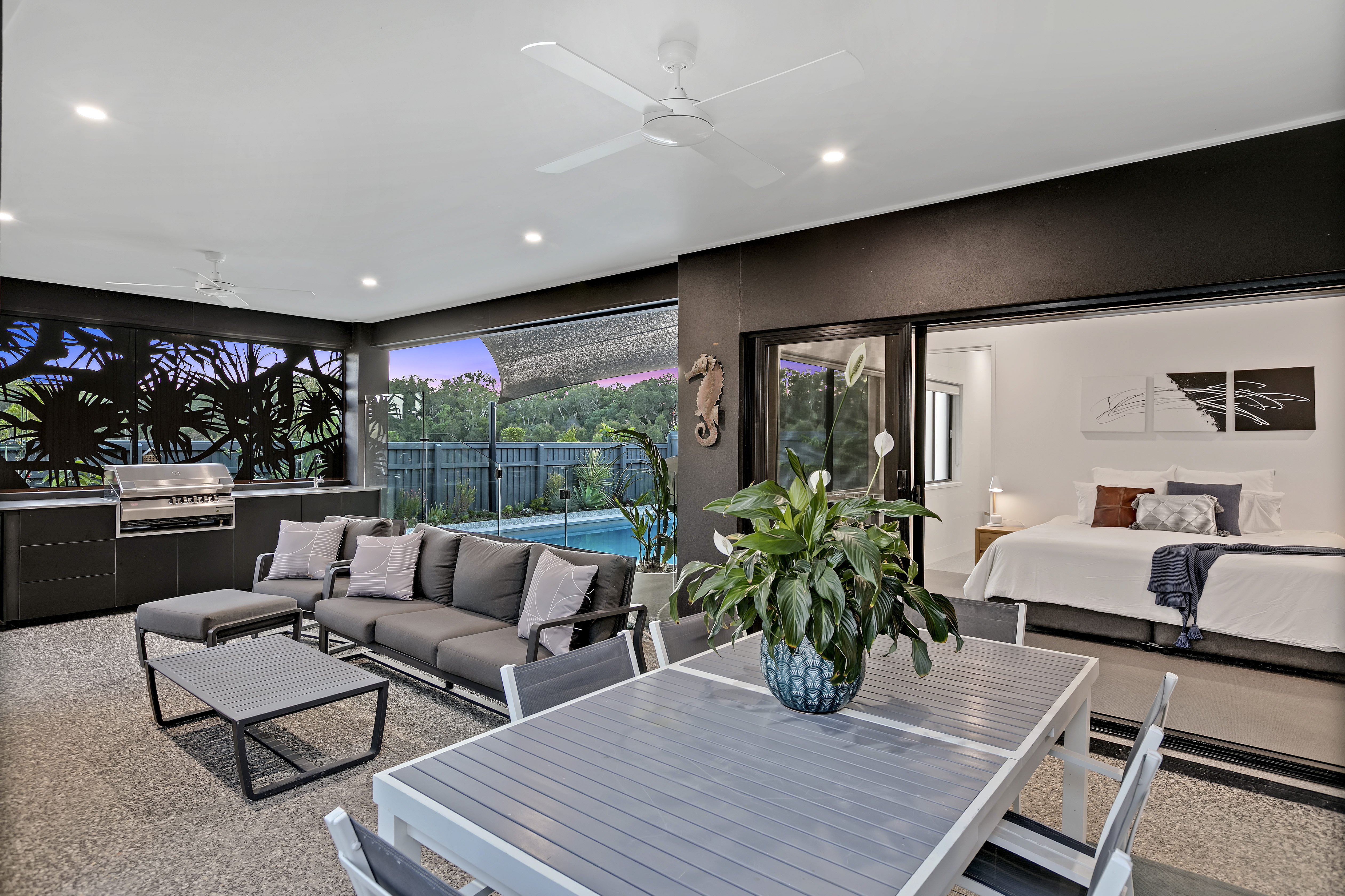 - Open plan living spaces flow seamlessly to outdoor living