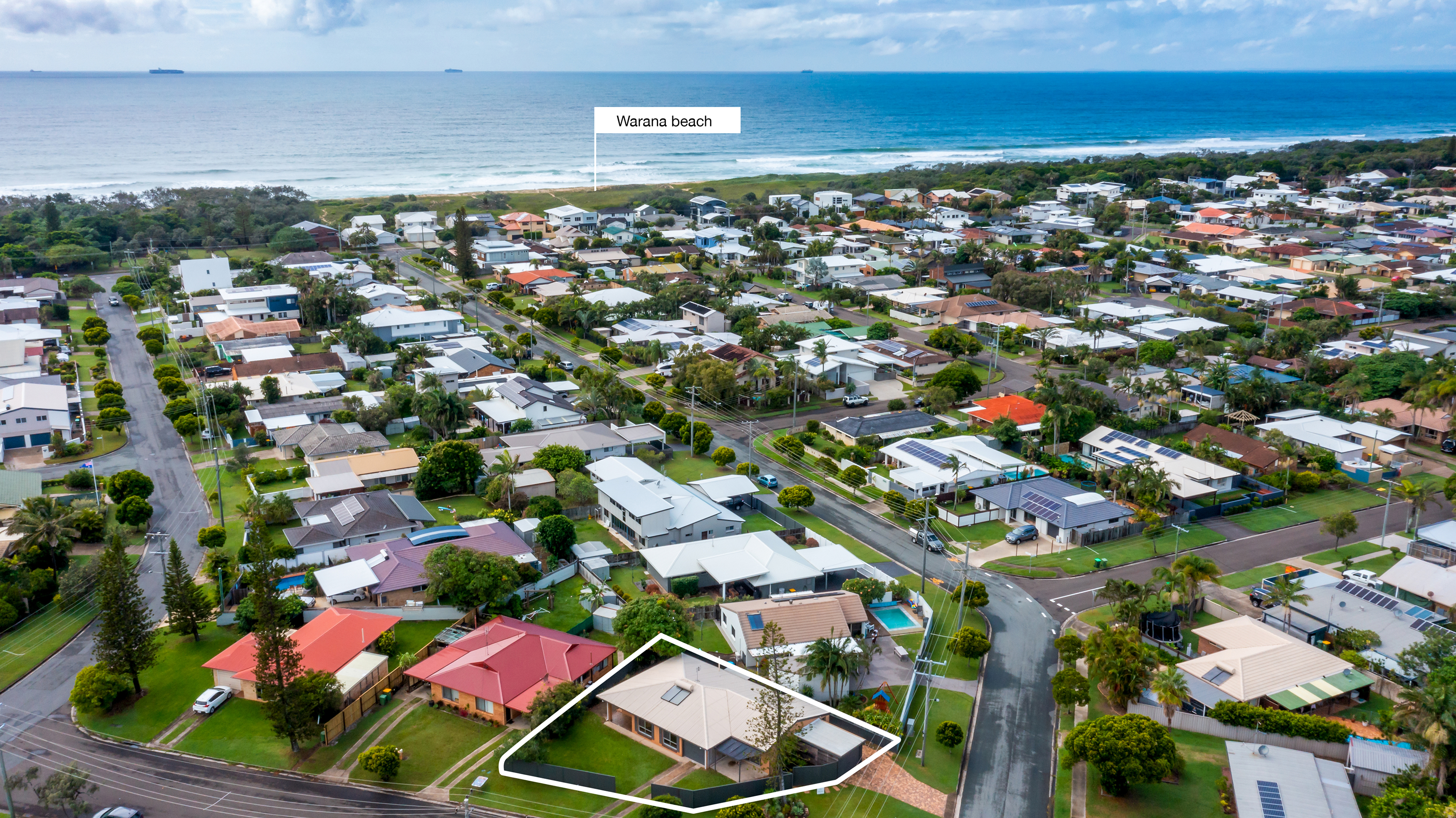 This solid single level brick home located on a 520m2 corner block, beachside of Nicklin Way, just 350m to the sand, offers generous sized living that could suit extended family, with a self-contained 2nd living area with its own entrance, along with two separate driveways and dual street access.