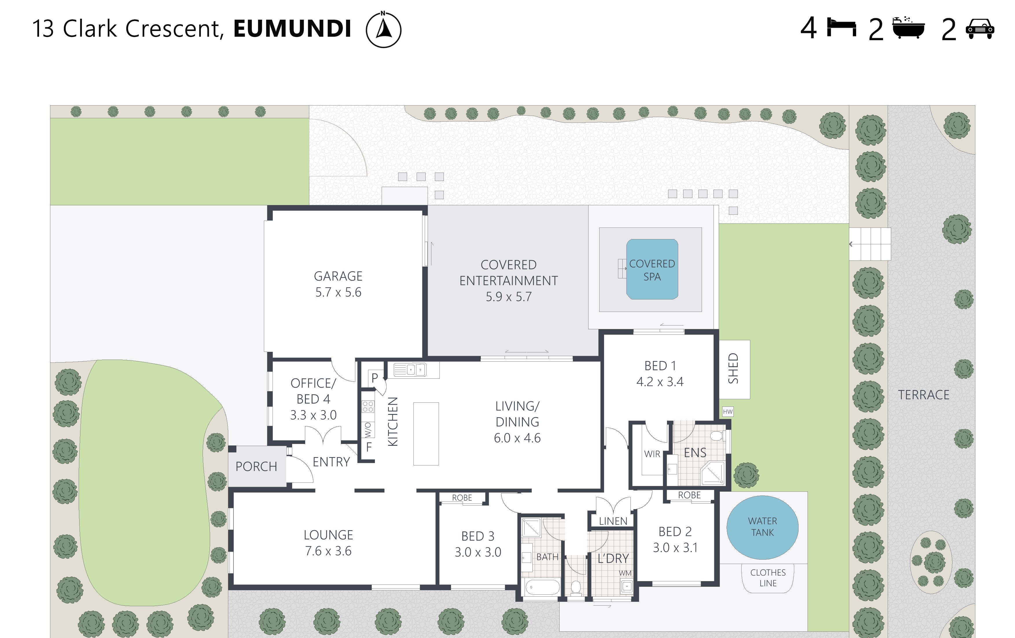 13 Clark Crescent combines exceptional indoor and outdoor living space with four bedrooms (or three plus study), two large living spaces, a modern kitchen and two contemporary bathrooms, all on a generous 700m2 block.