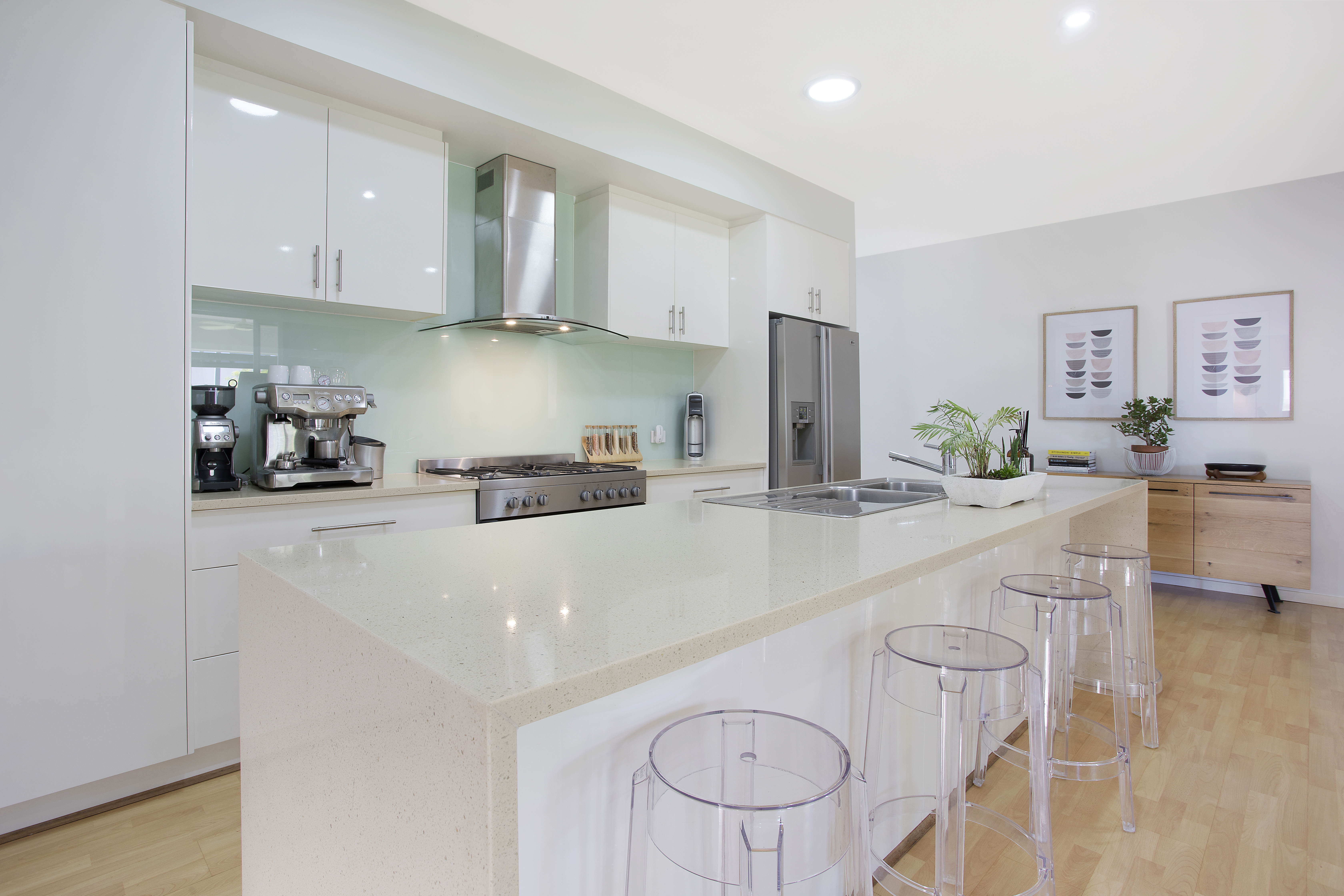 • Elegant modern kitchen, gas cooktop