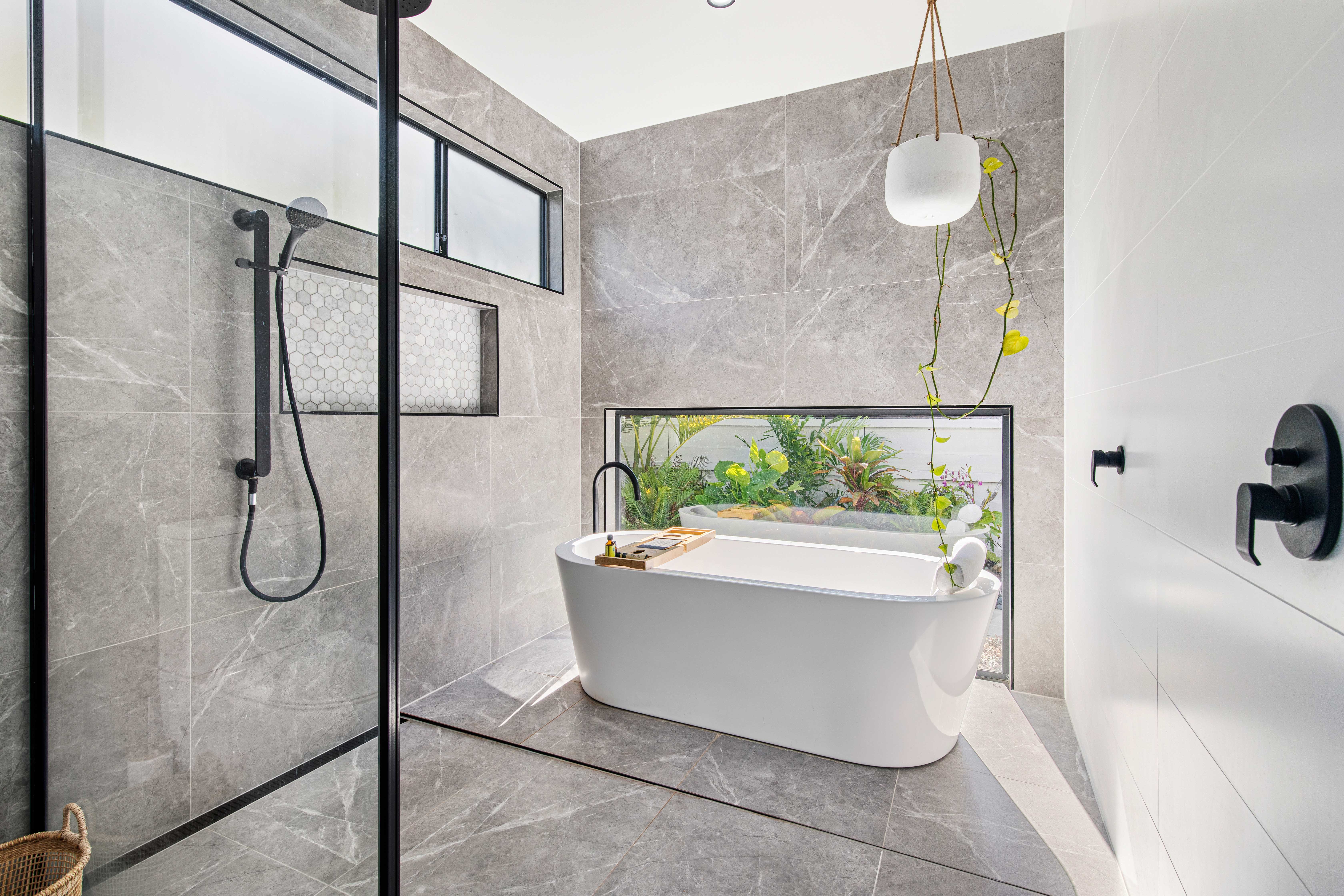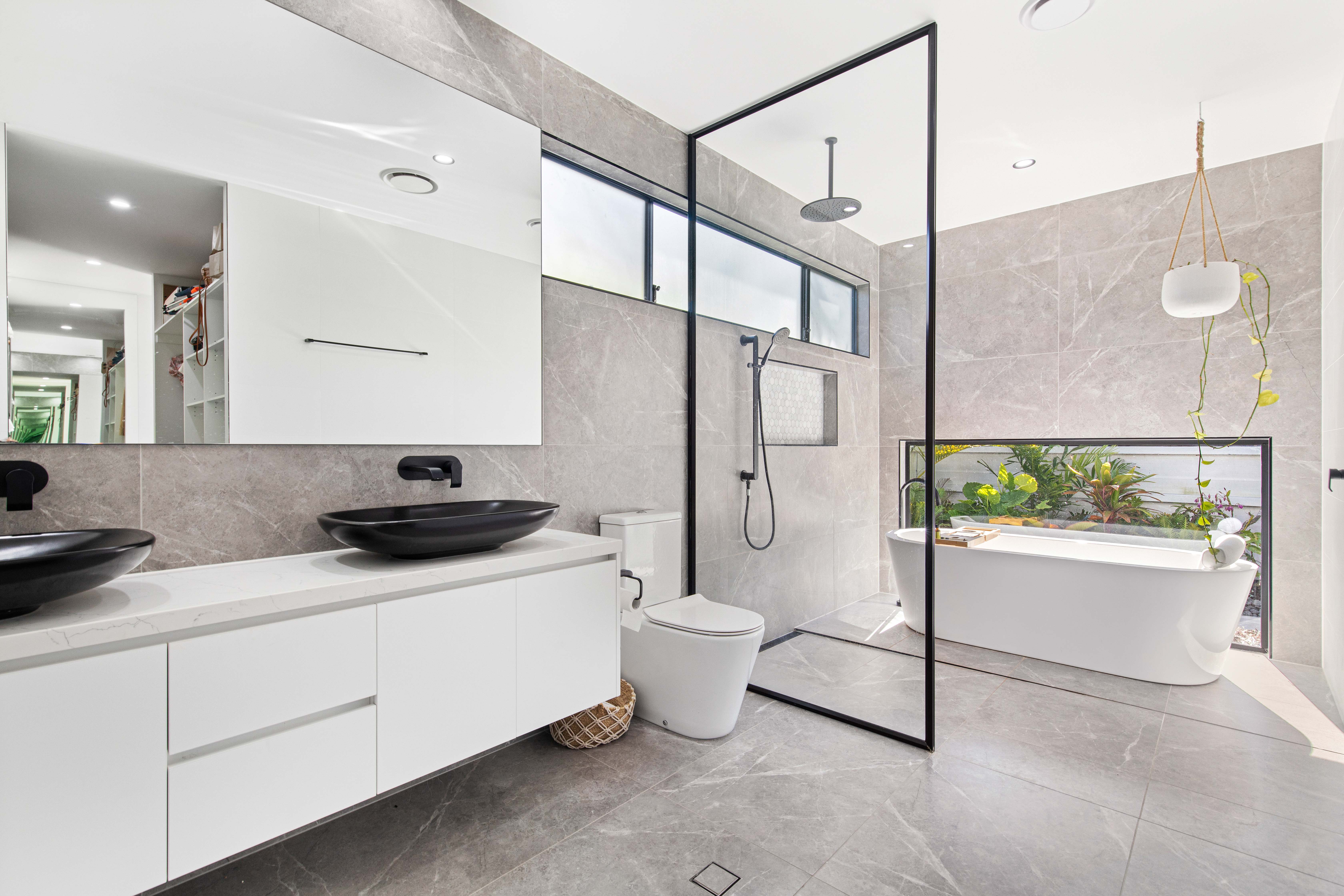 High ceilings, Pangea flooring in living and kitchen, plush carpets in bedrooms, standalone bathtubs in both bathrooms, direct deck access from master, marble benches, soft closing cabinetry, premium appliances, gas cooktop, MyZone ducted air-conditioning, ceiling fans, Swan (back to base) security system, spotted gum decking around pool and on patio, gas hot water, and water tank - are just some of the features.