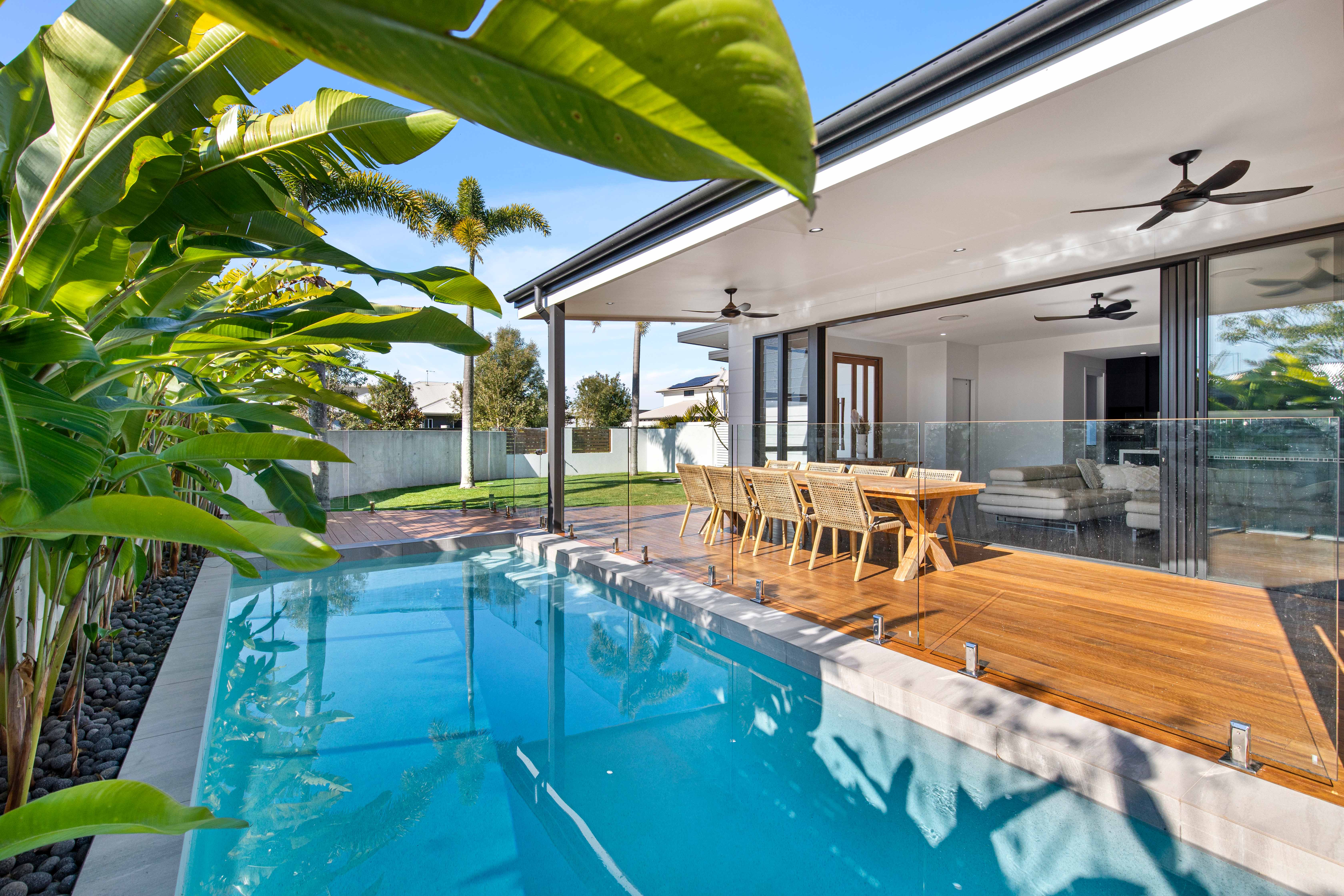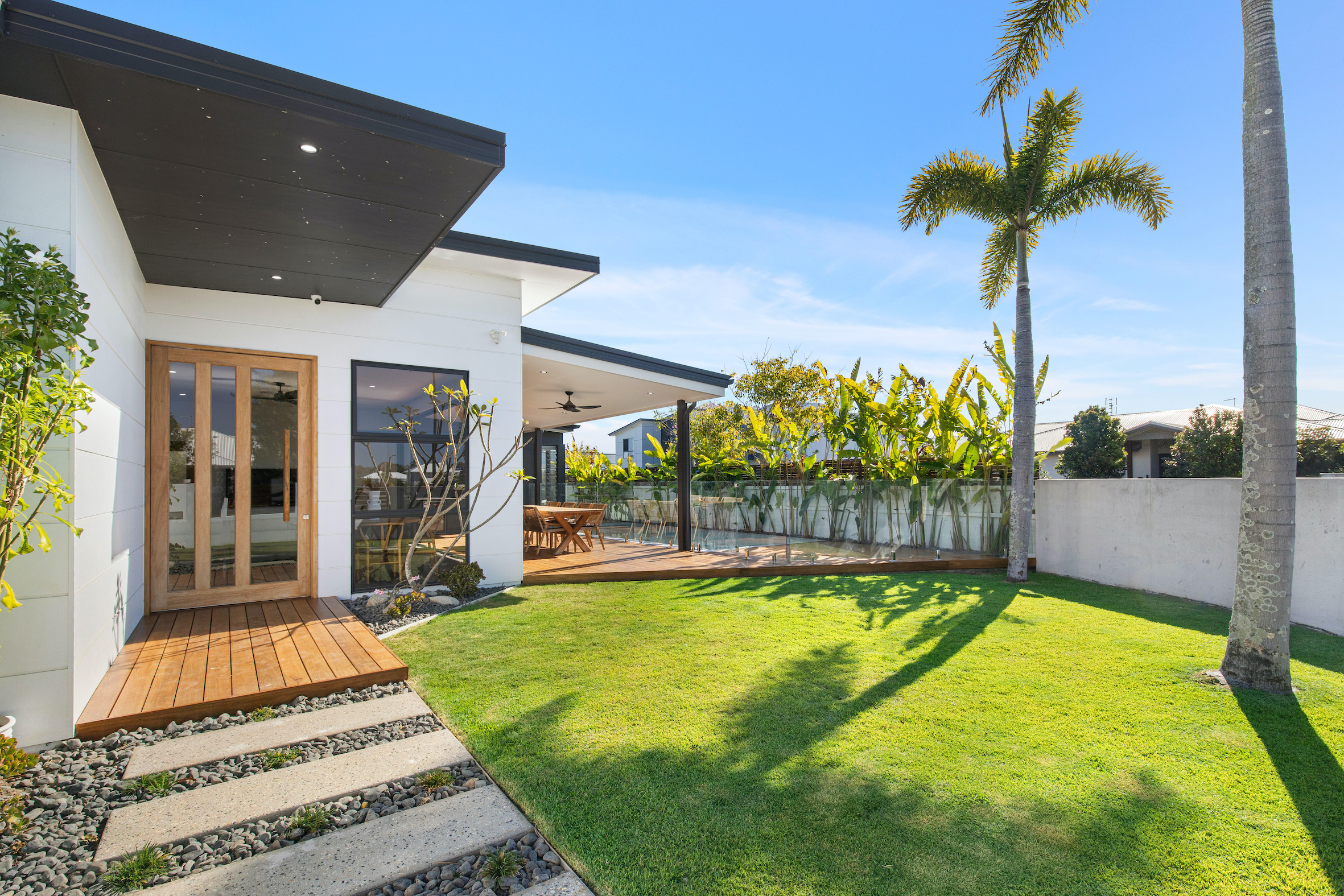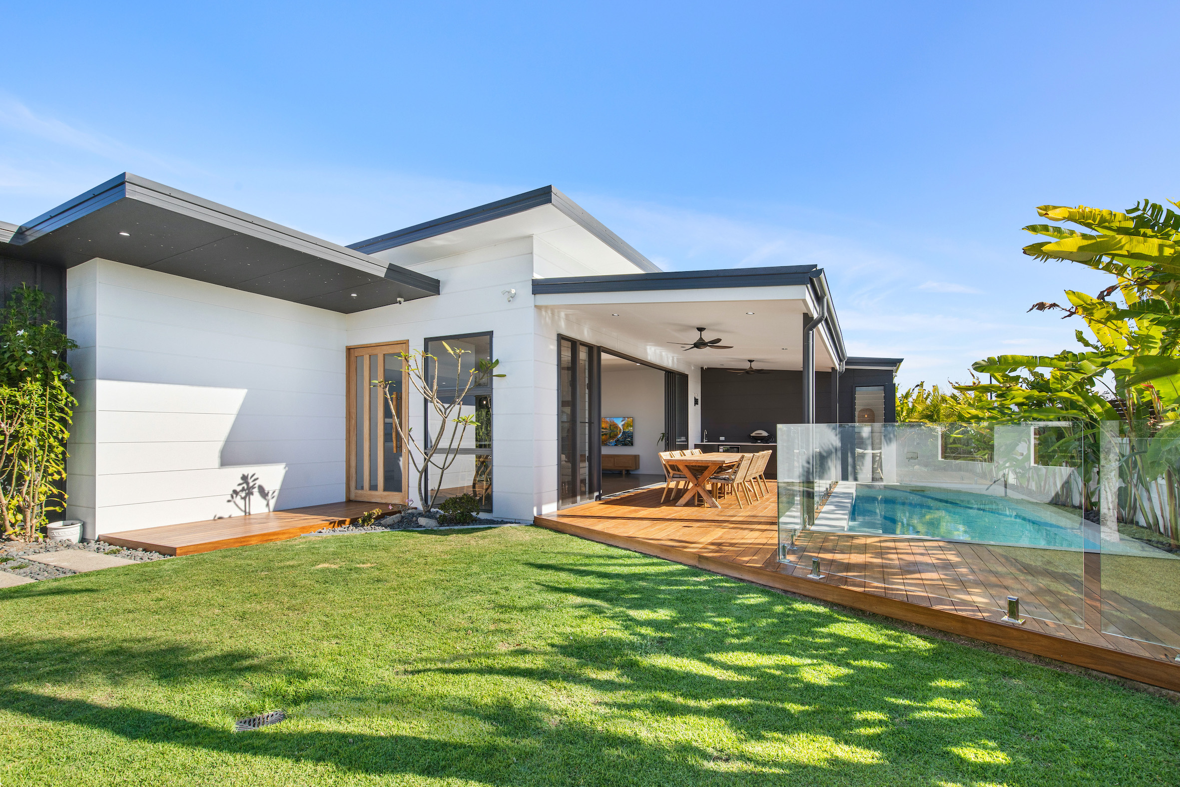 Located on a 510m2 fully fenced corner block, across a single level the home comprises four bedrooms, study nook, two luxury bathrooms, sleek designer kitchen with butler's pantry, open plan living flowing out to north-east facing deck overlooking inground saltwater pool, separate laundry, and double lock up garage with roller-door access to hardstand area for kayak/bikes/jet-ski etc.