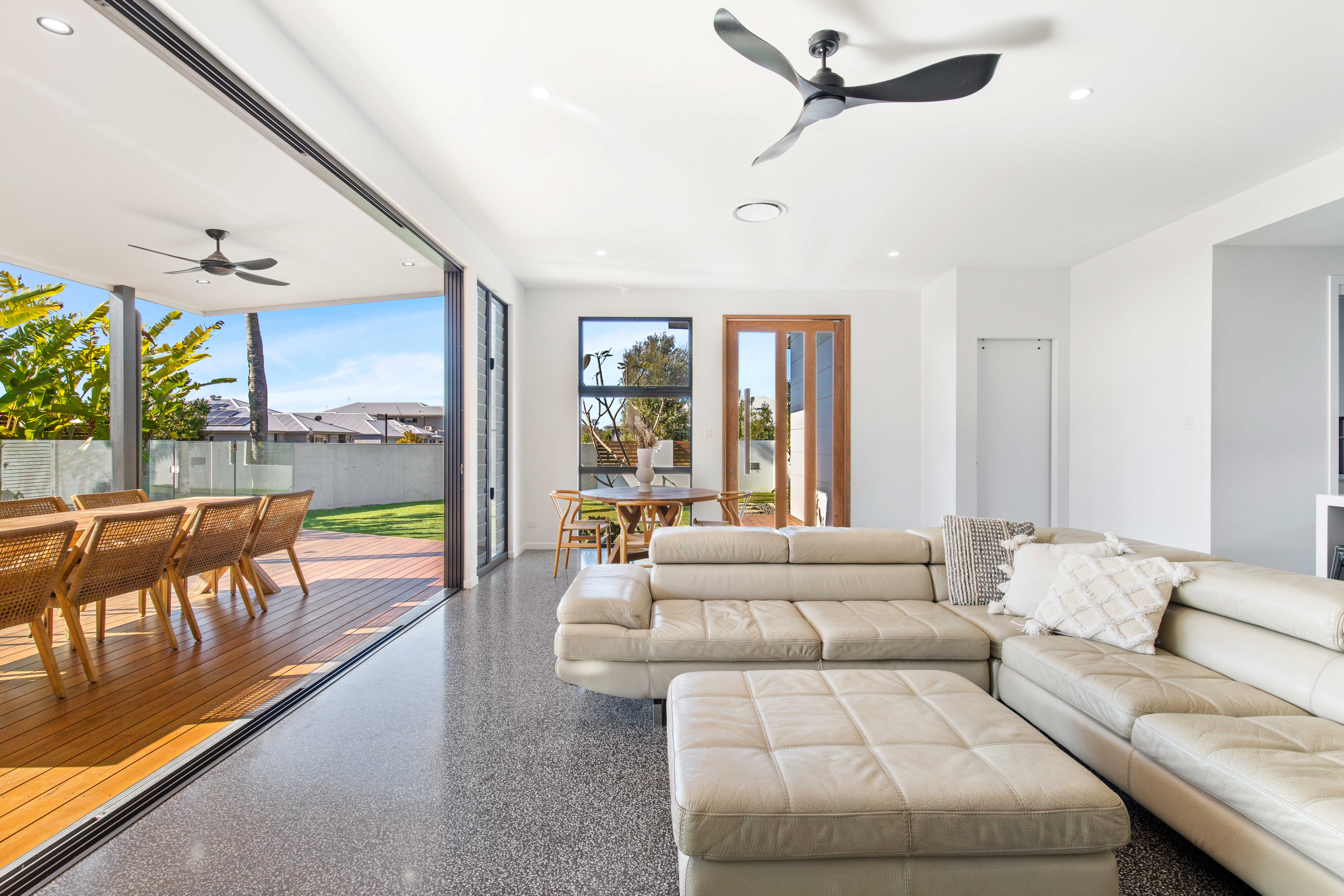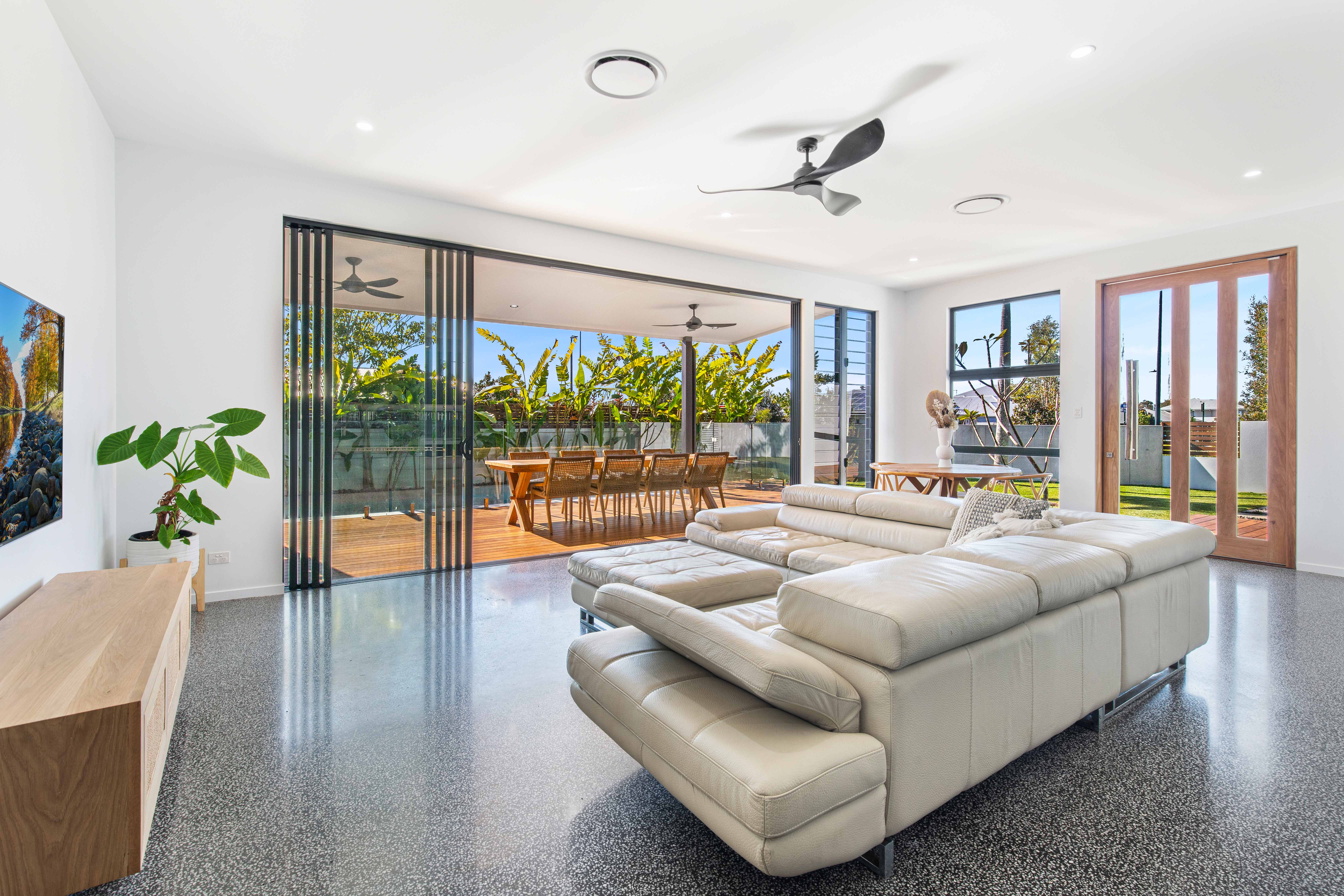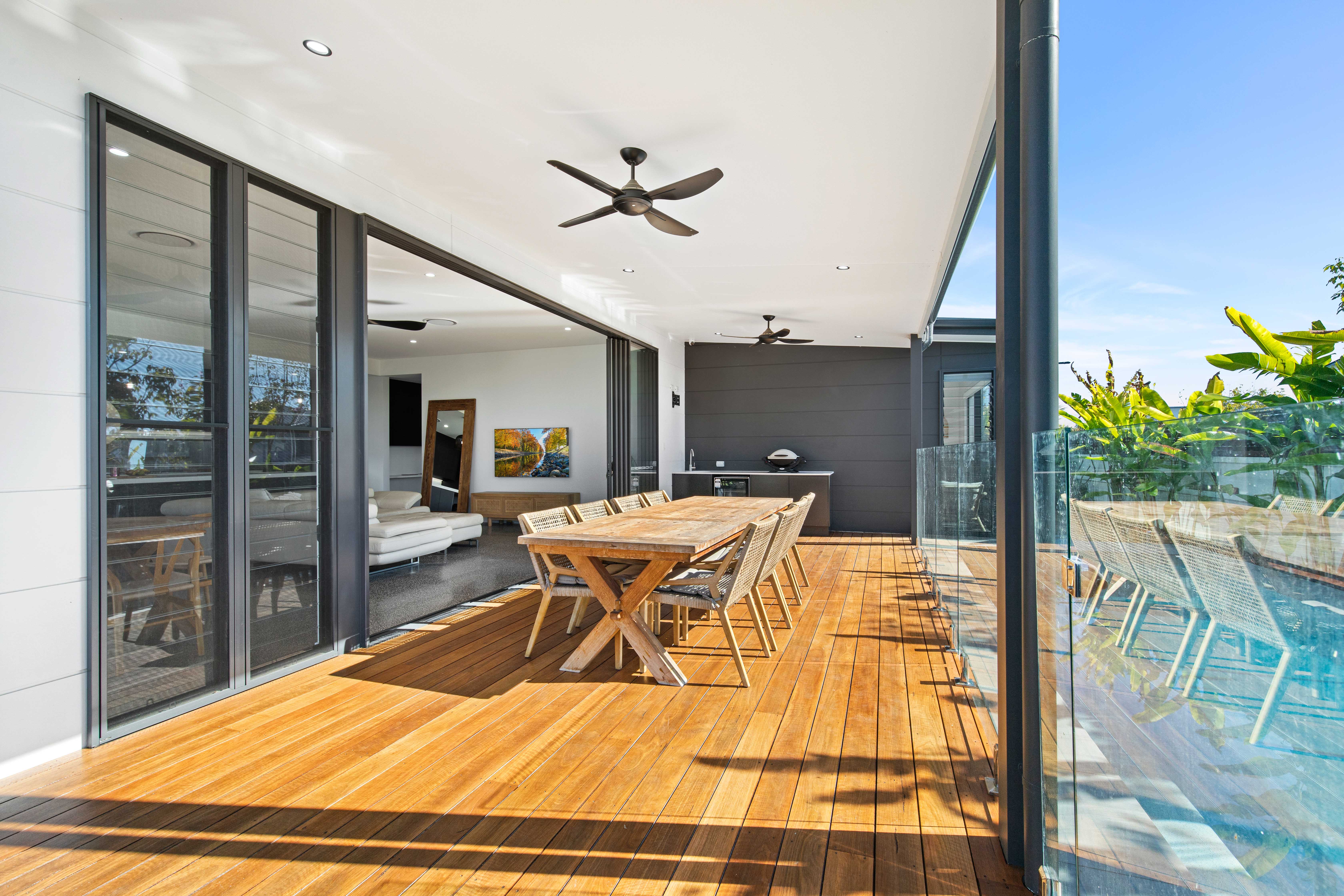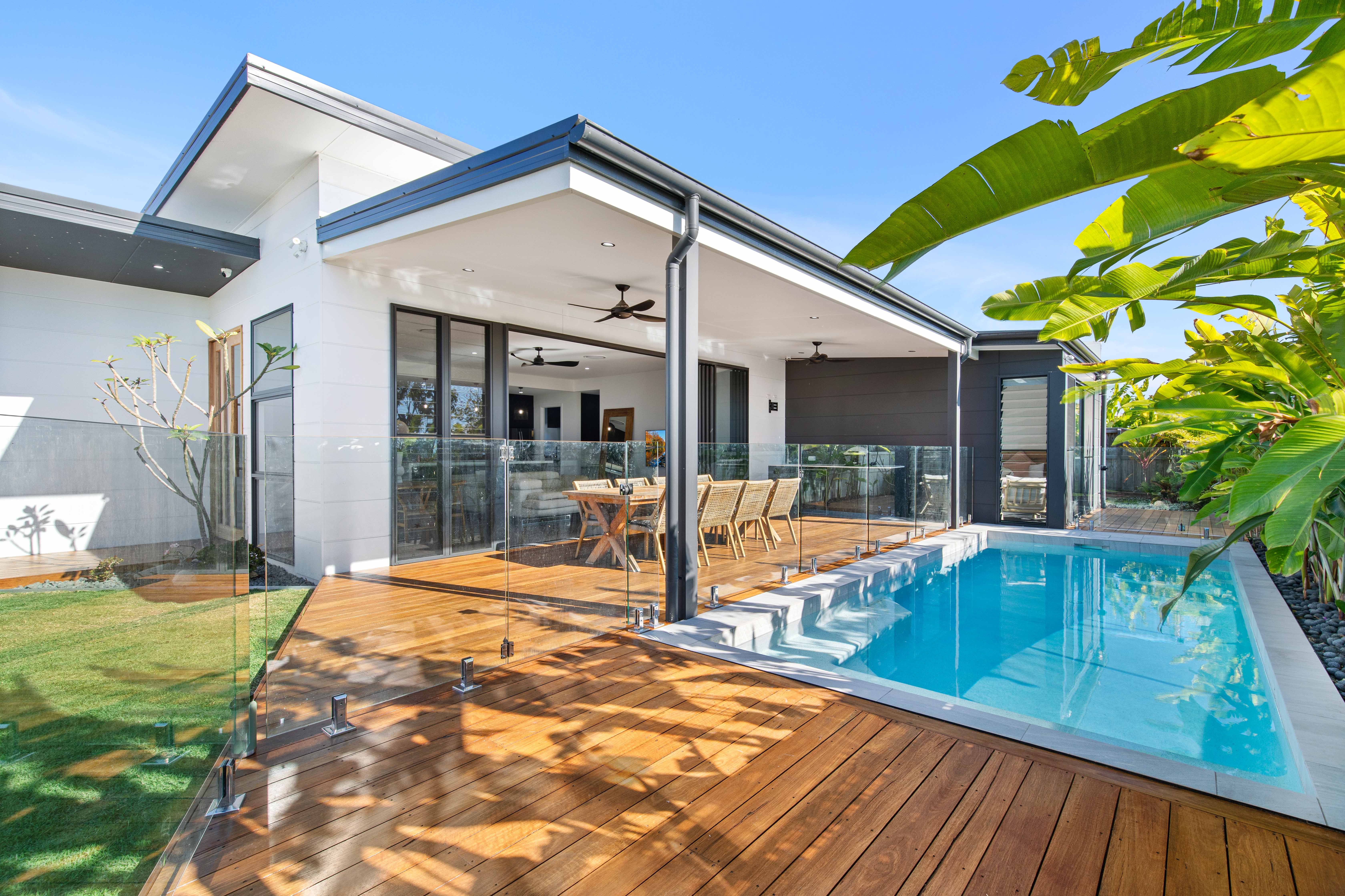 Located on a 510m2 fully fenced corner block, across a single level the home comprises four bedrooms, study nook, two luxury bathrooms, sleek designer kitchen with butler's pantry, open plan living flowing out to north-east facing deck overlooking inground saltwater pool, separate laundry, and double lock up garage with roller-door access to hardstand area for kayak/bikes/jet-ski etc.