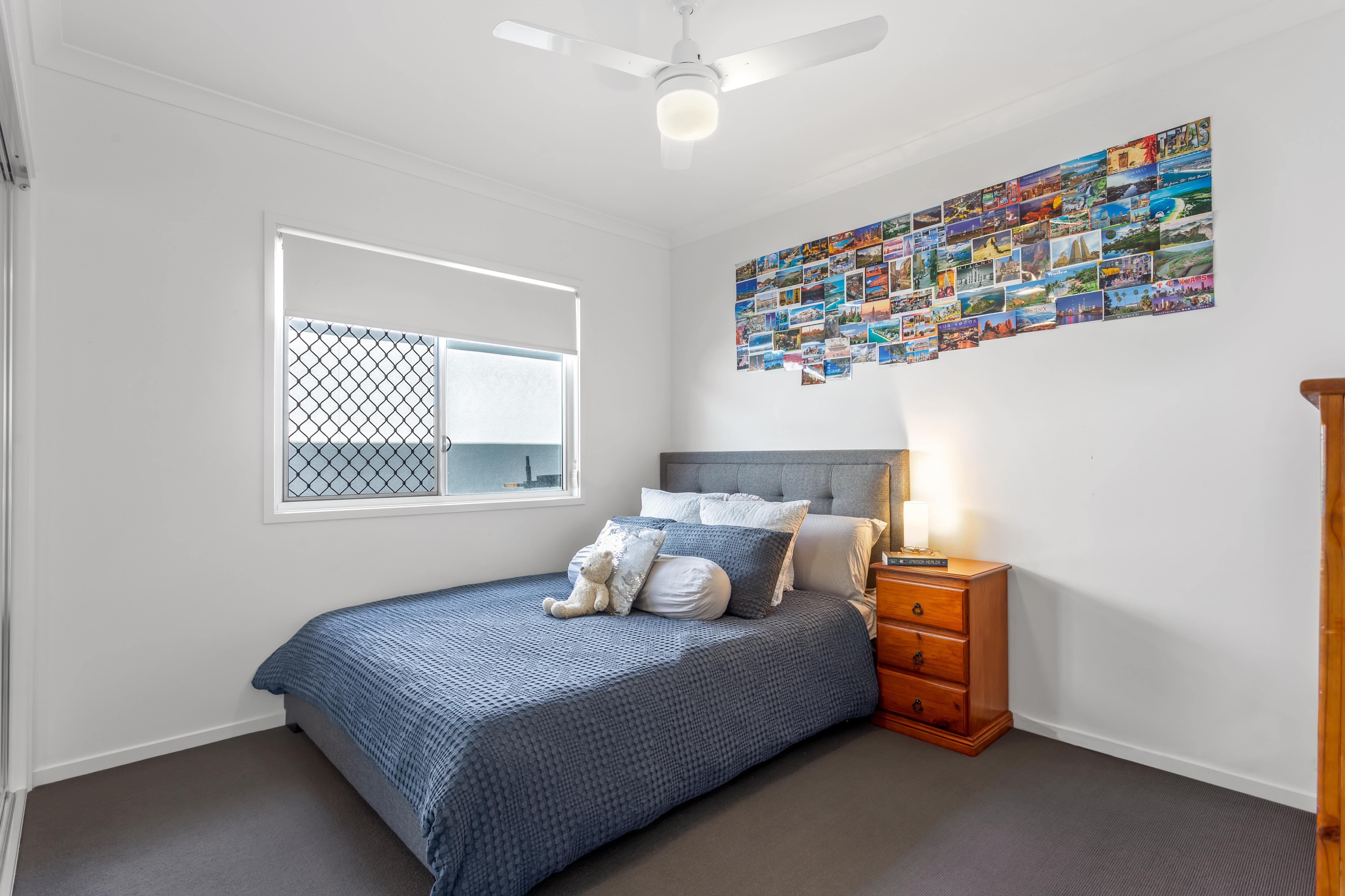 Privately positioned at the rear of the property, the master suite boasts every luxury. Equipped with a large walk-in wardrobe and double vanity ensuite, high ceilings and large windows, this is the perfect retreat. The three bedrooms are generously sized and come with ceiling fans and roller blinds.