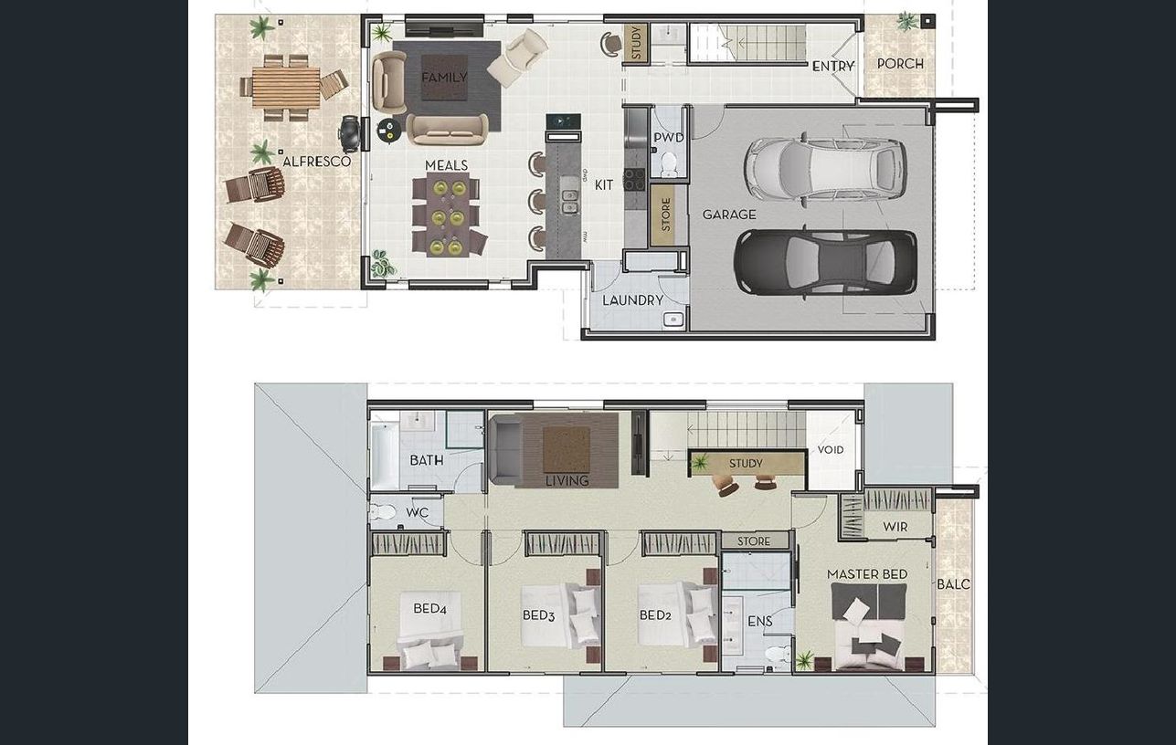 Upstairs is the four bedrooms, main bathroom, ensuite, and office nook and second living area, perfect as a media room or kids rumpus area!