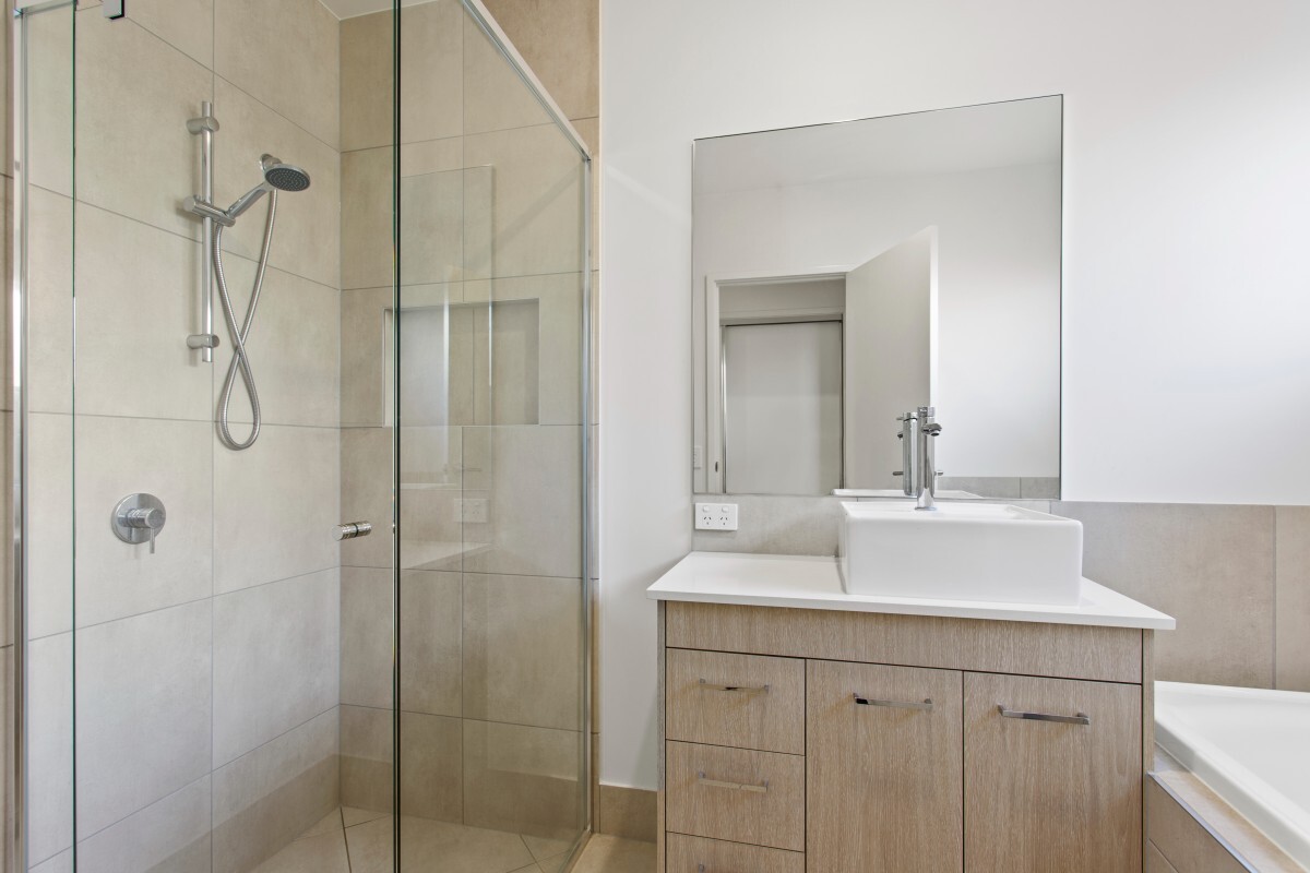 Privately positioned at the front of the property, the master suite boasts every luxury. Equipped with a large walk-in wardrobe and single vanity ensuite ensuite, high ceilings and large windows, this is the perfect retreat. The other two bedrooms are generously sized and come with ceiling fans and roller blinds.