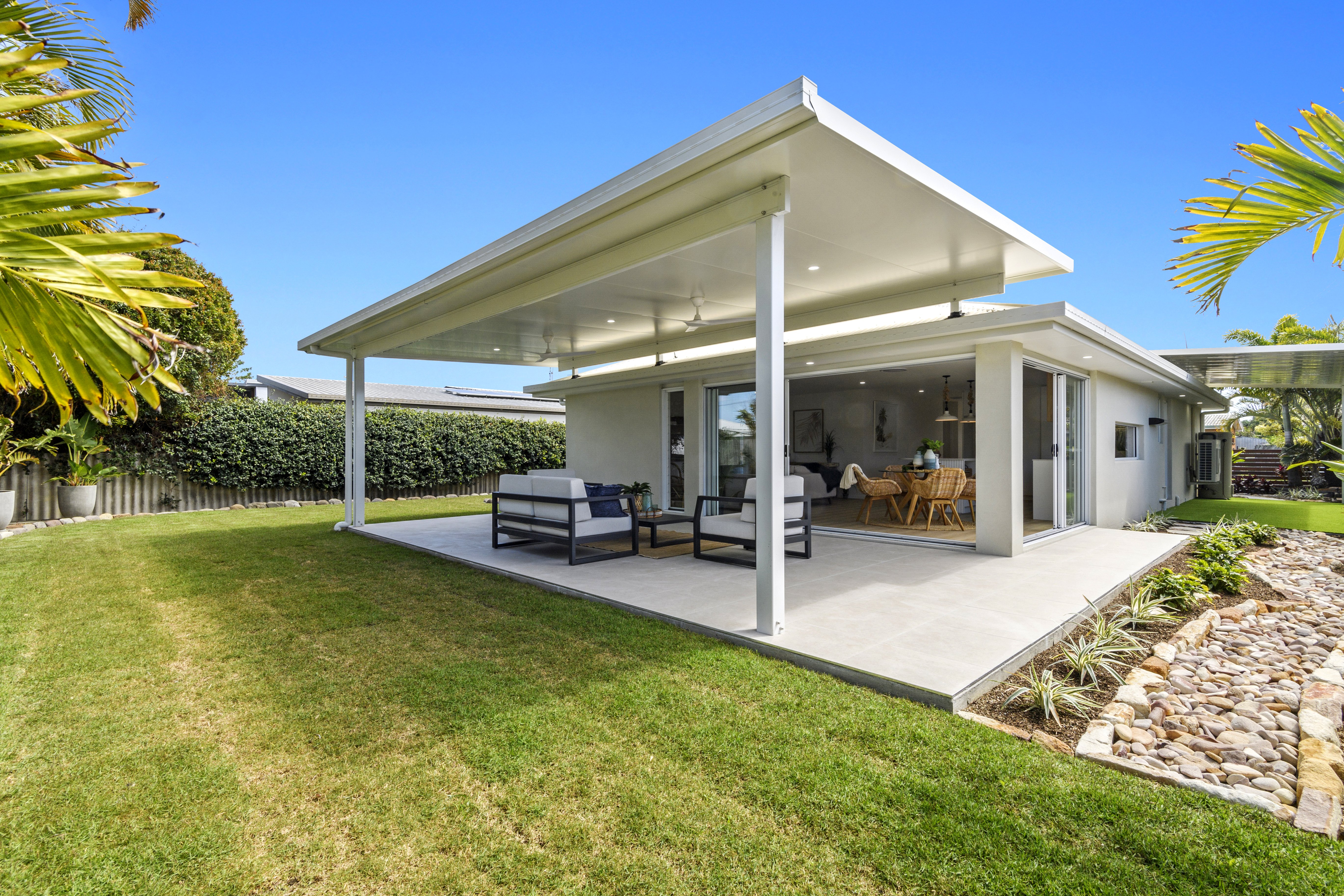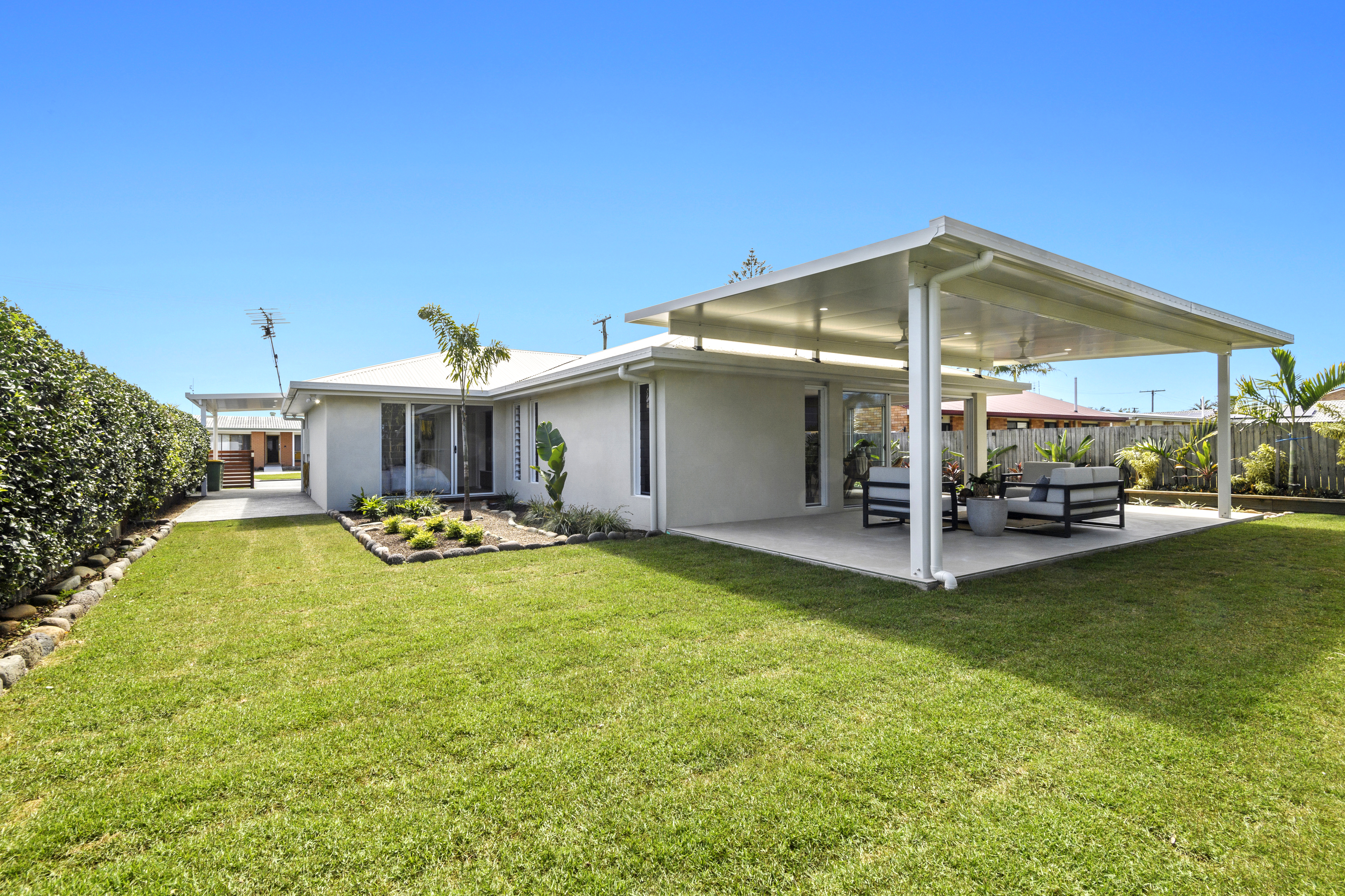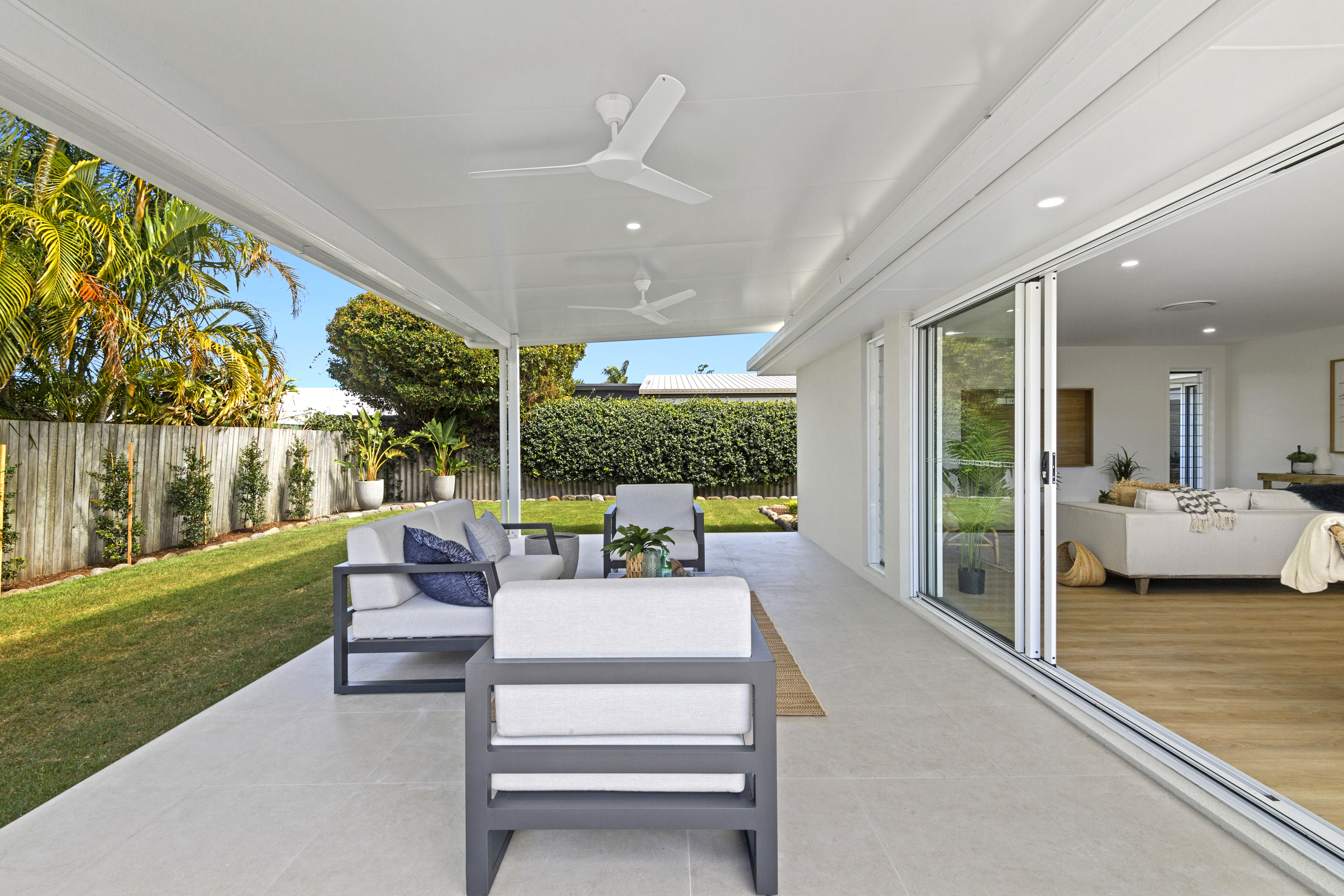 The gardens require virtually zero maintenance and fully fenced - they are pet and child friendly, with room for a pool and/or a shed. The rear patio is expansive and an inviting space for all your social occasions - from Christmas lunch, champagne brunch, BBQ after a morning at the beach, birthday parties, neighbourhood soirees, footy final gatherings - you name it, you can celebrate it here in comfort and privacy.
