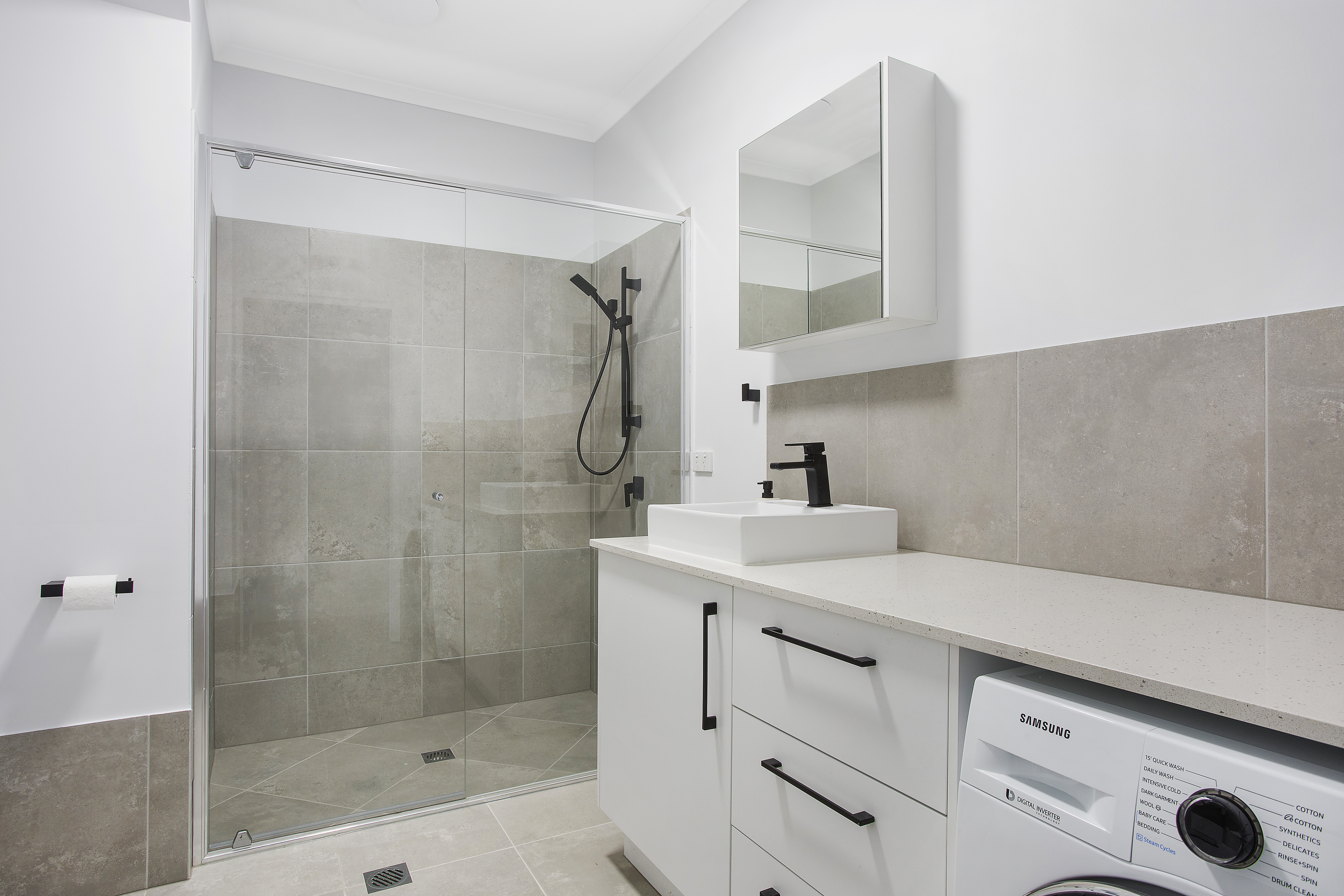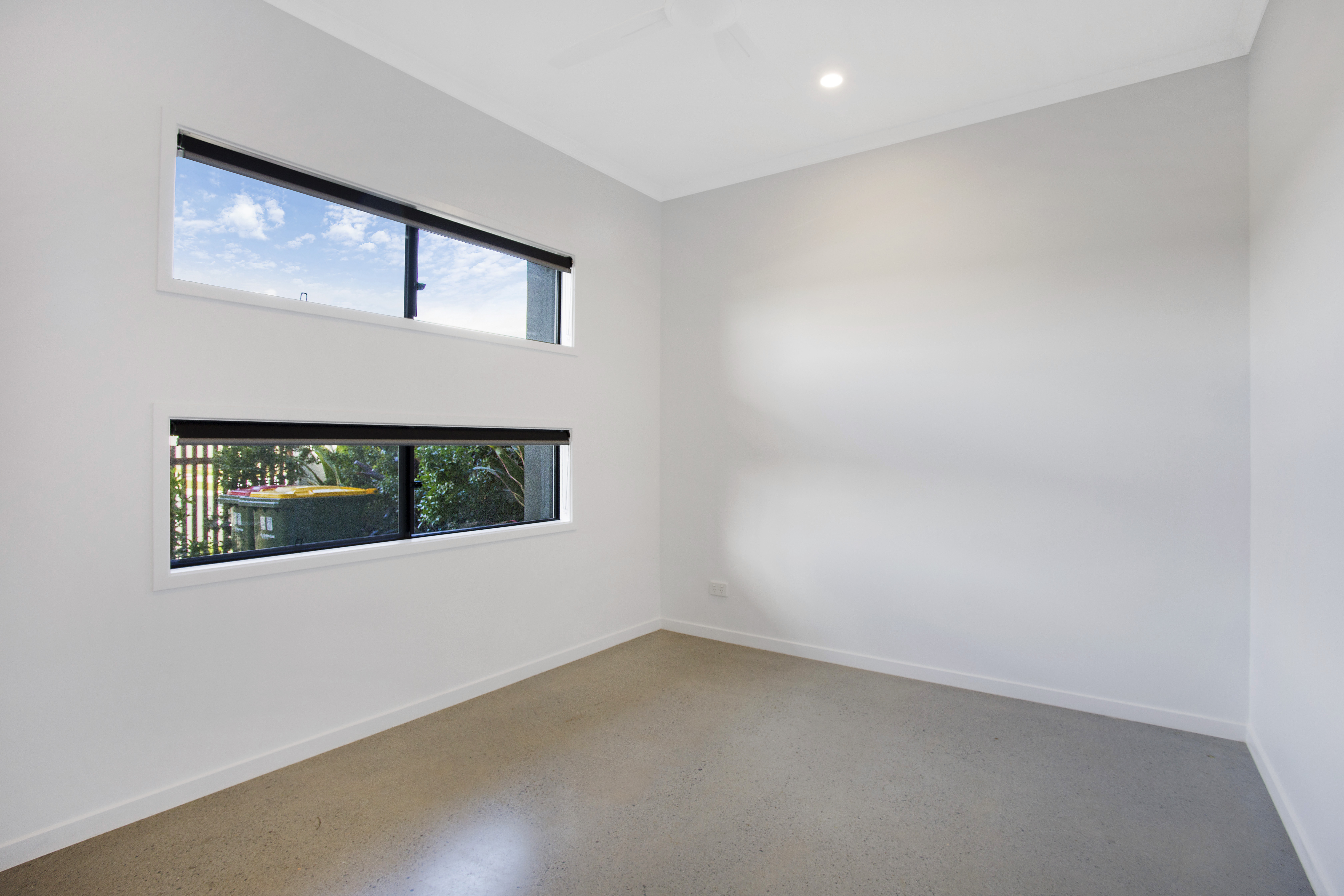 The generous main bedroom (Located upstairs) features a spacious wardrobe and ensuite, ensuring your comfort and privacy.  Did we also mention the picturesque views of Glasshouse Mountains from your master bedroom?  The secondary bedroom (Located downstairs) come with built in robes as standard. Each room also includes block out roller blinds and ceiling fans.