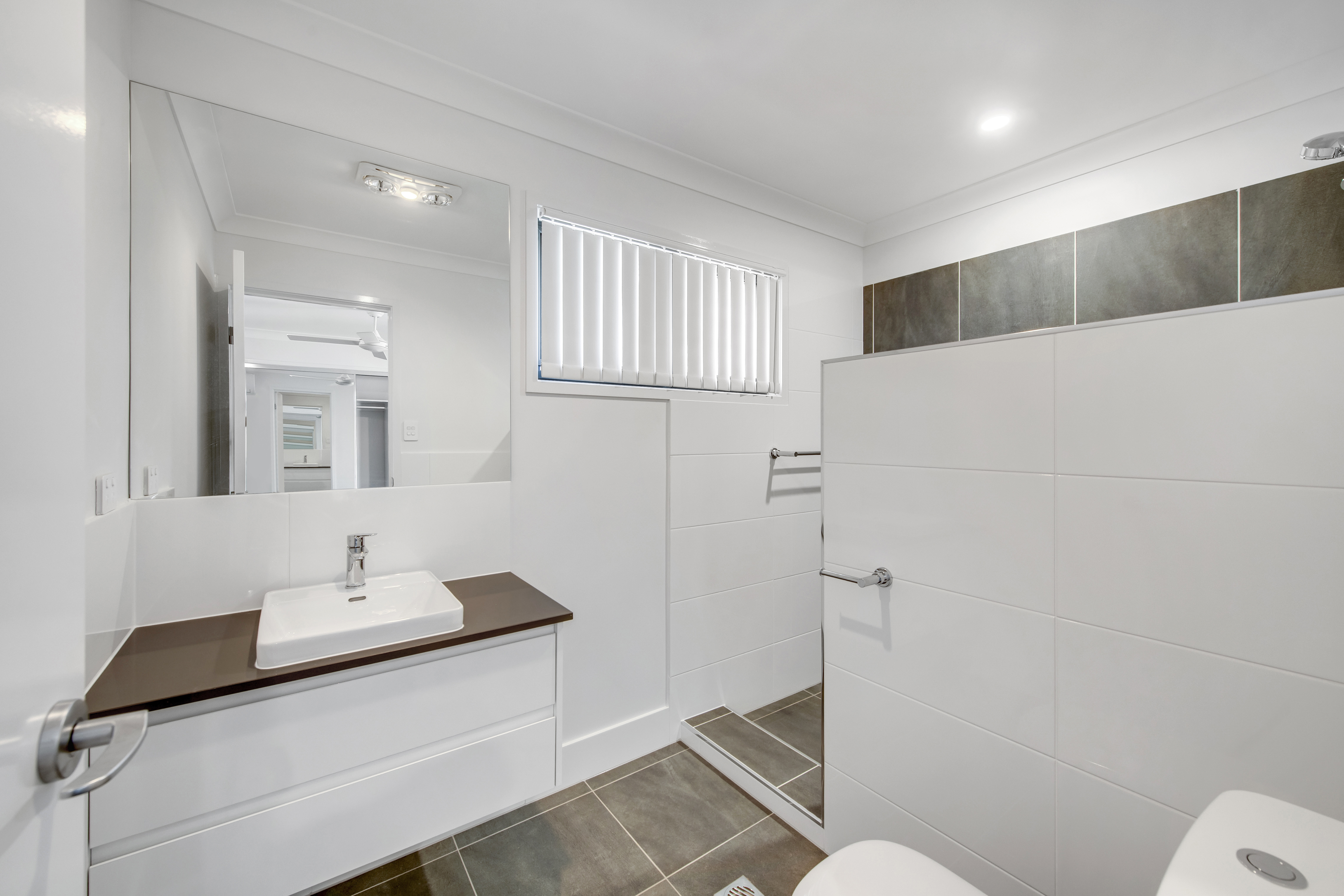 There are two bedrooms located on the lower level with double mirrored robes, a modern bathroom with a raised bath tub and stone bench tops.