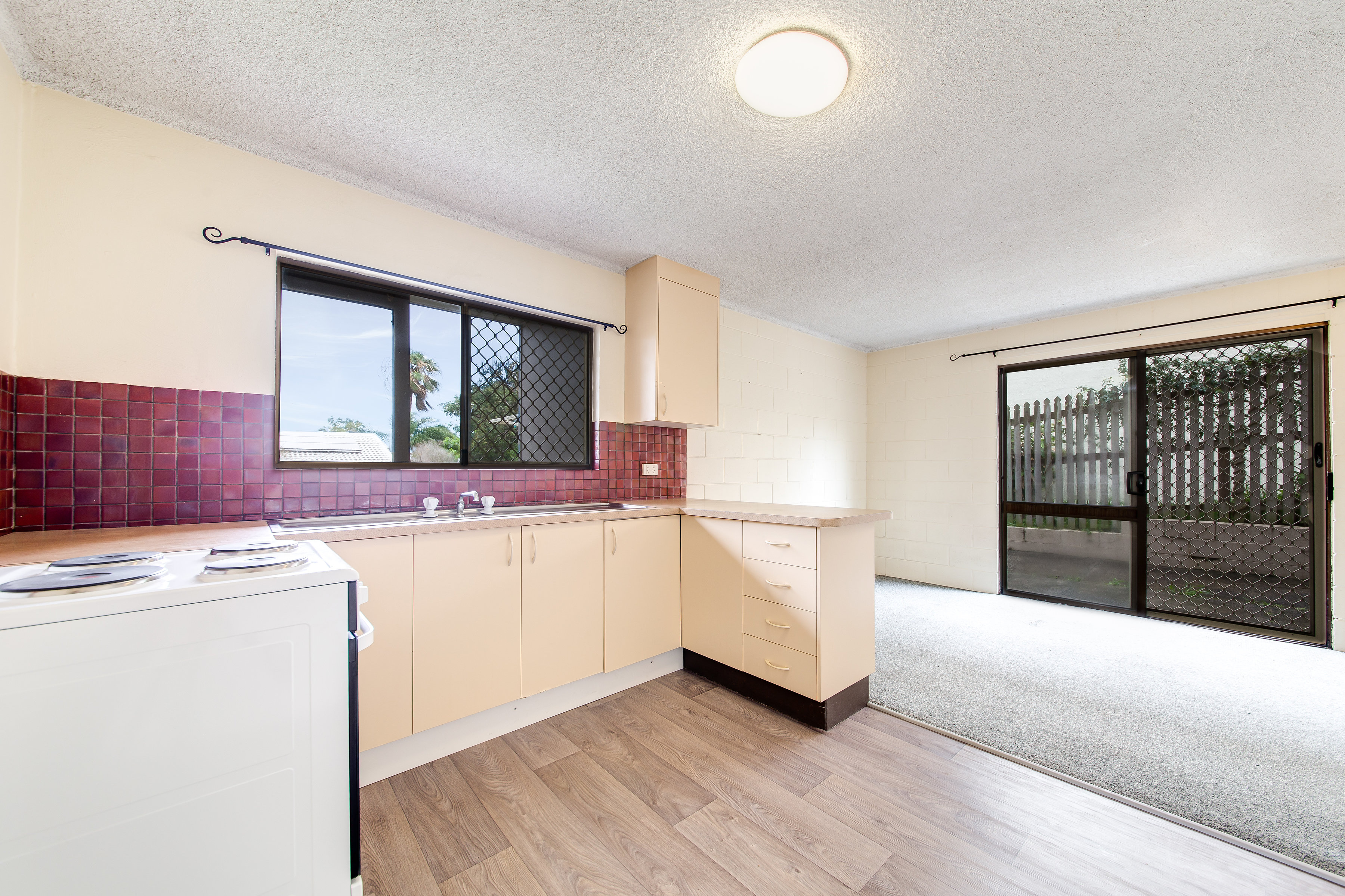 The well appointed kitchen has an electric cook top & oven.