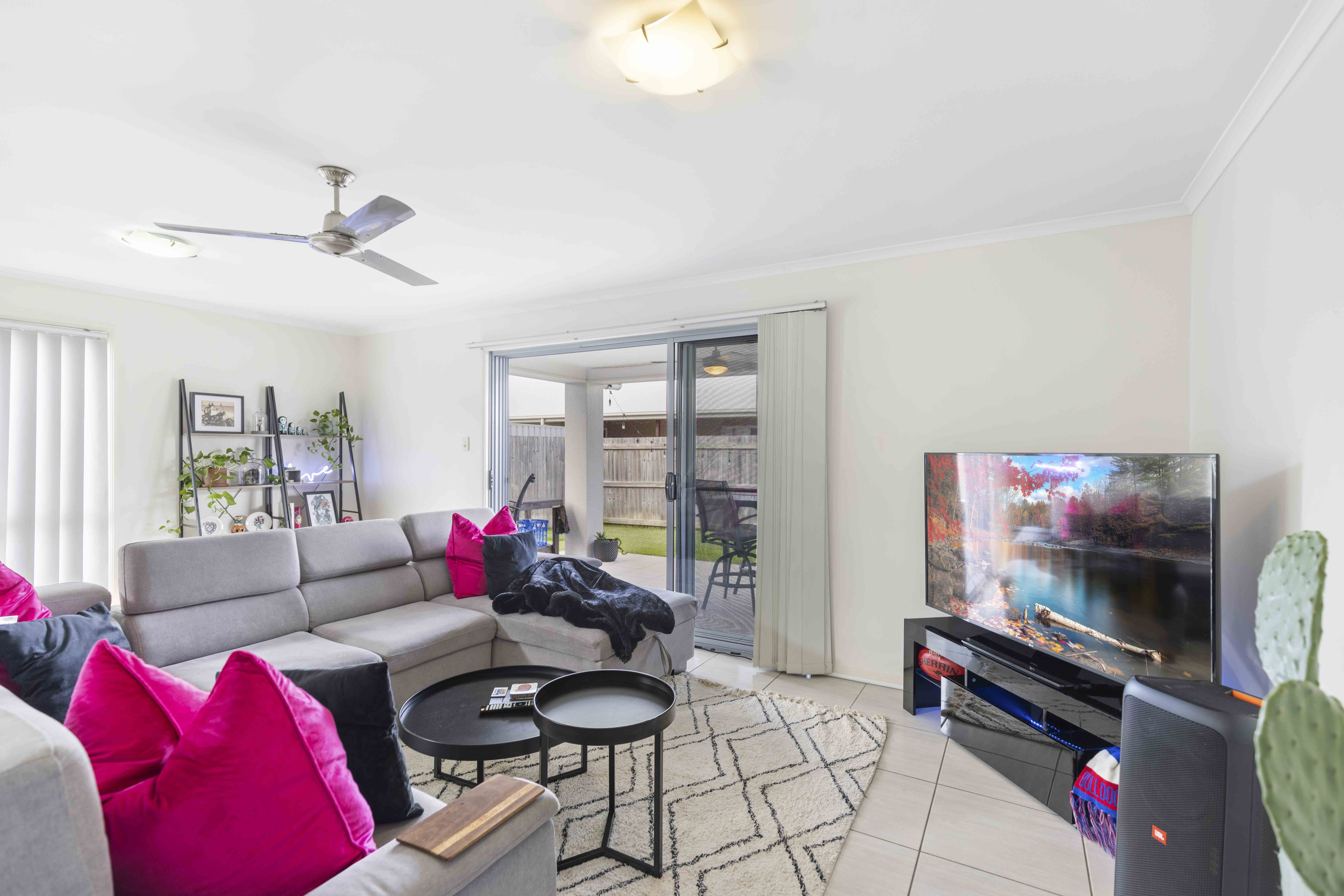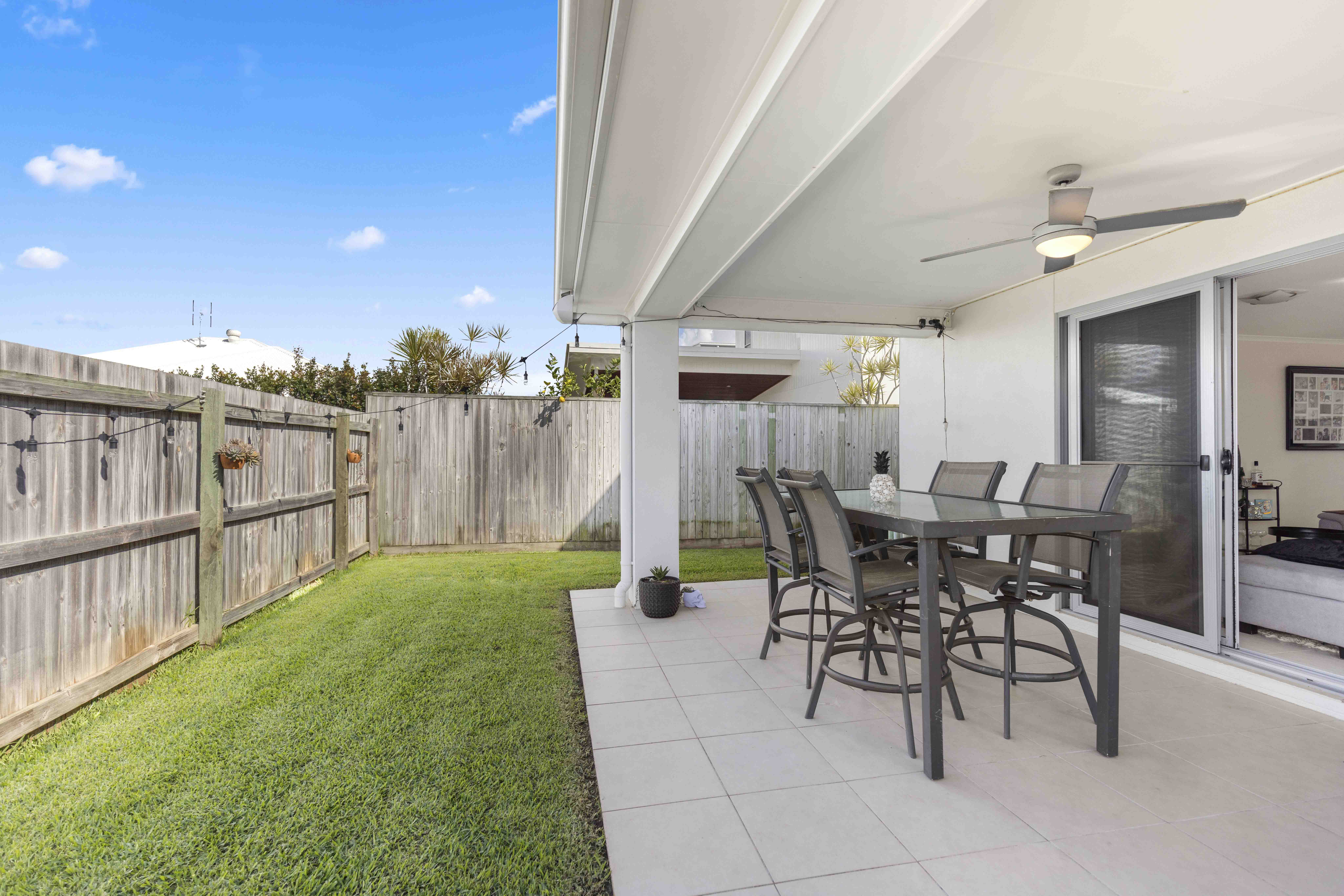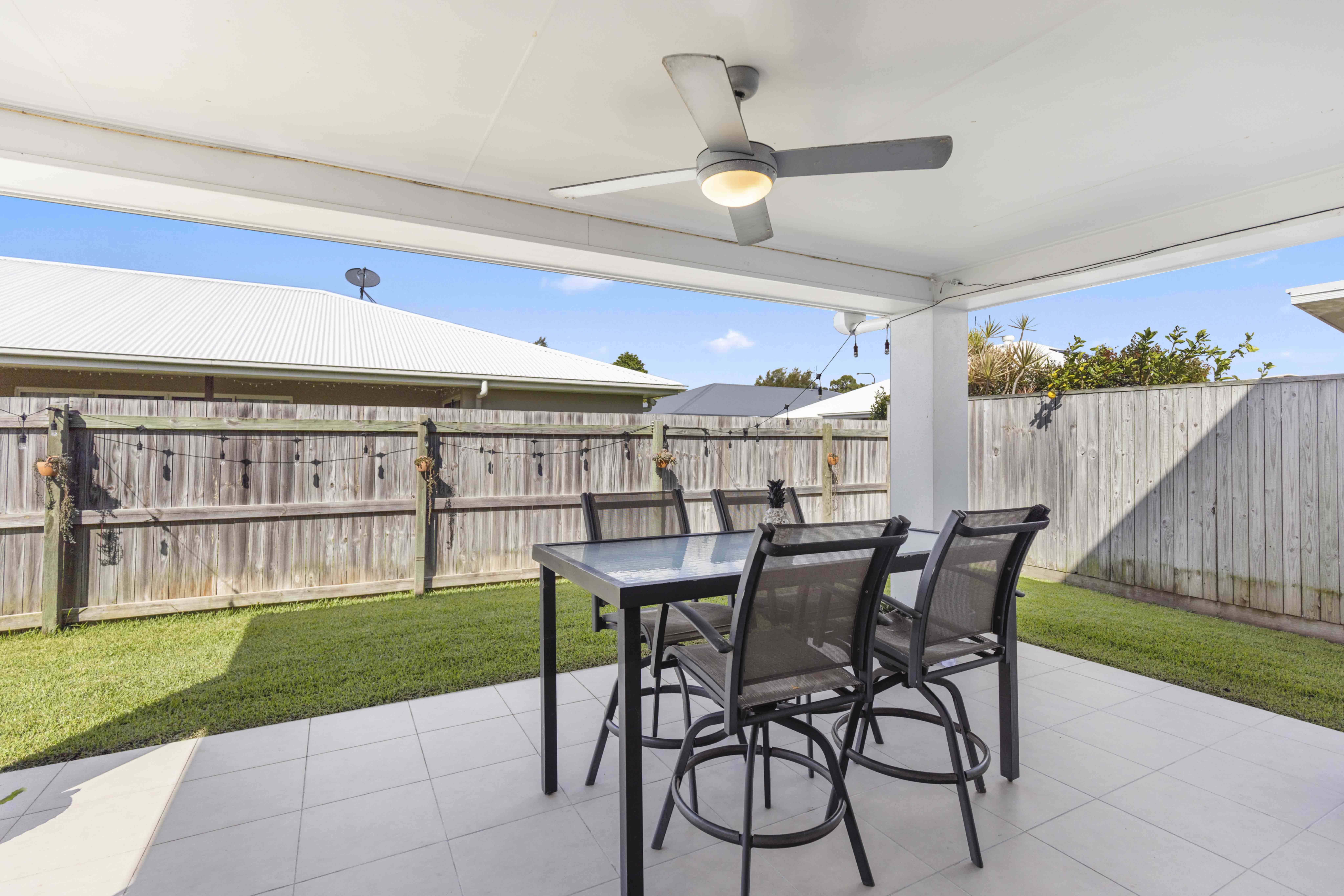 • Covered alfresco entertaining patio with fan
