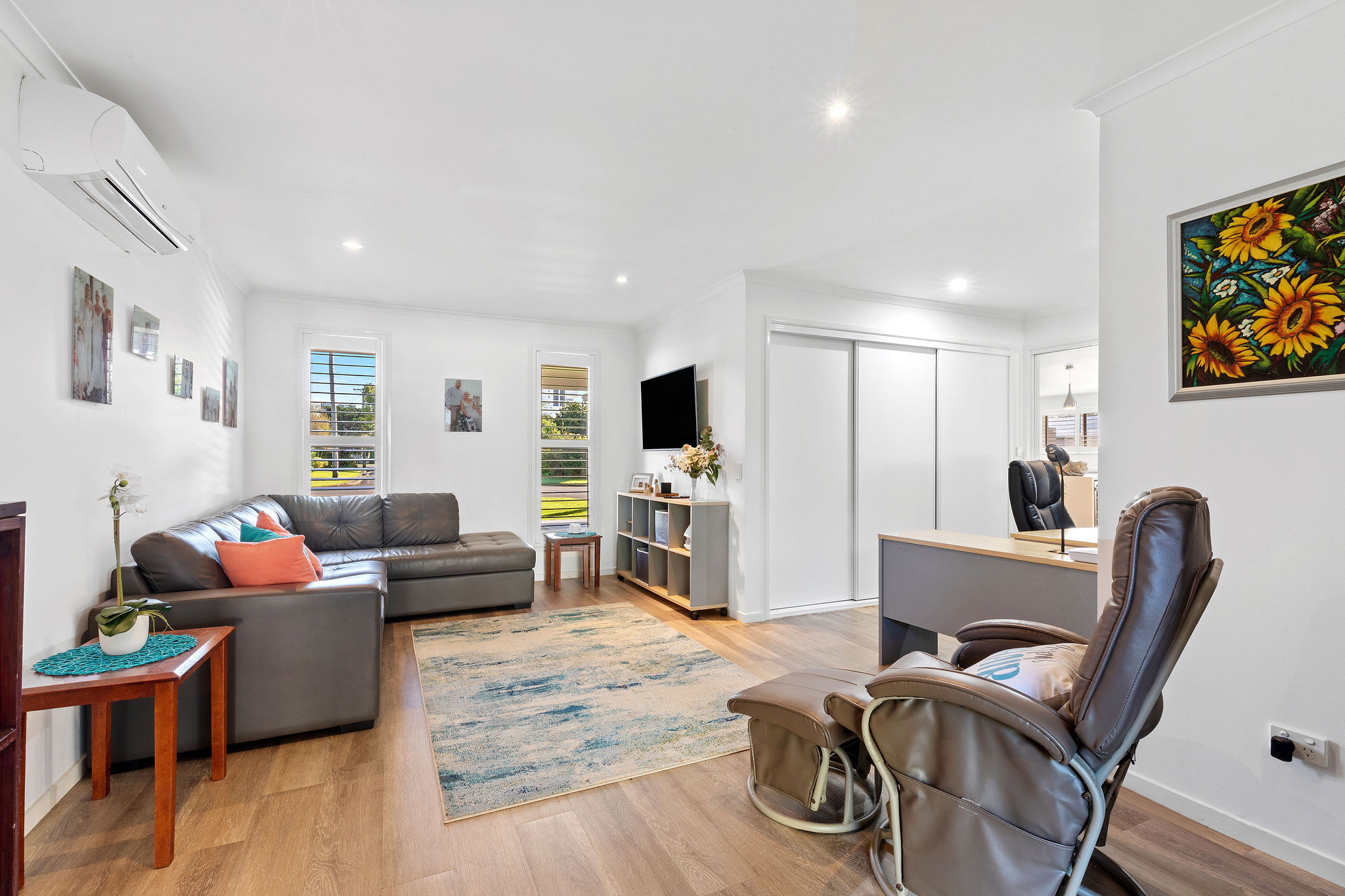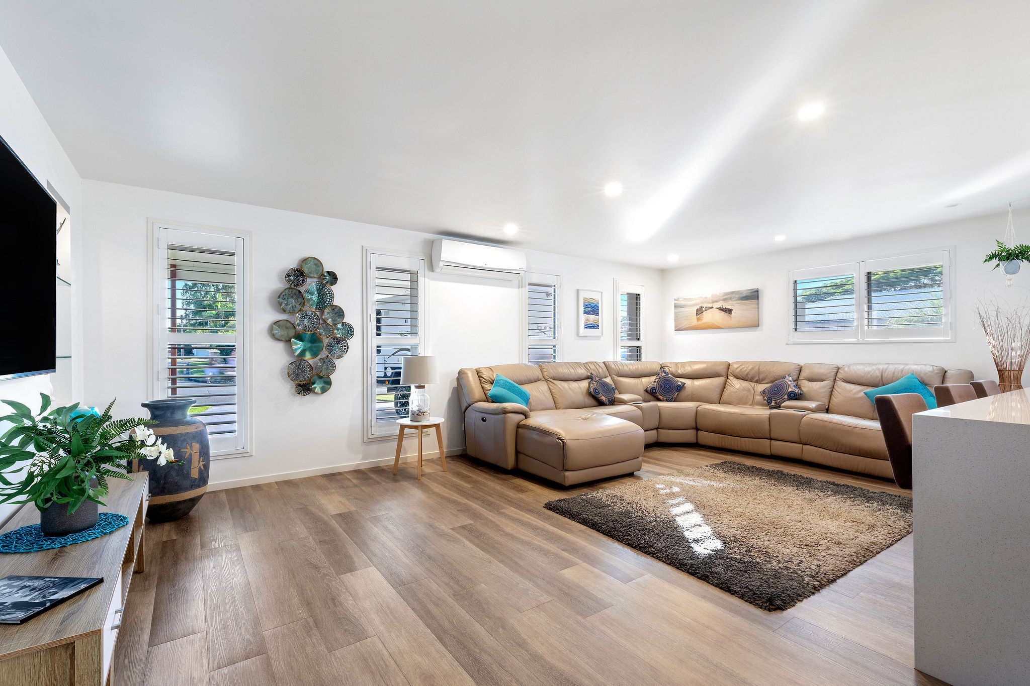 • Split system A/C x 4, plantation shutters, ceiling fans