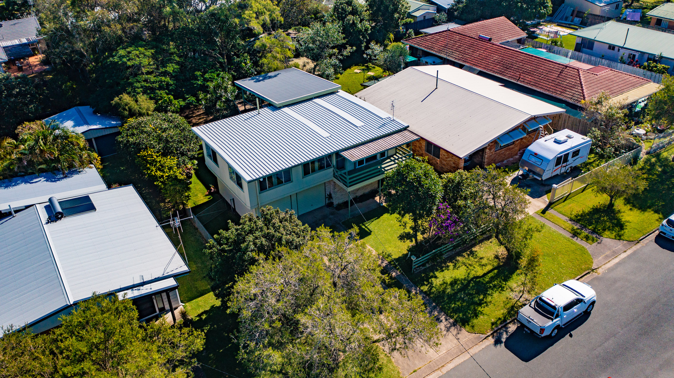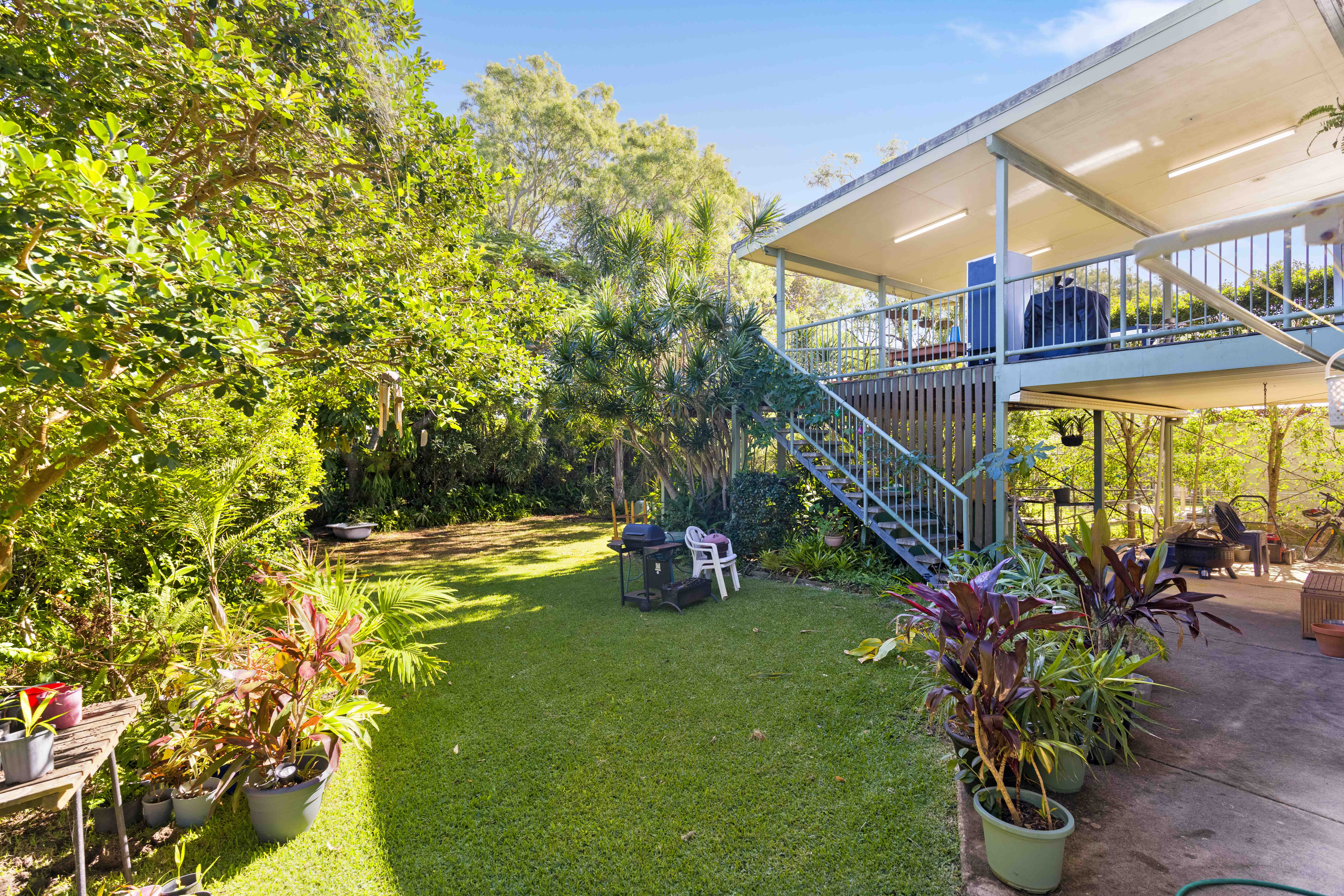 The gardens are low maintenance - with just a regular mow needed to keep it looking neat and tidy, and plenty of room for a pool, plus space for children and pets to play. There is well-established lush leafy vegetation already in place, enhancing privacy and ambience, including a glorious poinciana tree in backyard, resplendent when in bloom.