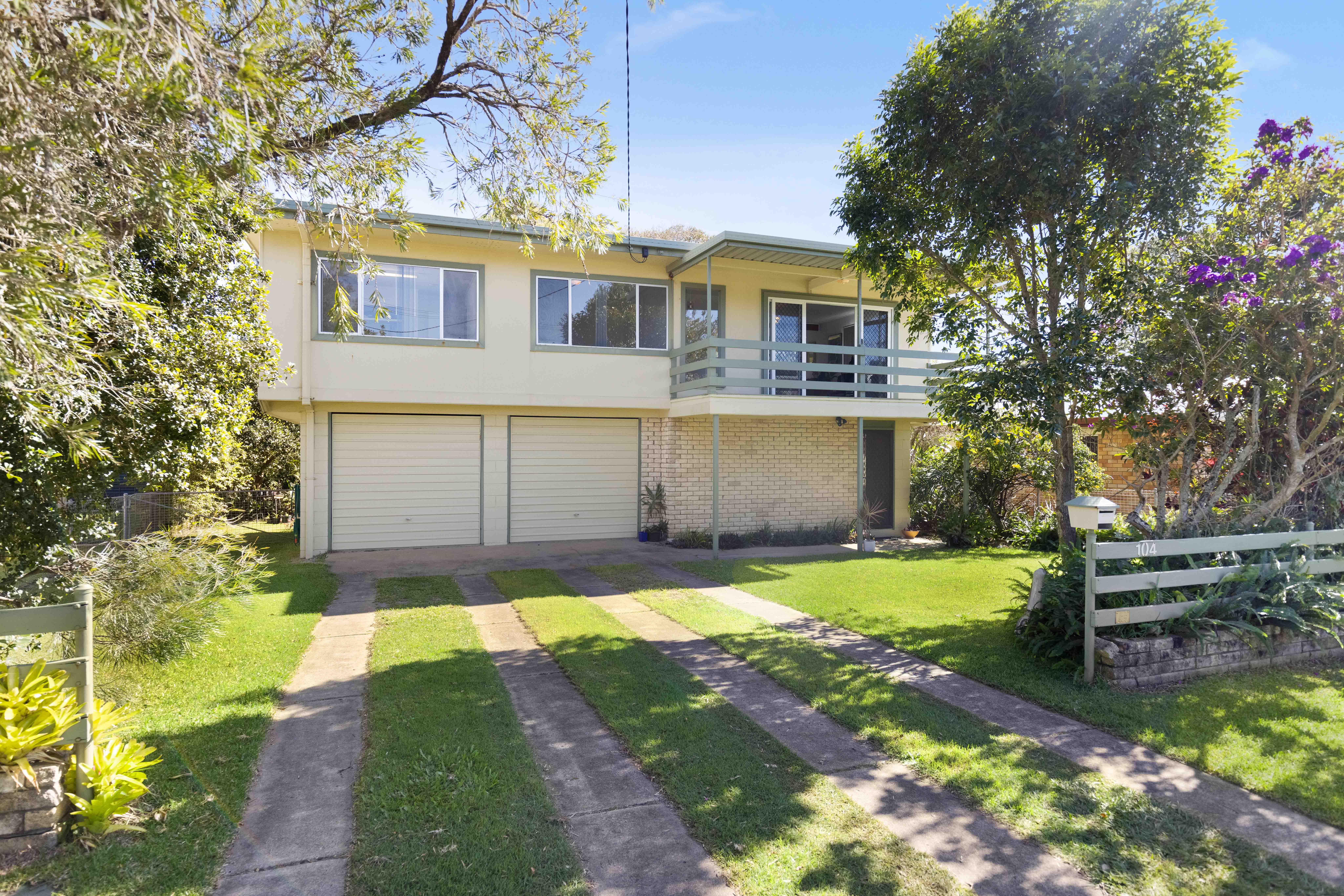 Across two levels the home comprises three bedrooms, one-bathroom, separate toilet, two separate living areas, generous sized kitchen, east facing covered front balcony, huge rear covered timber deck with creating additional alfresco space under, laundry, and double lock up garage plus onsite parking, and gated side access to bring in a boat/caravan/trailer, on a fenced 678m2 block.