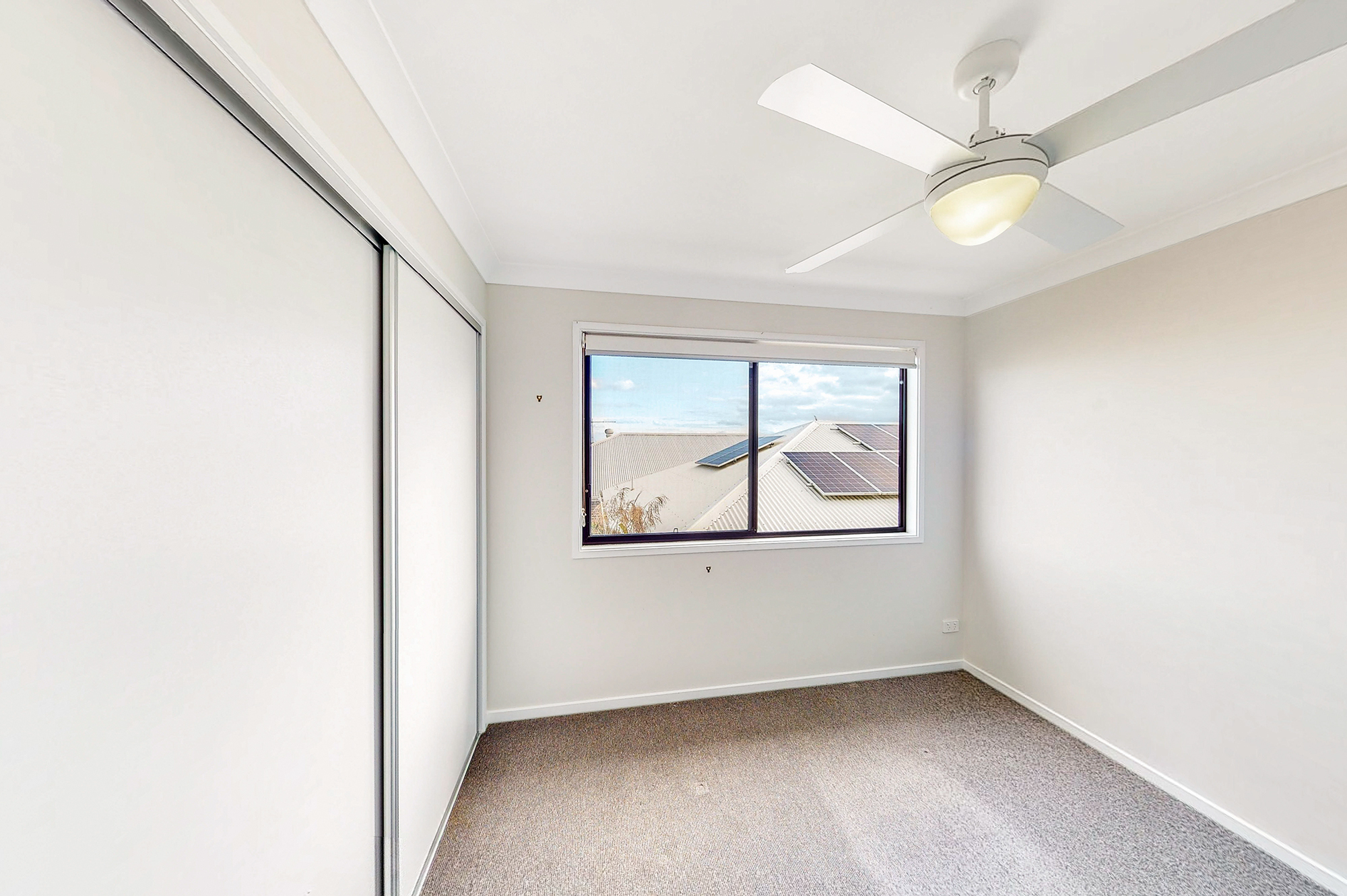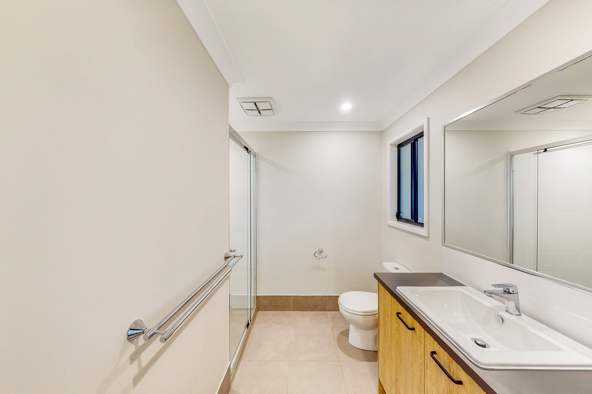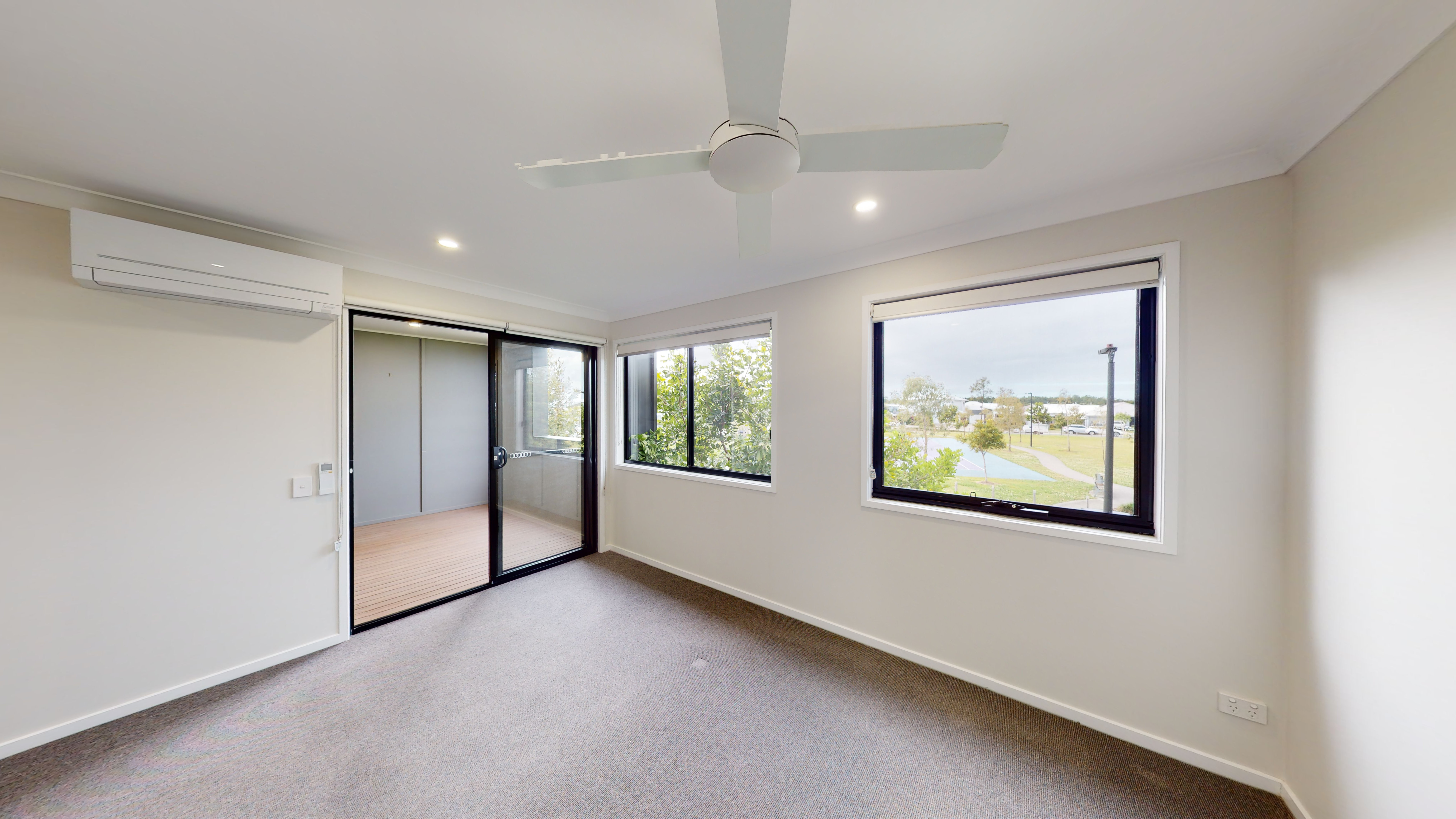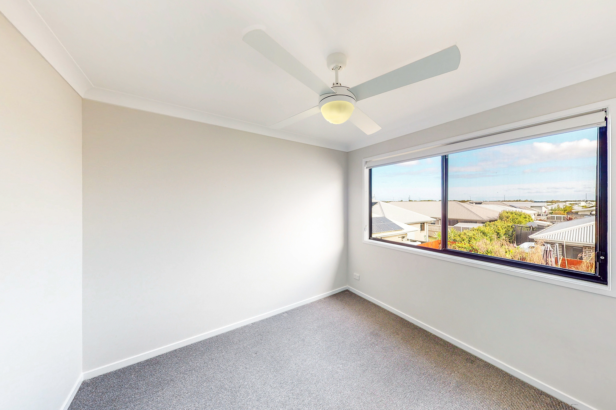 -The airconditioned master bedroom features a huge walk-in robe, large ensuite with double vanity sinks, large shower & WC, while the other 2 big bedrooms have built in robes, ceiling fans and roller blinds.