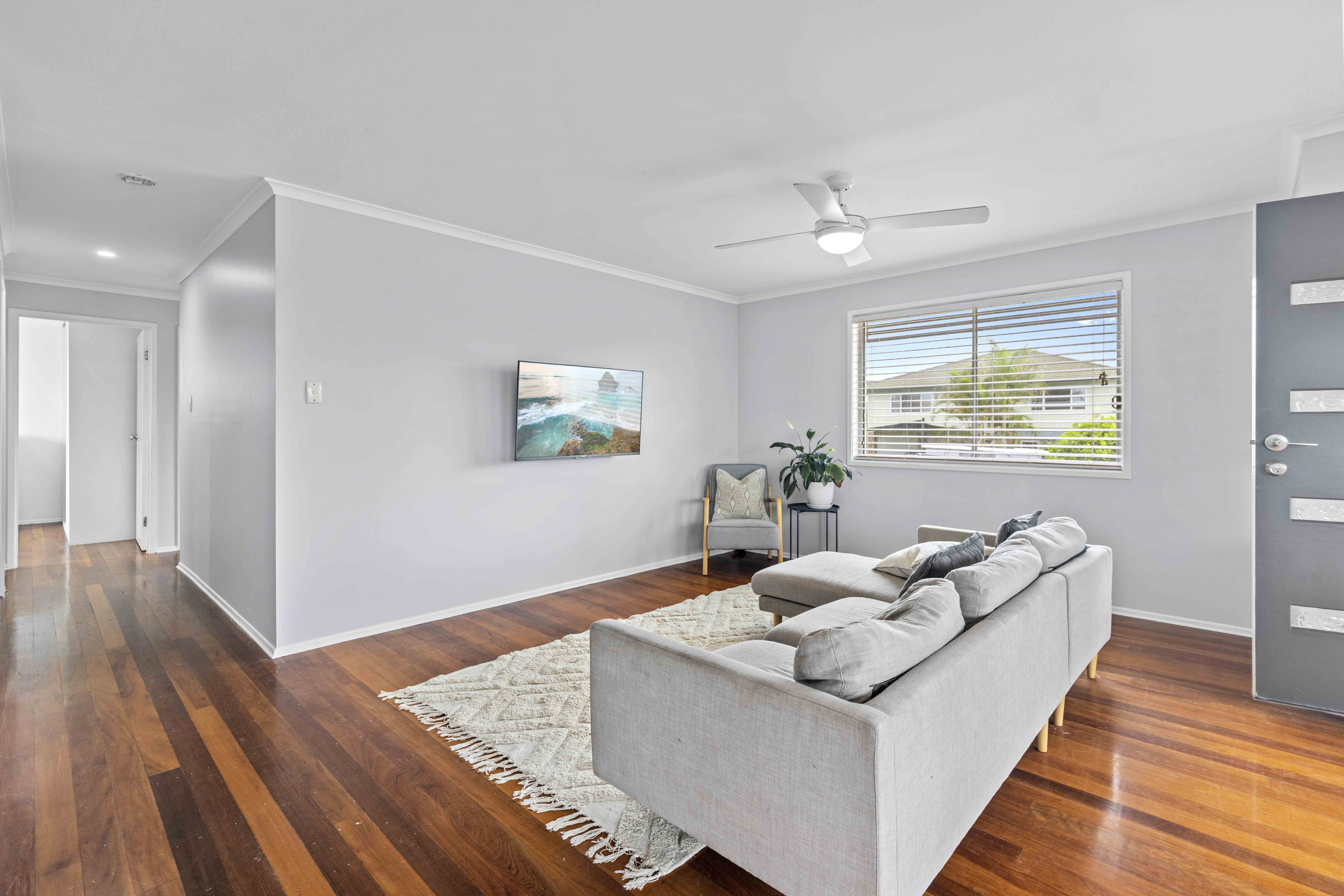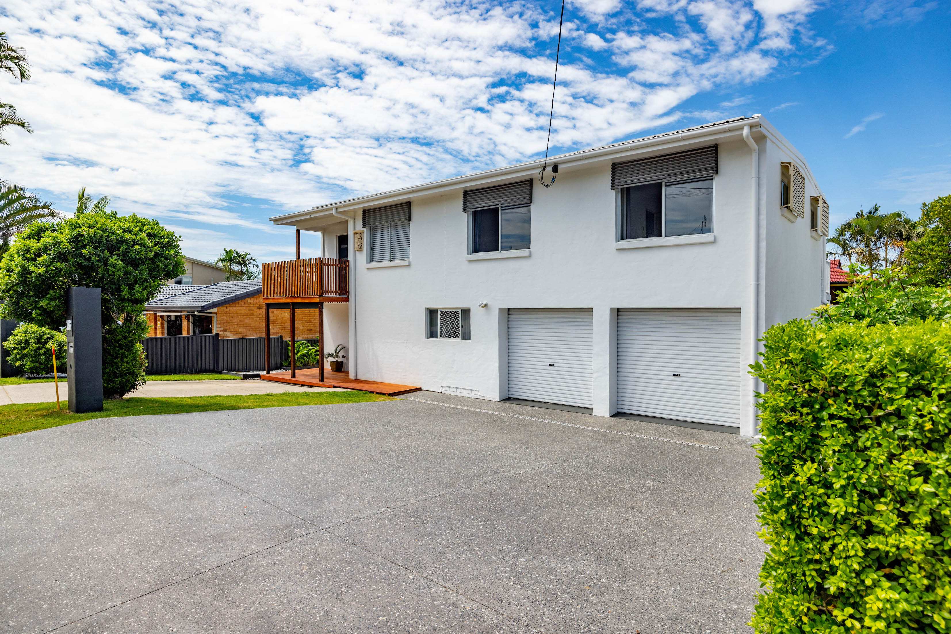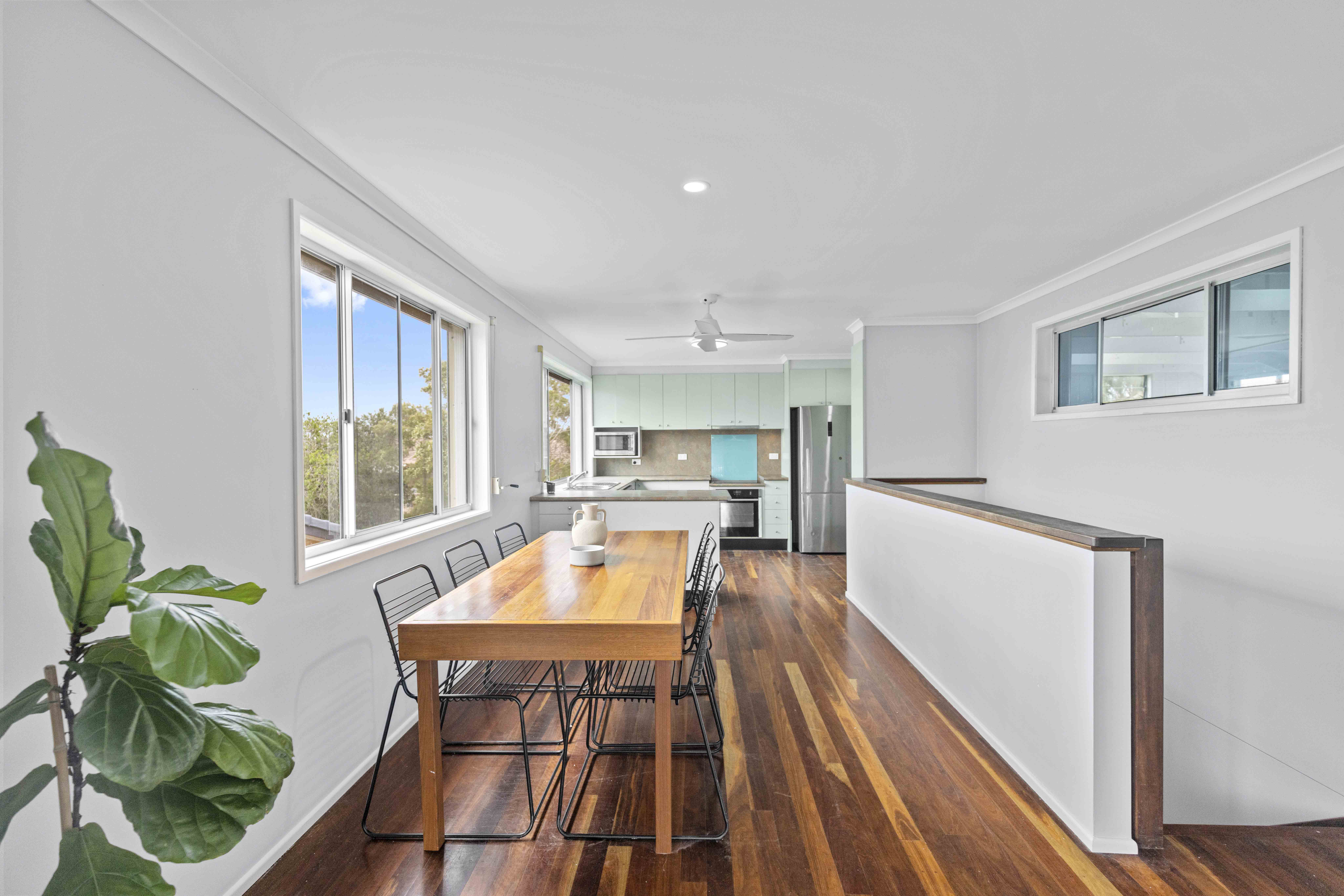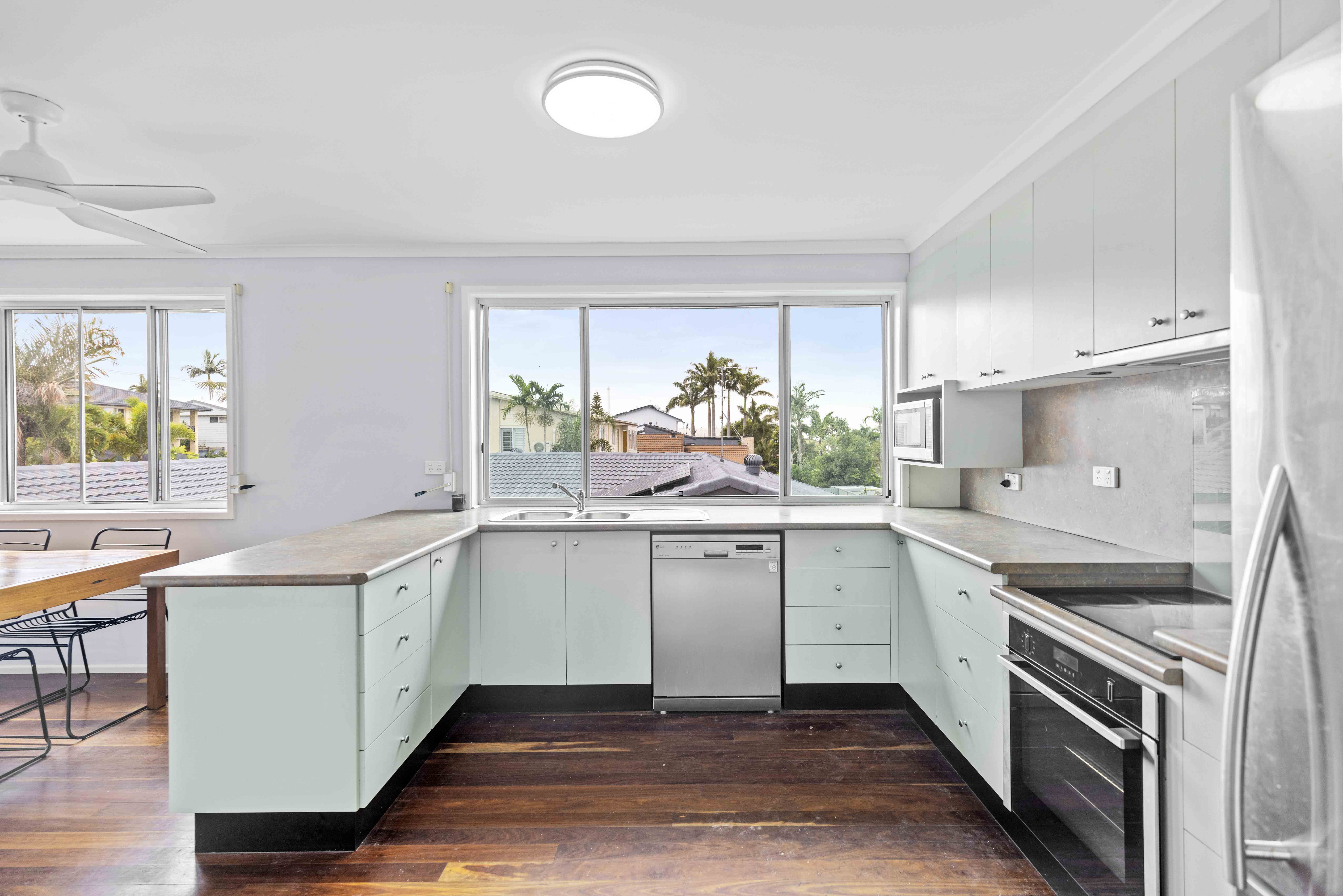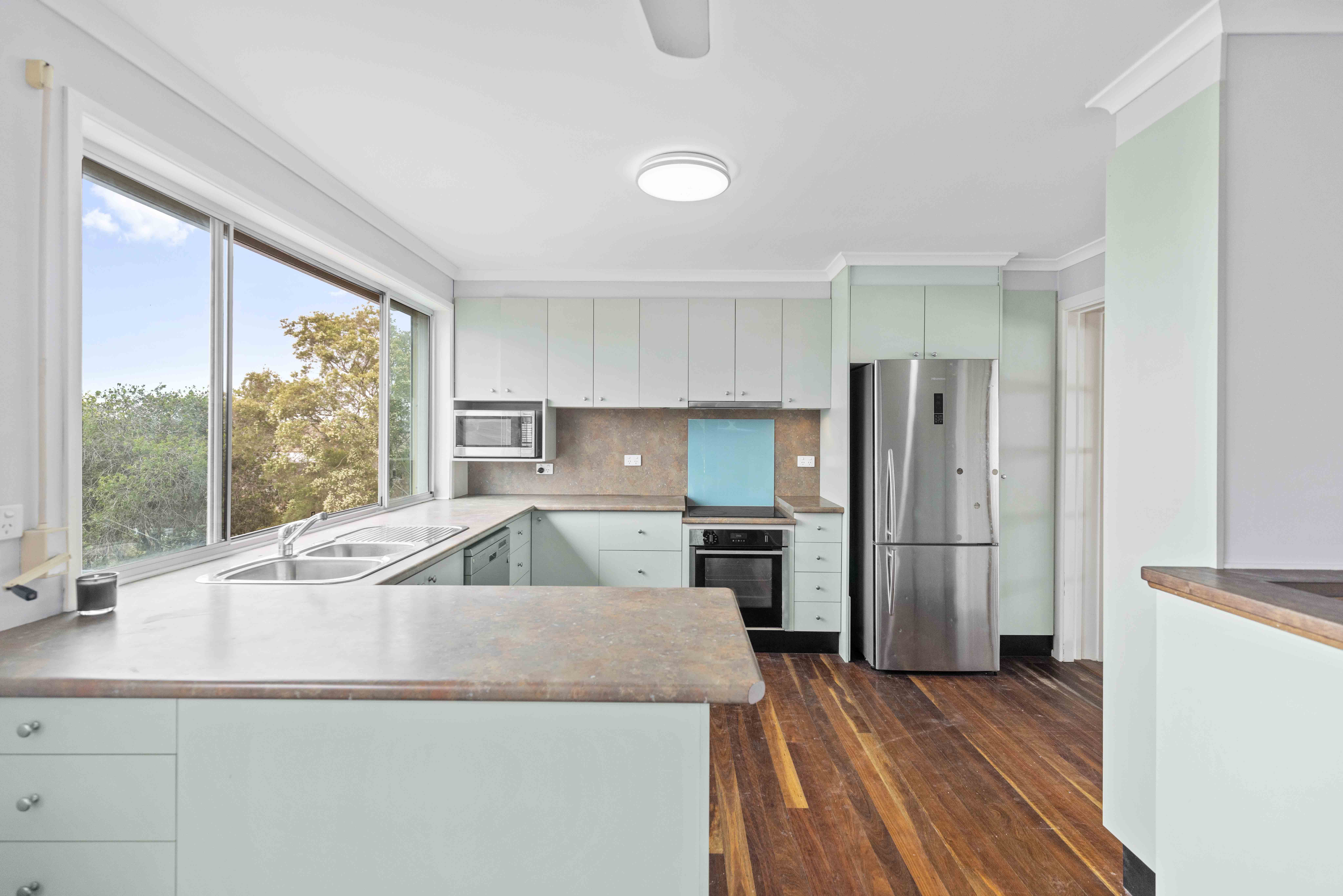 Across two light-filled levels the home comprises three bedrooms, two brand new modern bathrooms, two kitchens, separate multipurpose space, covered alfresco entertaining on both levels plus north facing upper balcony, on a 559m2 elevated flat block with onsite parking for four vehicles.