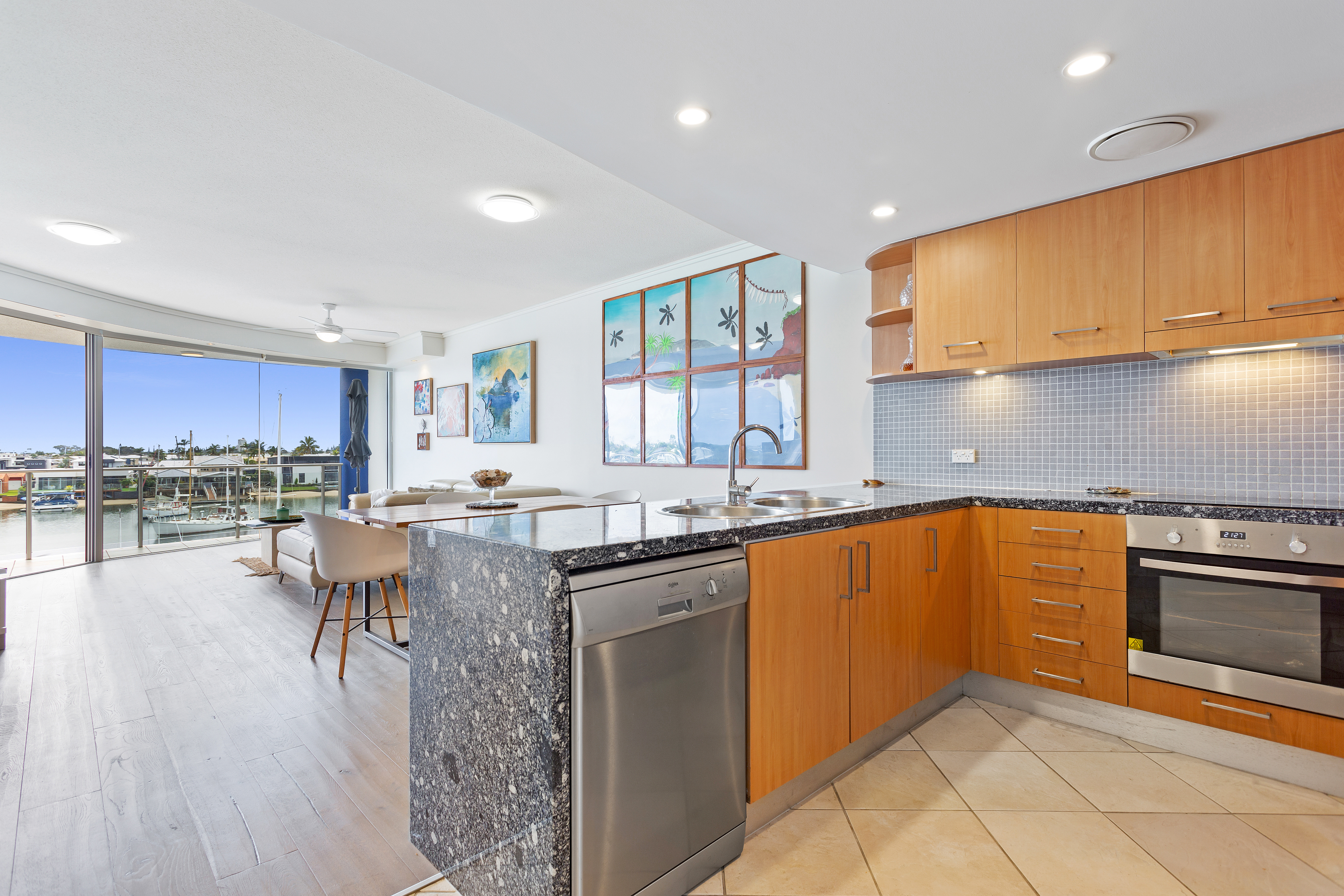 Don't be fooled by 'Nicklin way frontage' this executive apartment is a quiet & tranquil abode!