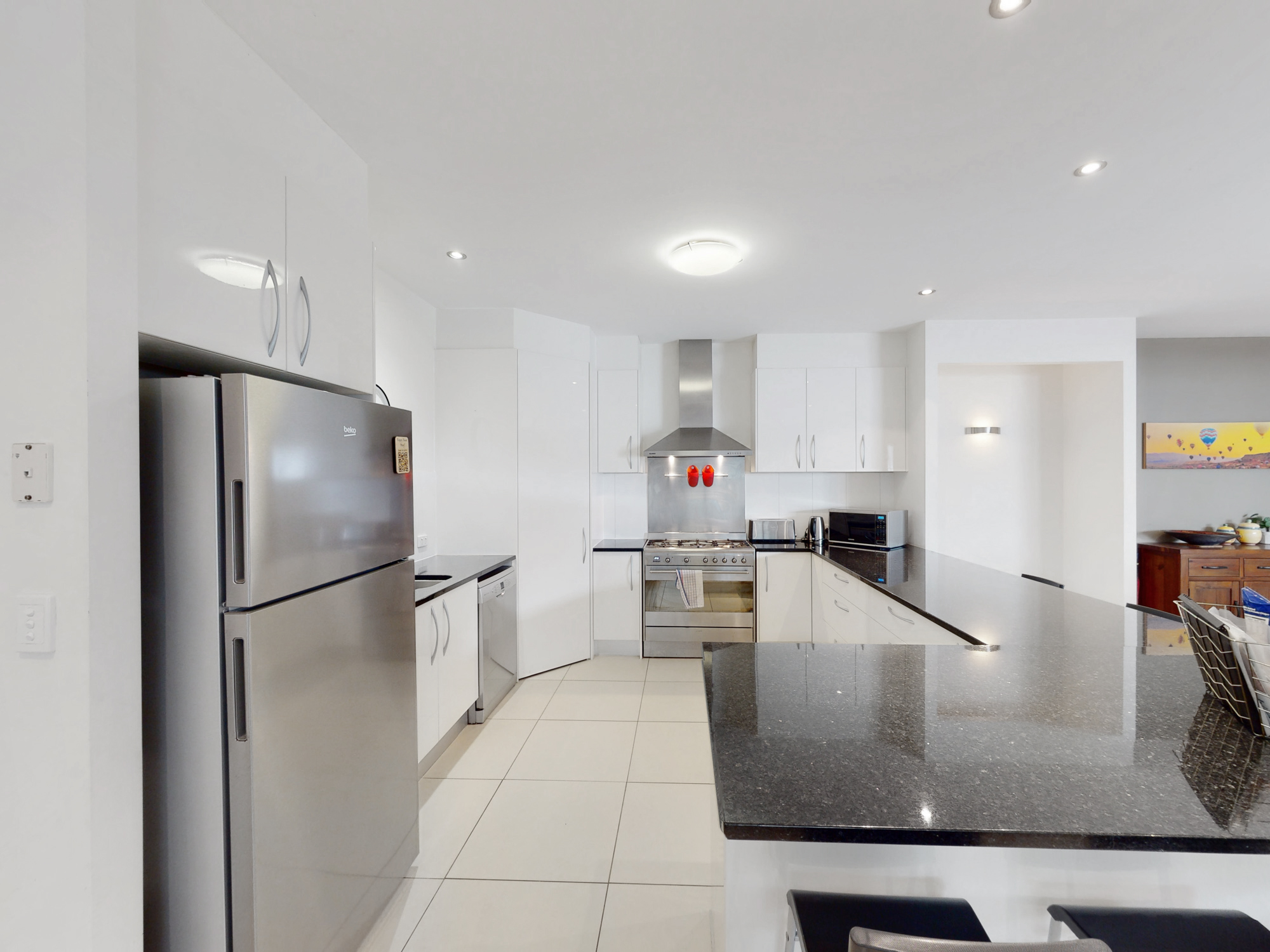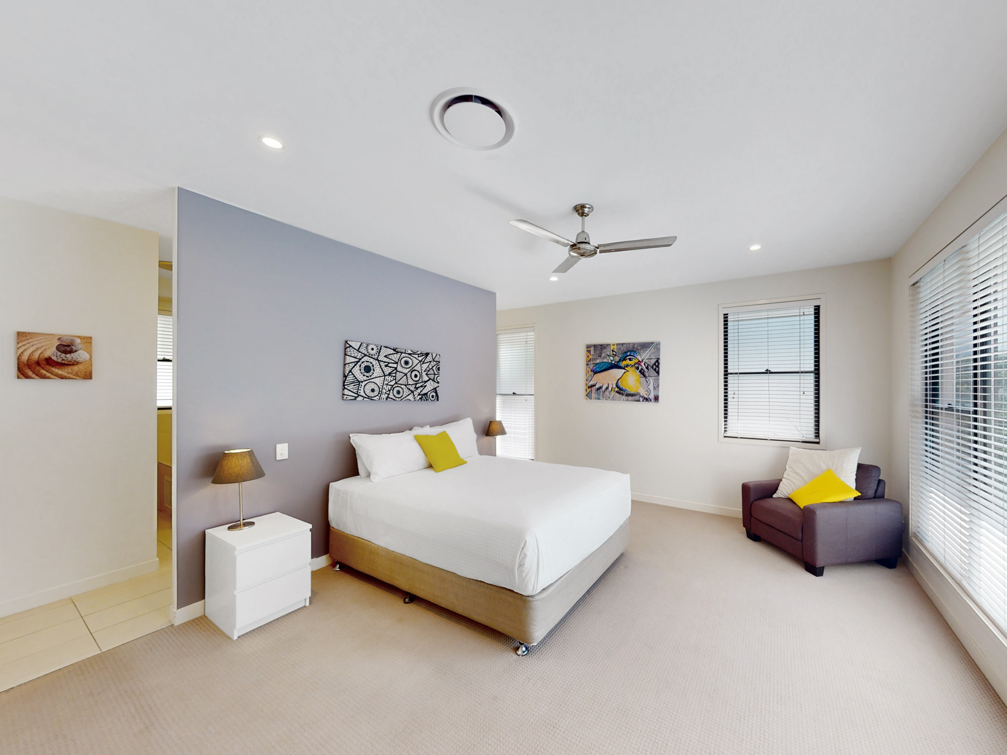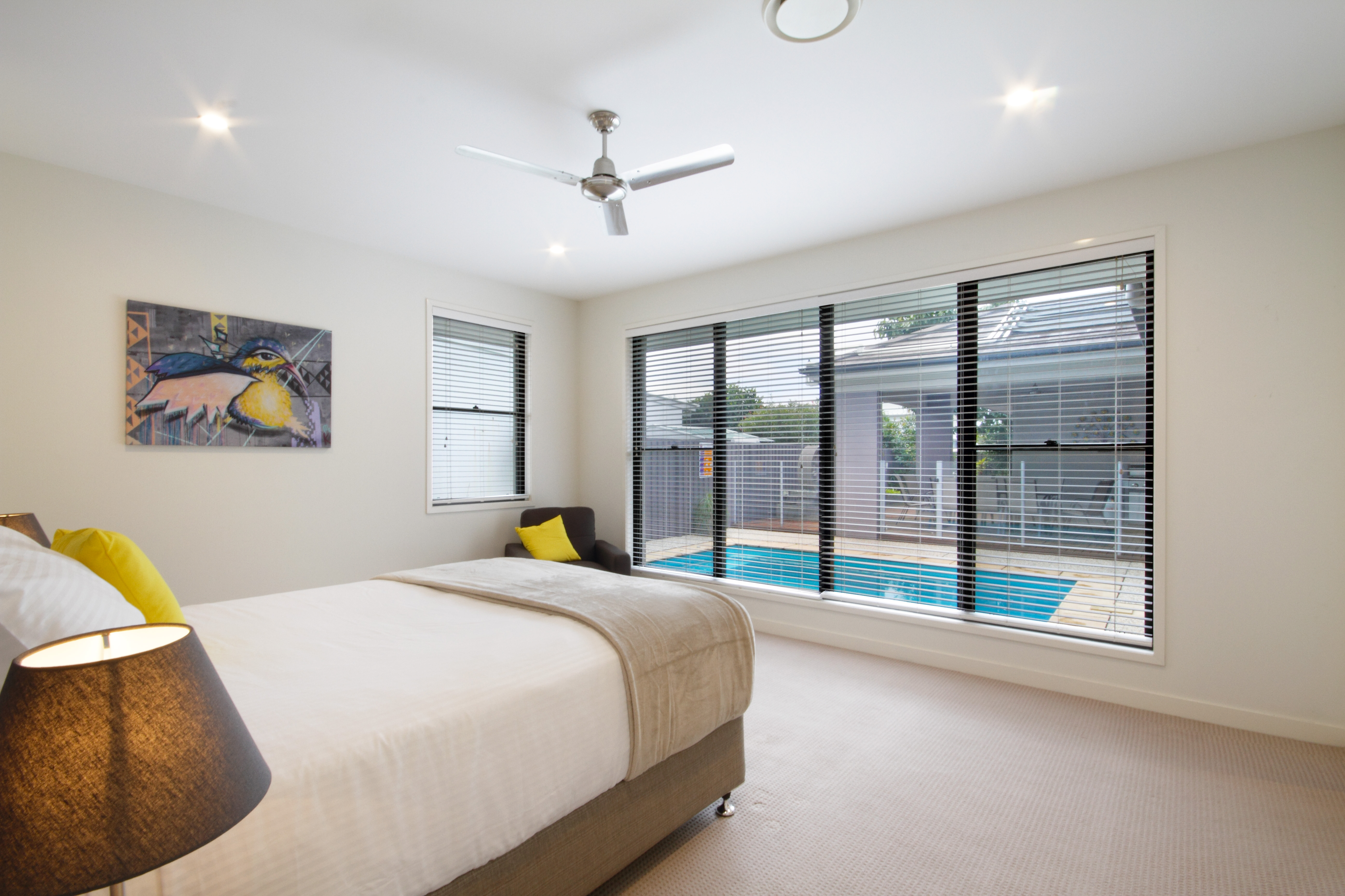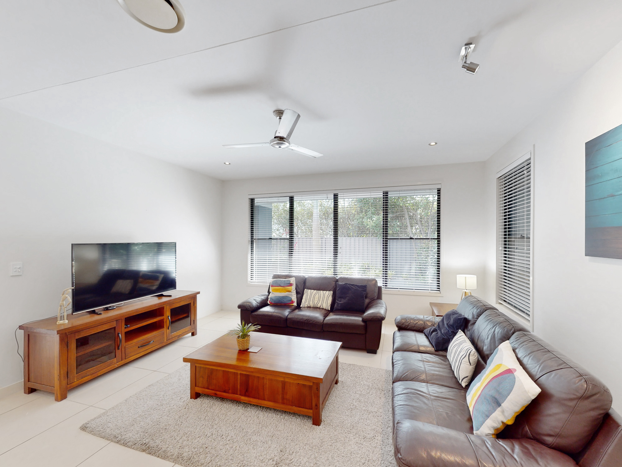 This modern and contemporary home features 5 spacious bedrooms, making it perfect for families or groups of friends. All five bedrooms (Including the master) have ceiling fans, blinds, generous storage and air-con. The master bedroom also boasts a modern ensuite and walk in robe.