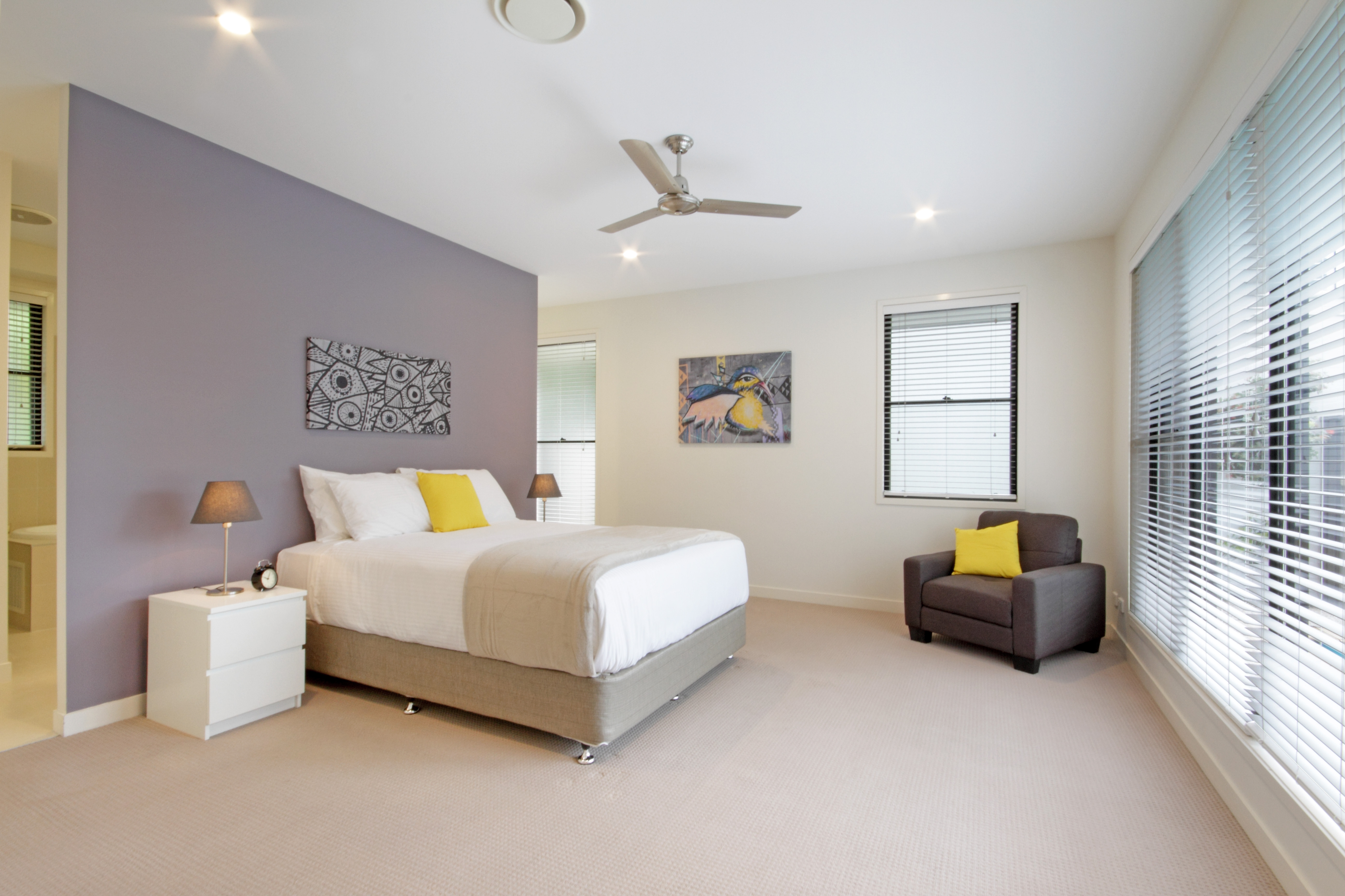 Master bedroom is located at the front of the property next to the guest bedroom and has a walk-in robe and ensuite