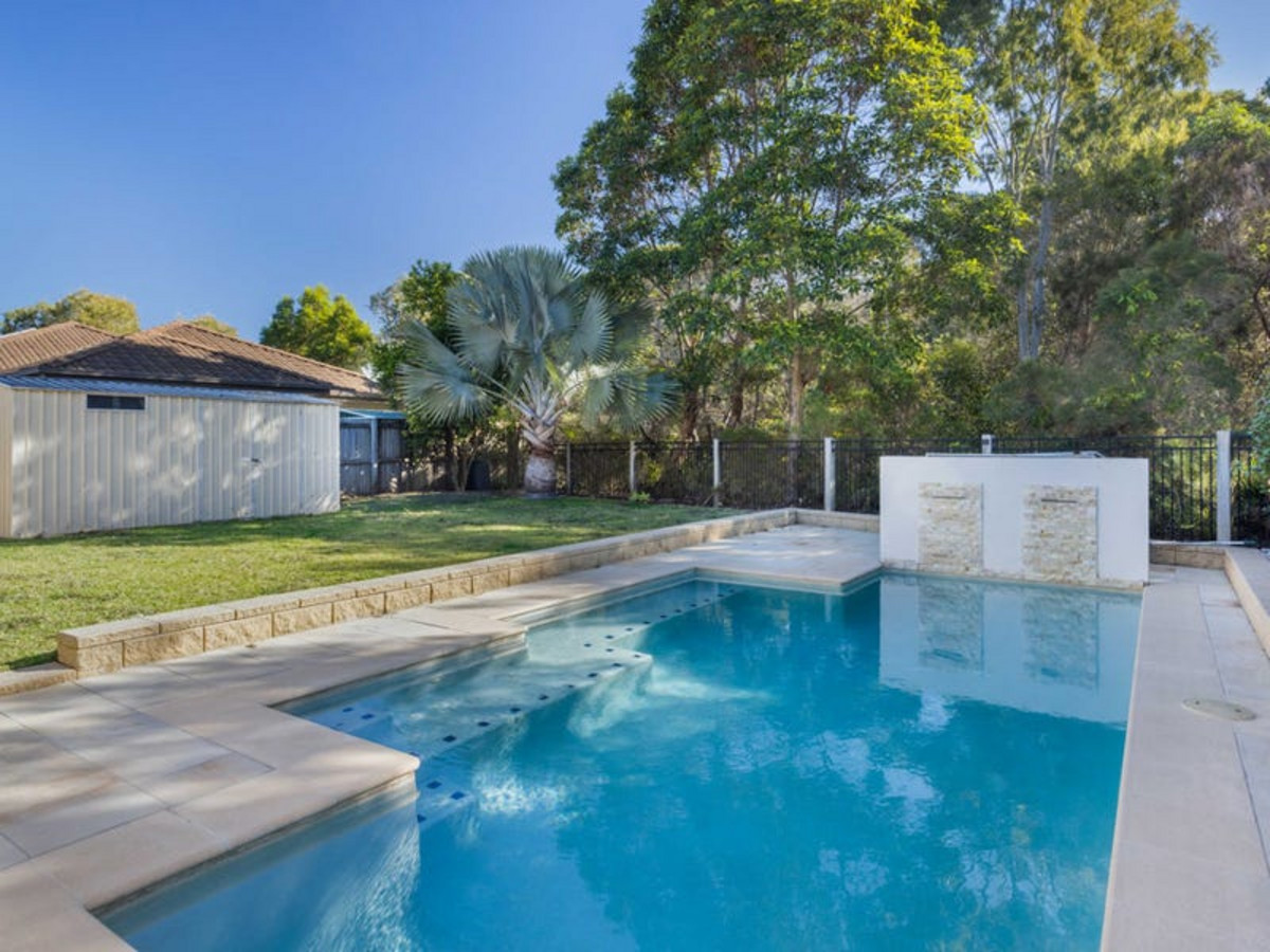 Ducted air-conditioning, ceiling fans, easy-care tiled flooring in living areas, carpets in media and bedrooms, stone benches in kitchen, stainless steel appliances, gas cooktop, separate shower and bath in family bathroom, security screens, solar power, rainwater tank, lock-up garden shed, and dual waterfalls on the pool - are some of the home's appealing features.