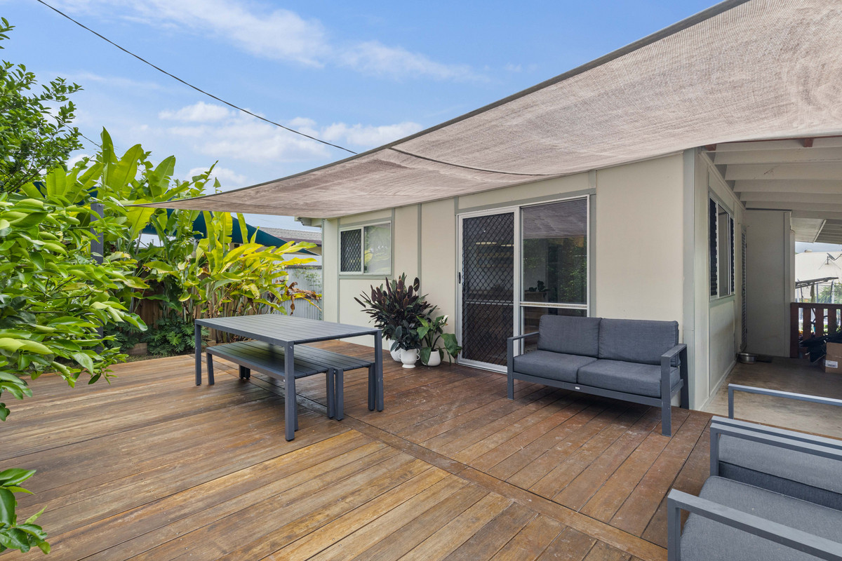 On a north-east facing fully fenced 546m2 block; across a single level, the home comprises three bedrooms, refreshed bathroom, separate toilet, open plan timber kitchen and living/dining, timber deck with shade cloth, separate laundry with external access, and drive-through double carport (tandem parking).