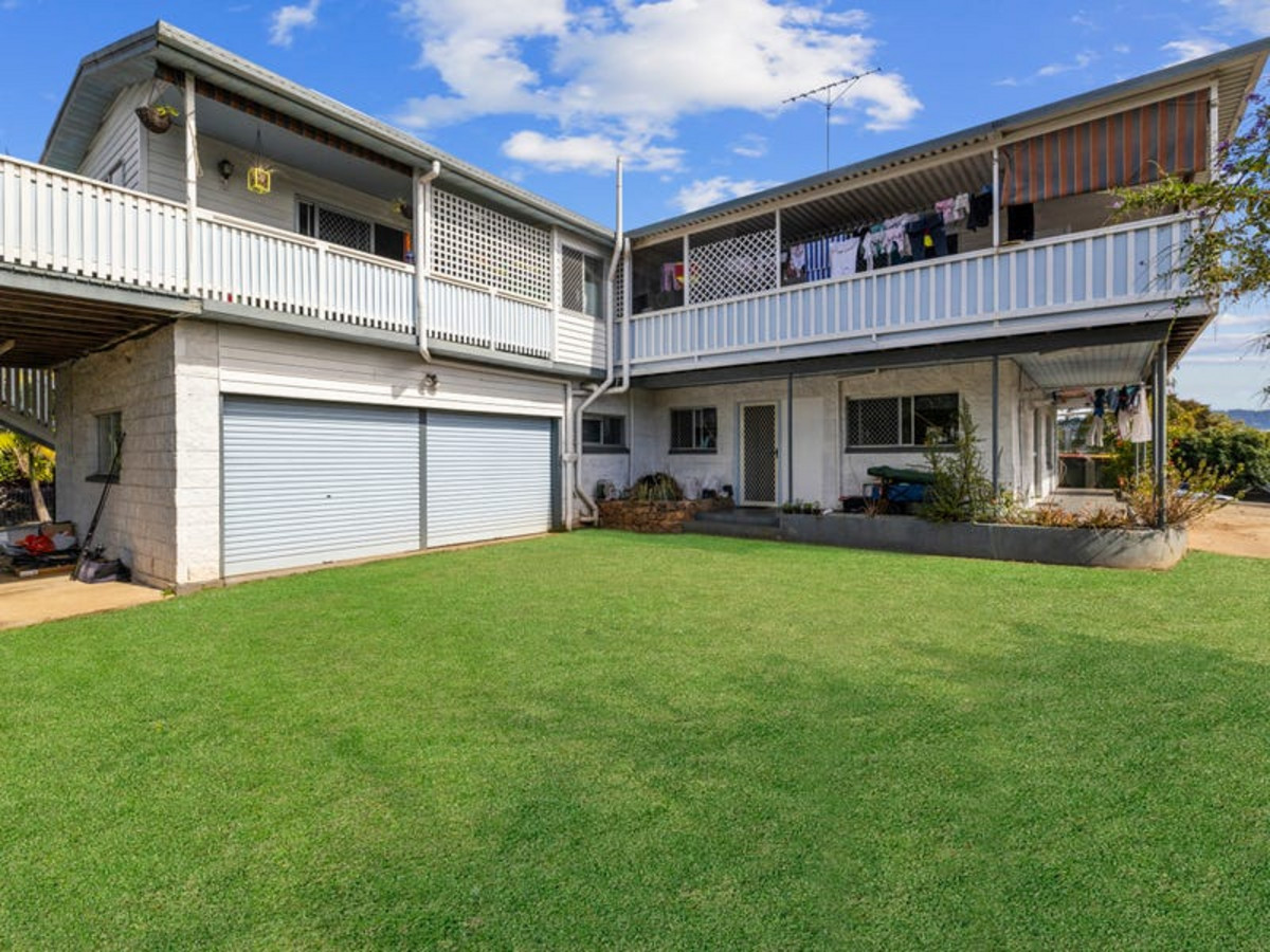 A high-set, post-war design - the building in total comprises six bedrooms, four bathrooms, two kitchens and a kitchenette, three living areas, office, three laundries, wraparound north-east facing verandah with elevated area views to Mount Coolum, and double lock up garage plus storage under, along with abundant onsite parking.