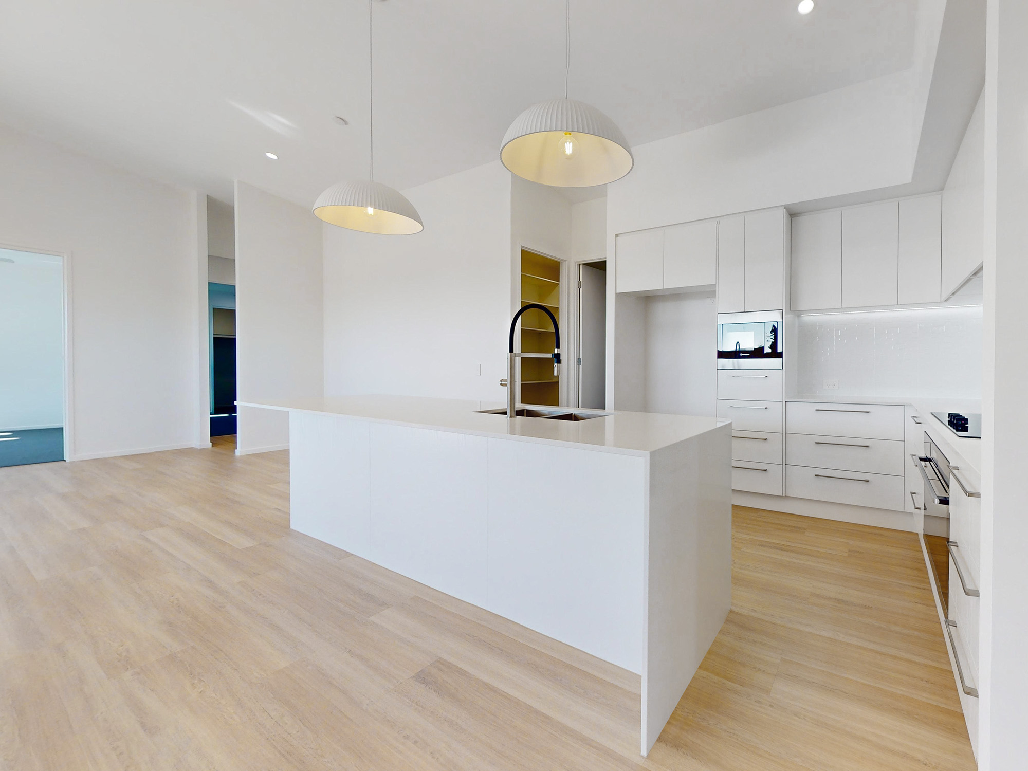 Upon entry, you're greeted by a spacious living area perfect for relaxing evenings or entertaining guests. Adjacent is a well-appointed media room, providing ample space for movie nights or quiet retreats. The heart of the home lies in the open-plan kitchen and dining area, featuring sleek appliances, ample storage, and a breakfast bar ideal for casual dining.