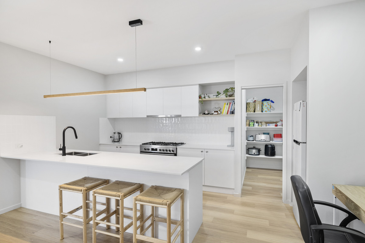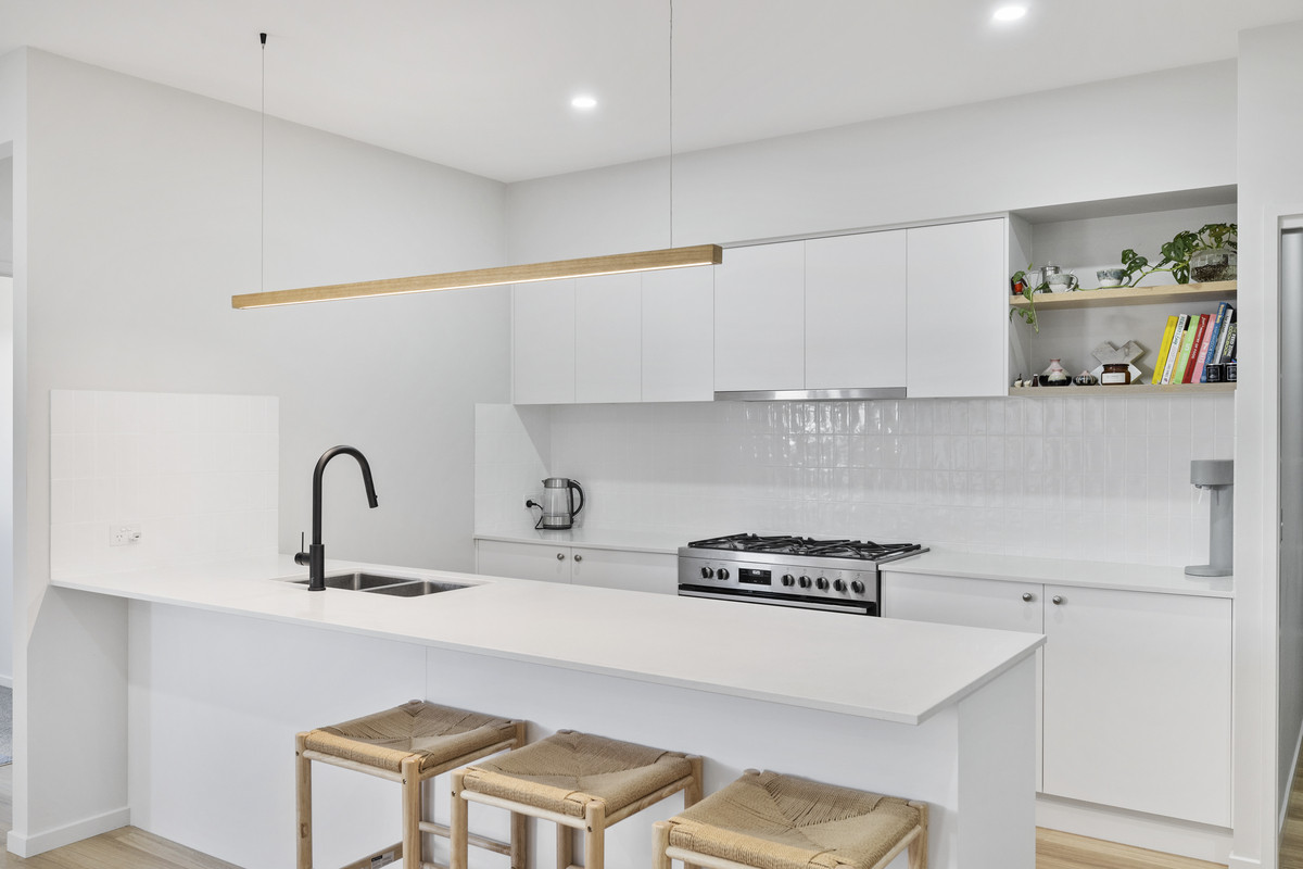 High ceilings, split system air-conditioning in living, ceiling fans throughout, hybrid timber look flooring and plush carpets, stone benches, gas cooktop, soft close cabinetry, separate shower and bathtub in family bathroom, gas hot water, eufy security system and 5,000-litre slimline water tank – are all existing features of note.