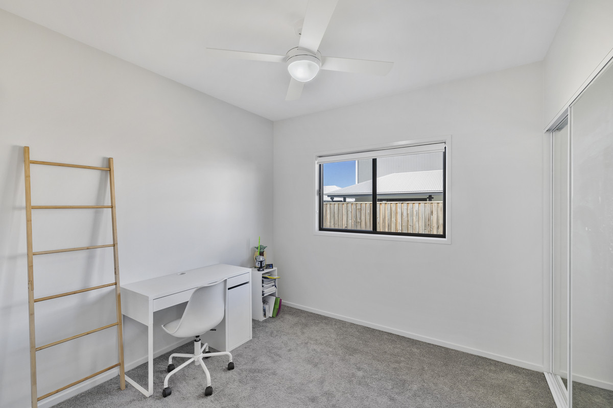 Across a light-filled single level, the home comprises formal entry, three bedrooms, two bathrooms, built-in study nook, quality kitchen with large walk-in pantry, open plan living flowing out to covered patio, generous sized laundry, and double lock up garage on a 350m2 block with fenced, turfed backyard and gated side access for a box trailer or small boat.