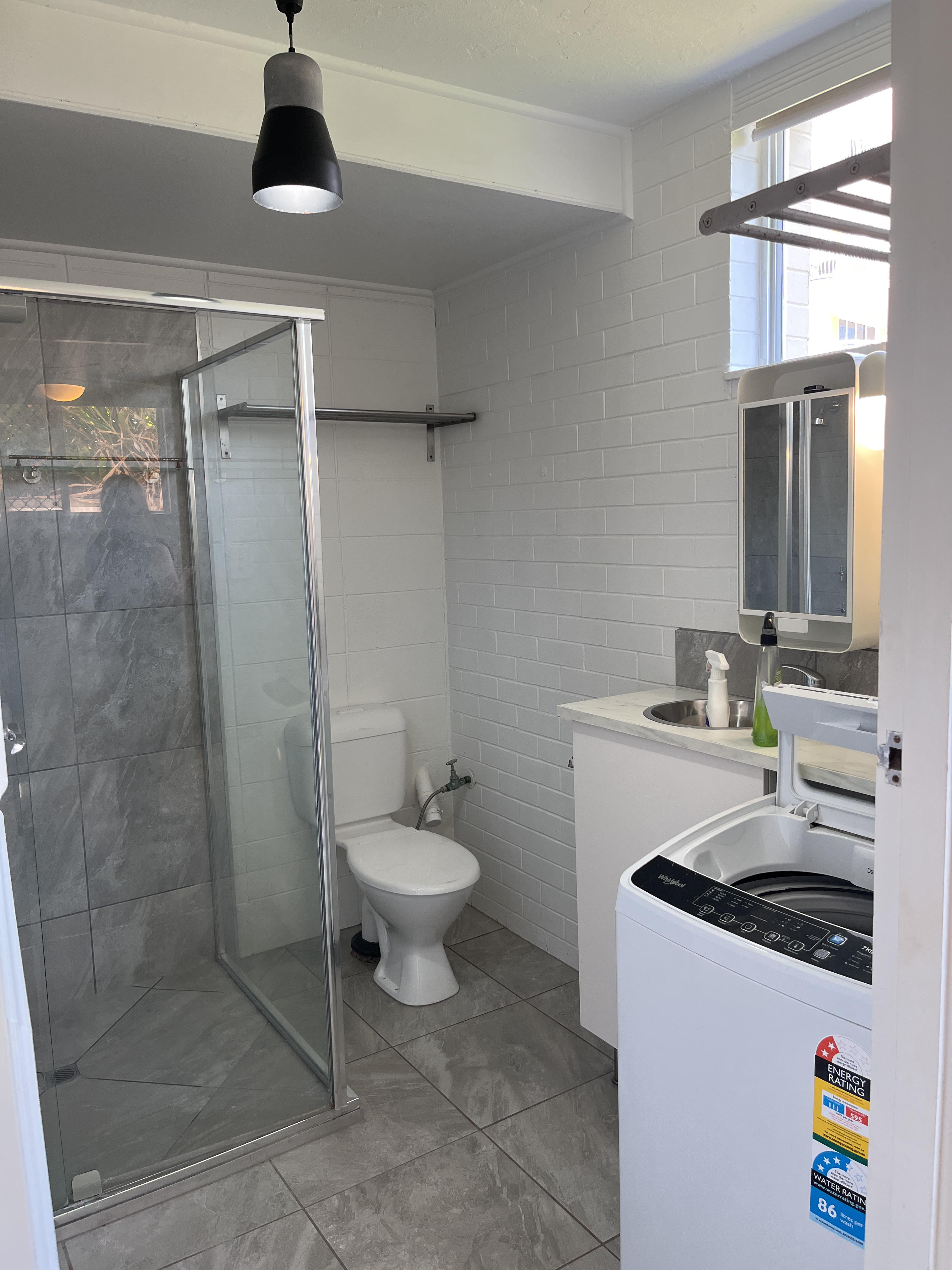 Combined Laundry/Bathroom: A practical and efficient use of space.