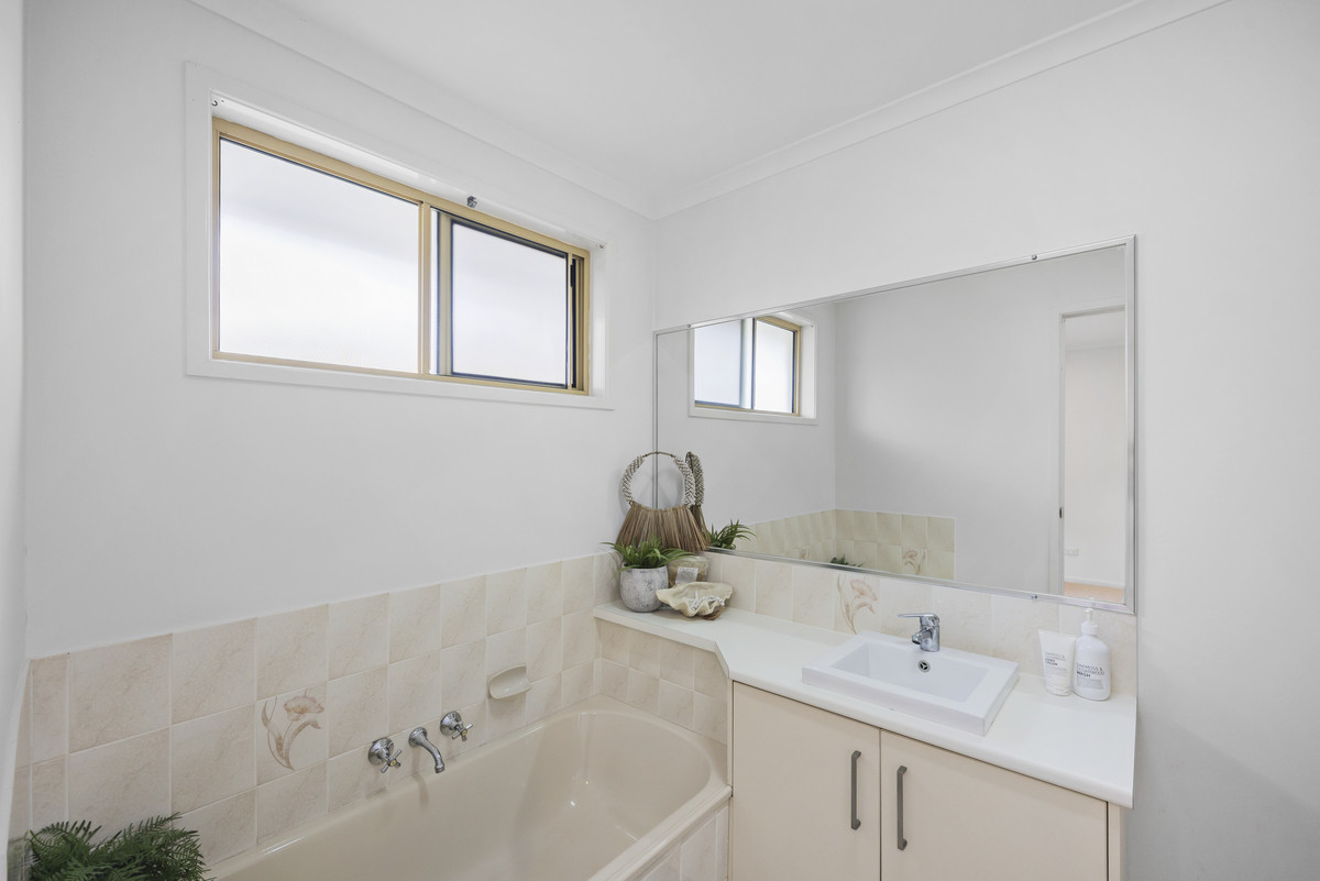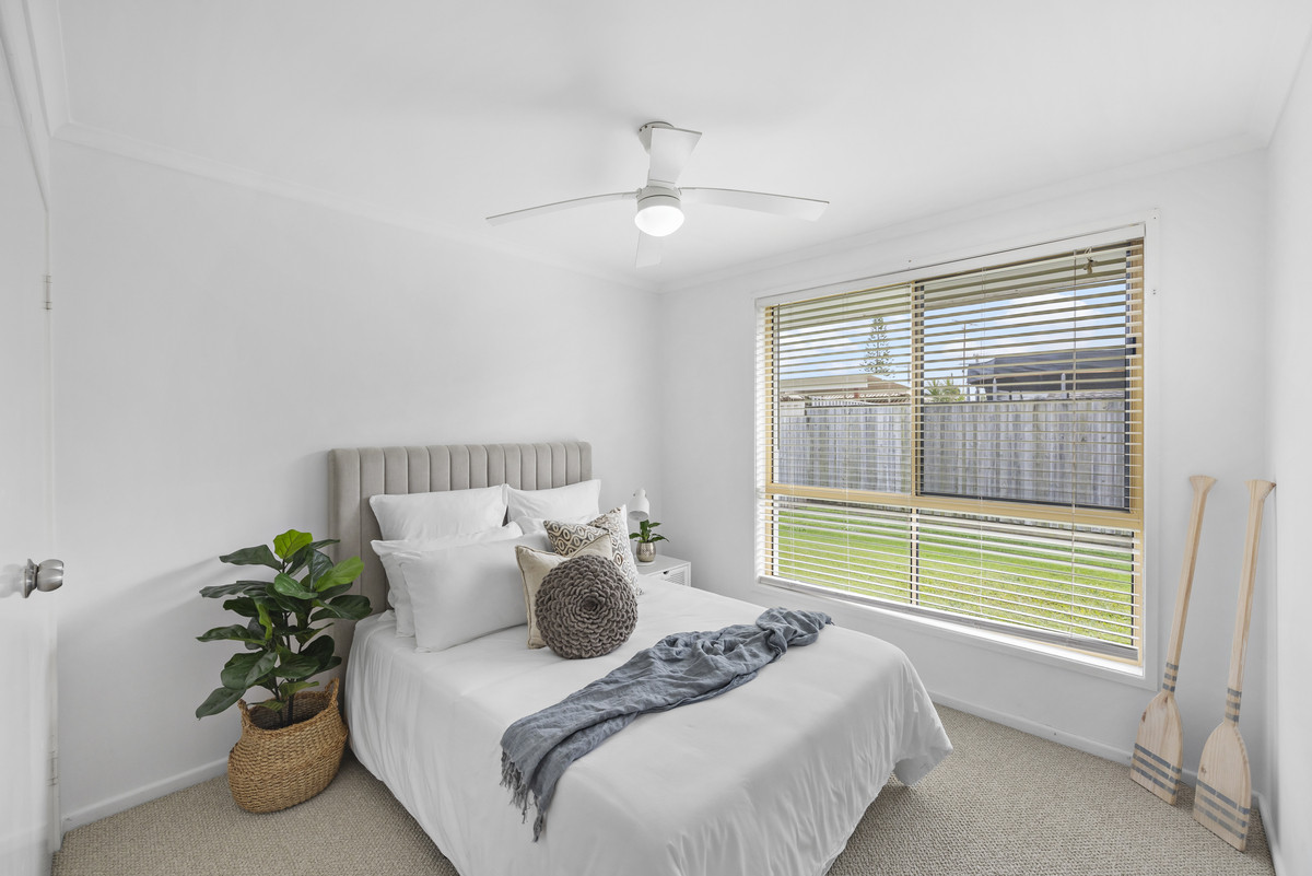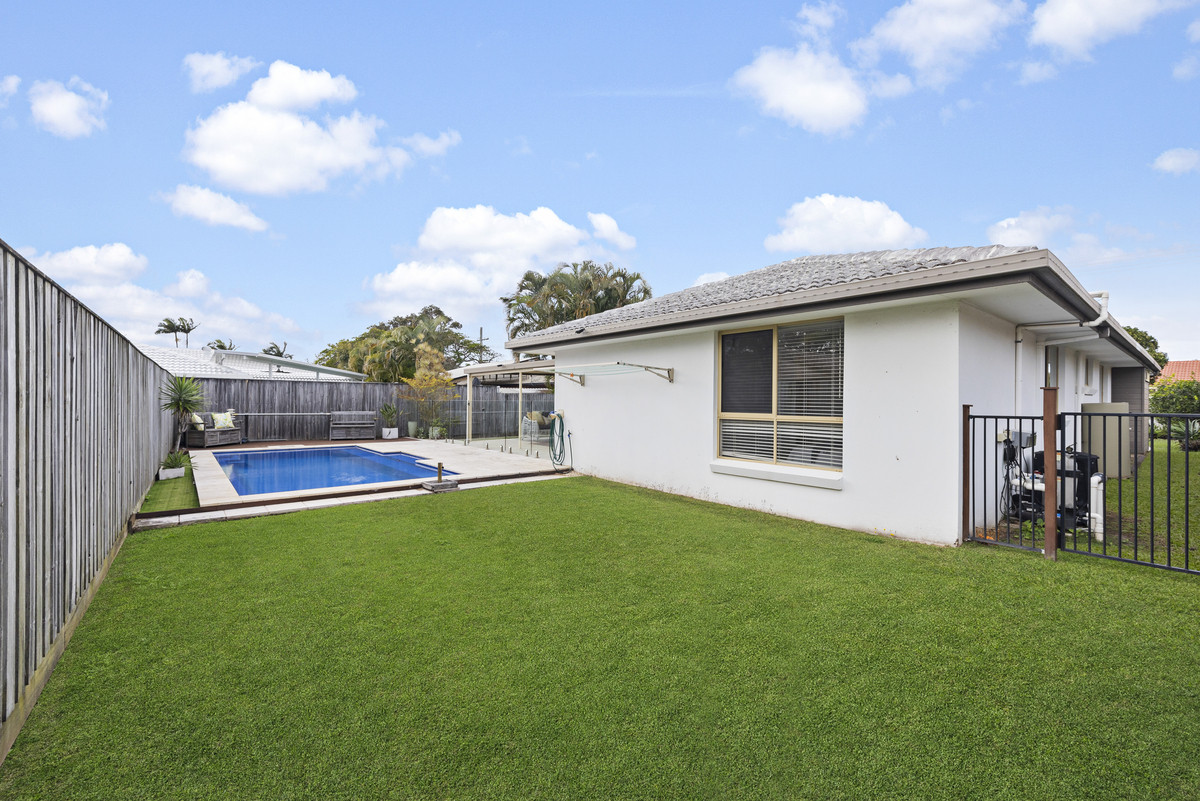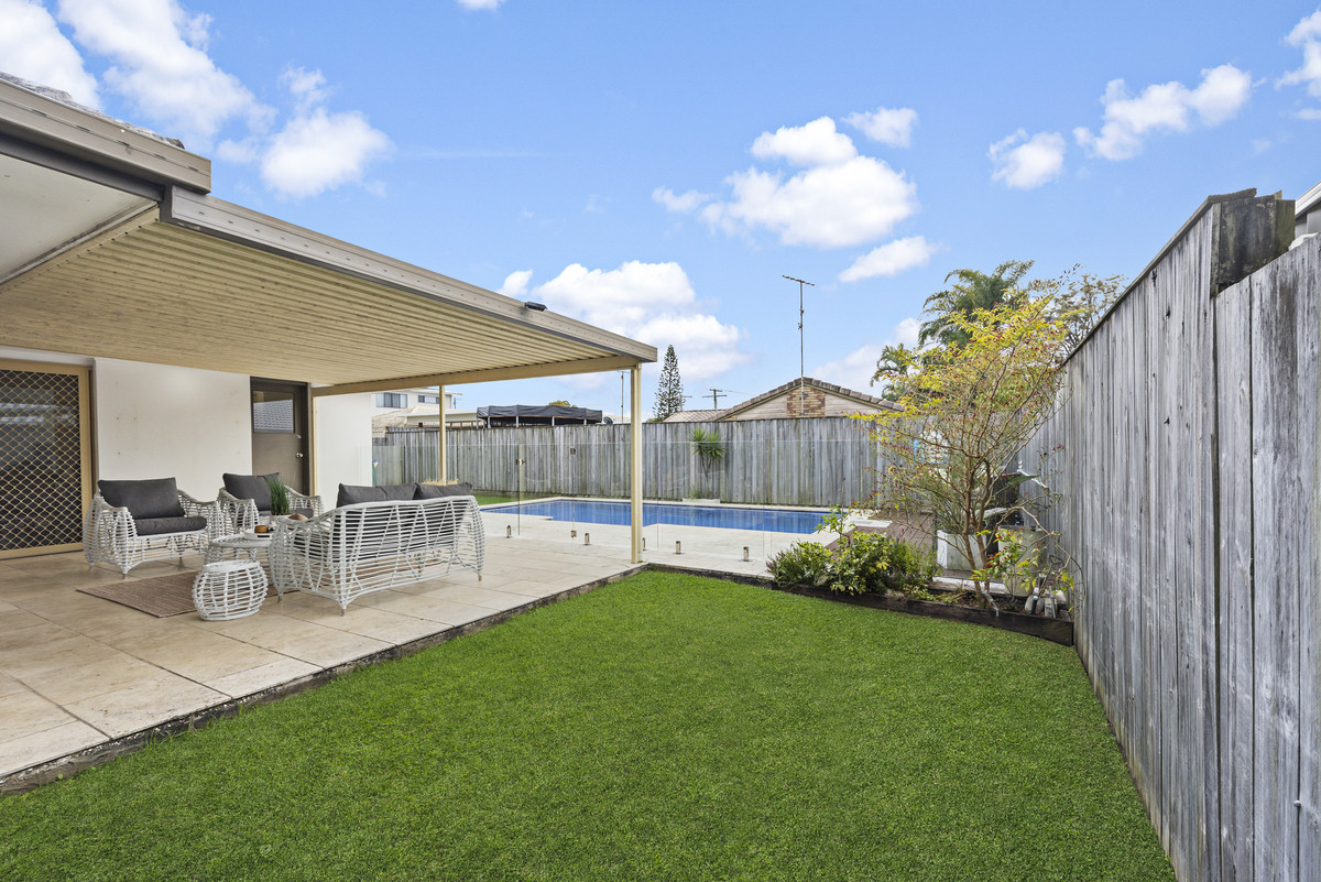 The 555m2 block is fully fenced and the garden is low maintenance, with just a regular mow when needed to keep it looking neat and tidy; there's plenty of grassy space for children and pets to play – when they are not in the pool, at the park, or at the beach (and there is a dog-friendly stretch of beach just a short walk away).