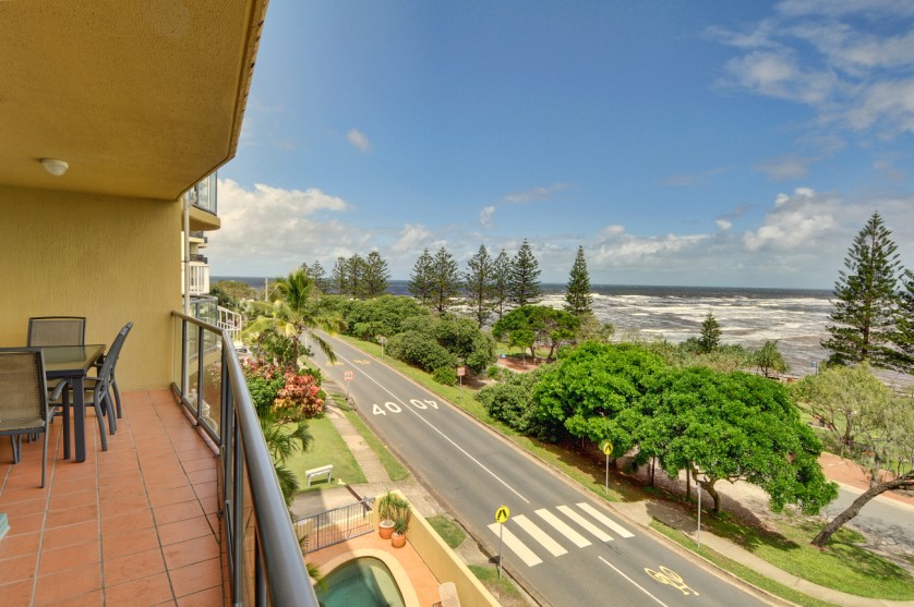 From its two tiled balconies, this exceptional apartment offers magical views from Happy Valley beach across Moreton Island down the Pumicestone Passage.