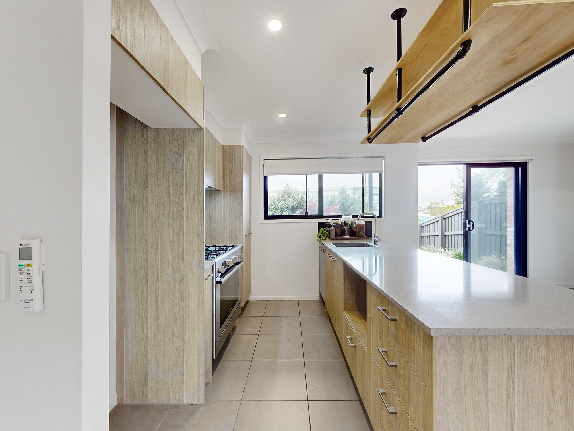 The rear of the property provides one-car accommodation. Upstairs, the main bedroom features an ensuite bathroom and a walk-in robe. The open-plan kitchen, dining, and living area seamlessly connects to the patio, extending your living space.